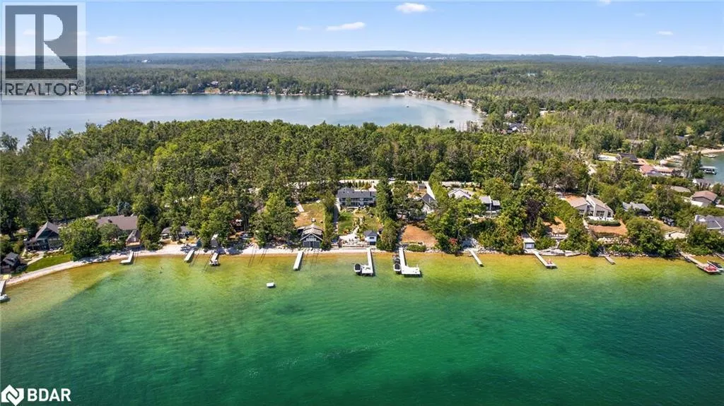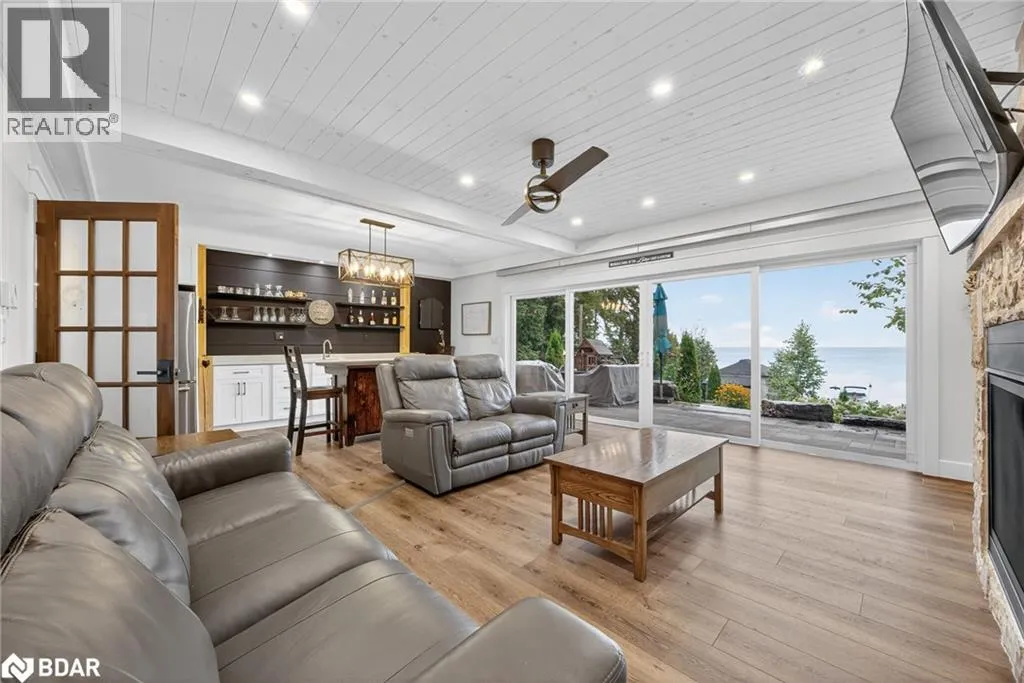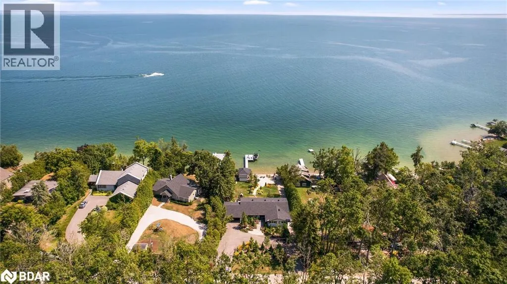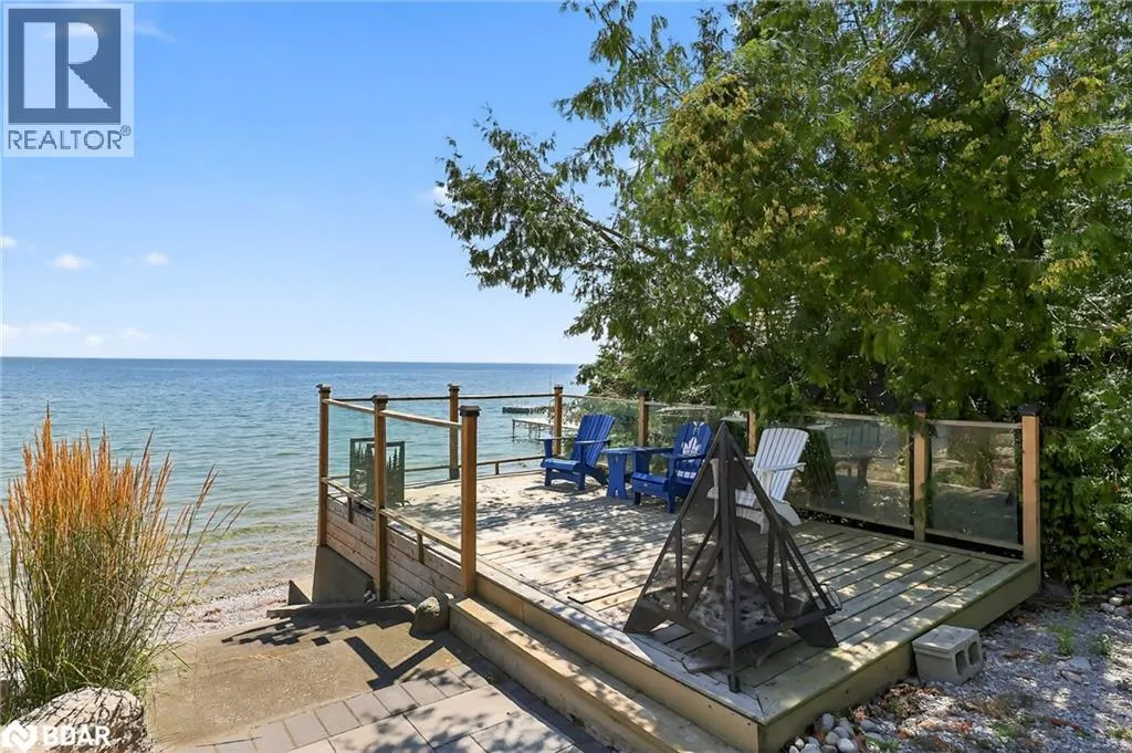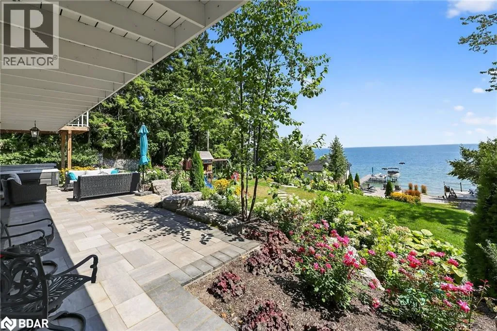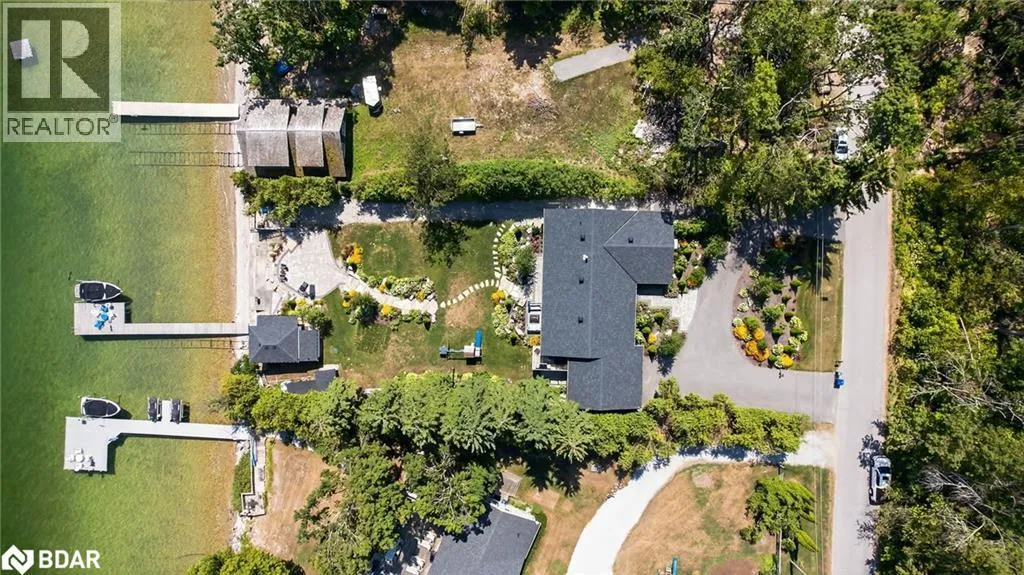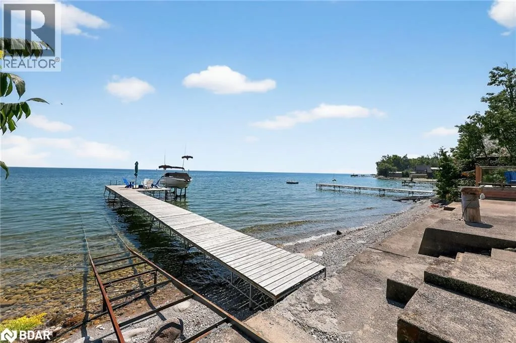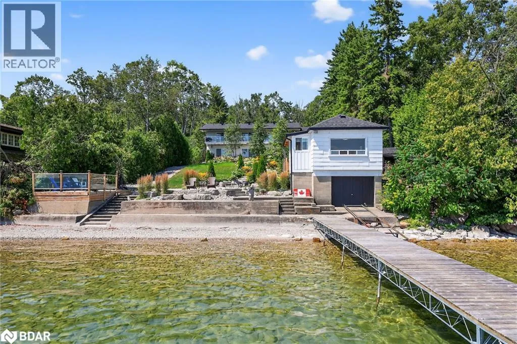 Hwy 11 to 14th Line South, left on Lakeshore to Eight Mile Point Road On a quiet, tree-lined crescent, this turnkey brick bungalow offers an exceptional lifestyle on one of Lake Simcoeâs most sought-after stretches of shoreline. 5 bedrooms, 4 bathrooms & a beautifully renovated bunkie above the single-slip boathouse, lakeside living at its finest.Professionally landscaped front and back with lush perennials, a full irrigation system. Engineered hardwood throughout the main floor. Kitchen with quartz countertops, Thermador WiFi-enabled gas range, pot filler & premium finishes. Living room with gas fireplace & dining area with walkout to a sprawling 75-ft deck (gas BBQ hookup)overlooking the lake - perfect for entertaining. Main floor primary features a luxurious ensuite with heated floors, large walk-in shower, Bluetooth in-wall speaker, in-suite laundry hook-up & a private walkout with water views. Two additional main floor bedrooms share a 4-piece bath.Recreation room with fireplace & walkout to a private hot tub area overlooking the water. Wet bar with fridge and dishwasher. 2nd primary with fireplace, built-ins, water views, walkout access & an opulent ensuite featuring a soaker tub on a solid walnut base, heated floors, double vanity & glass shower. Additional 5th bedroom, 2-piece powder room, laundry room, 6-person sauna with separate shower & mudroom with built-in dog bath. Renovated bunkie above the 26' x 12' boathouse, complete with kitchen & 3-piece bath â ideal for guests who won't want to leaveâ. Marine railway to the boathouse. Waterside 10' x 19' deck, concrete stairs, break wall & 100â of clean, hard-bottom pebble shoreline with approximately 5 feet of depth off the dock with hard bottom sandâ perfect for swimming & water activities. Association dues include access to 62 acres of private parkland with nature trails for walking, cross-country skiing, etc & two waterfront tennis courts. Minutes to the Simcoe Rail Trail for biking, running, walking, or snowmobiling. Close to Orillia for amenities. 1 hour to the GTA. (id:27476)
