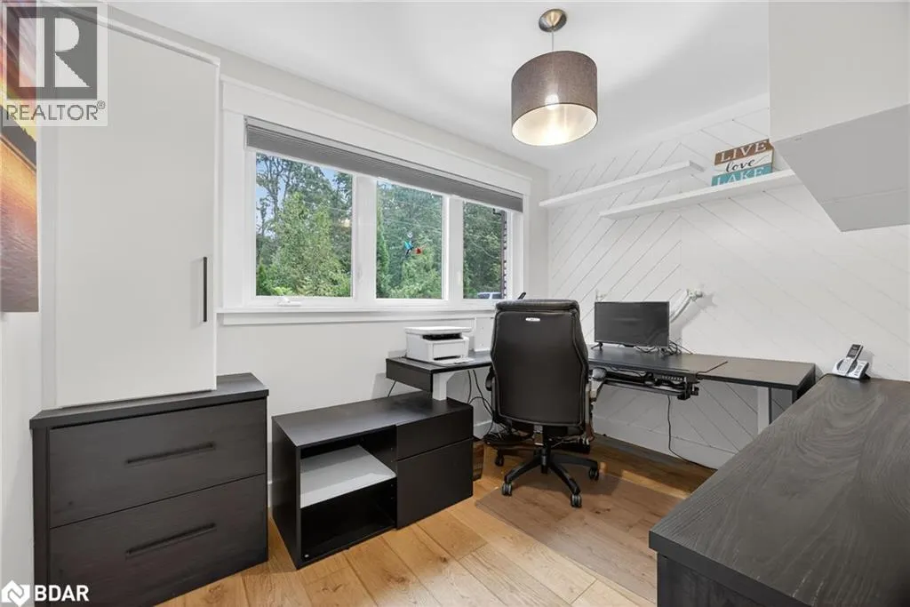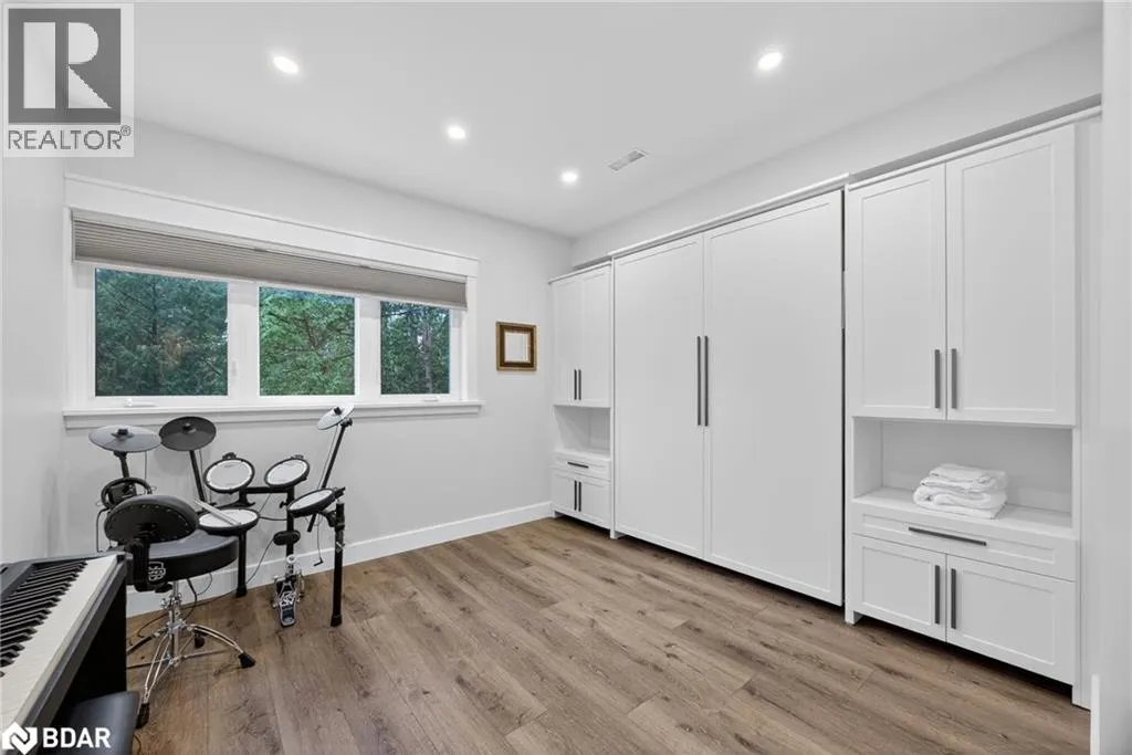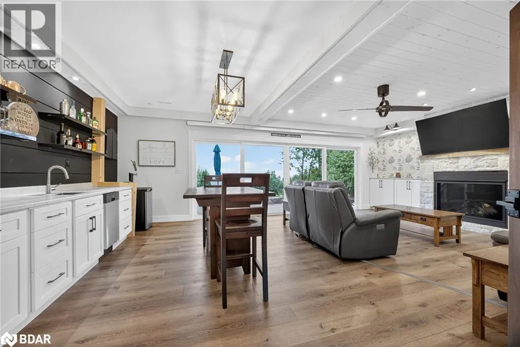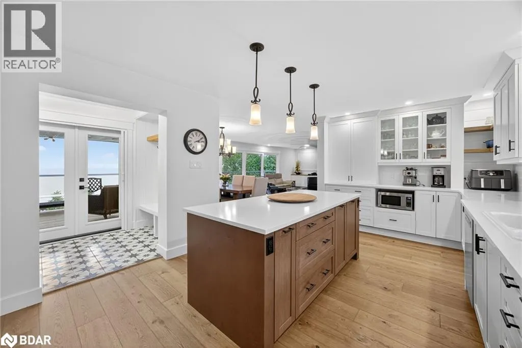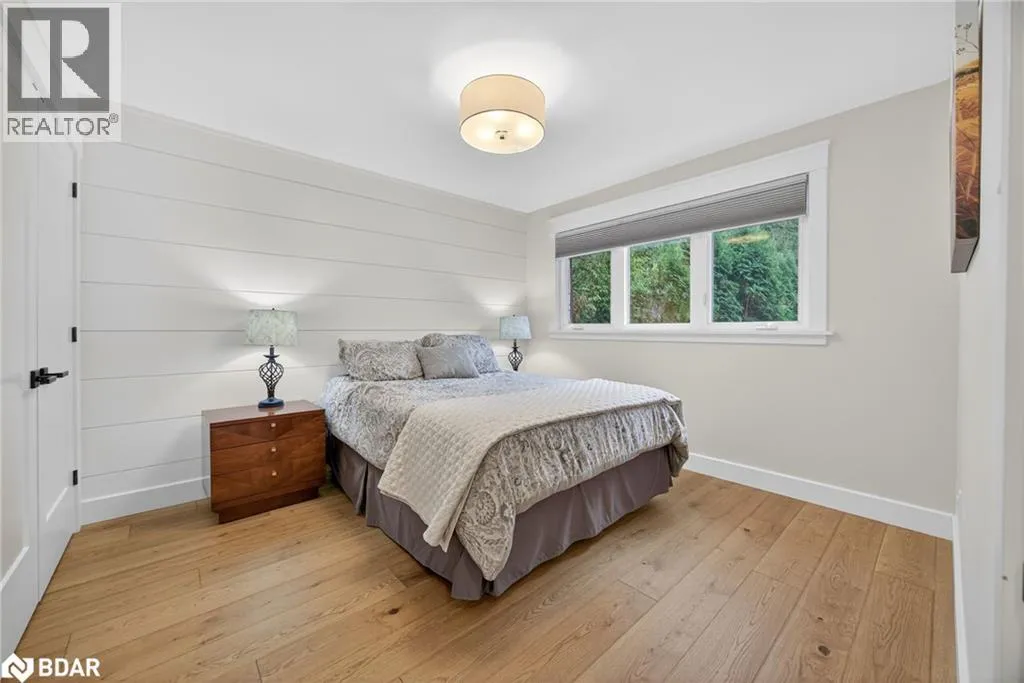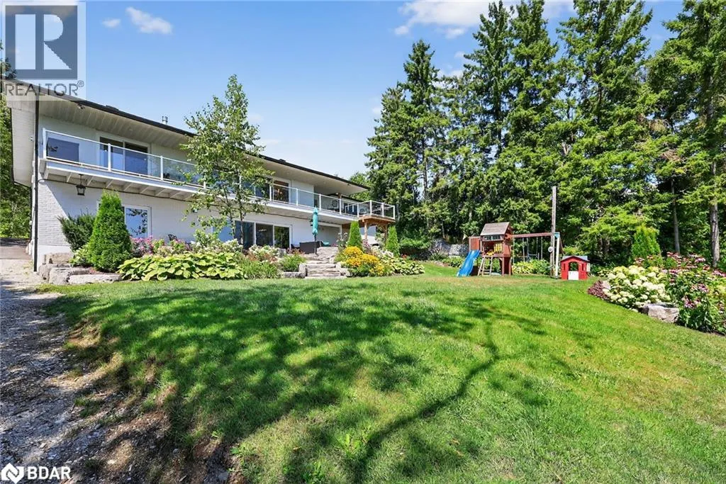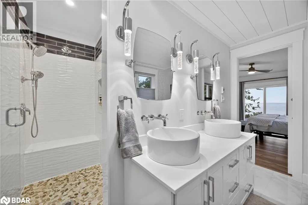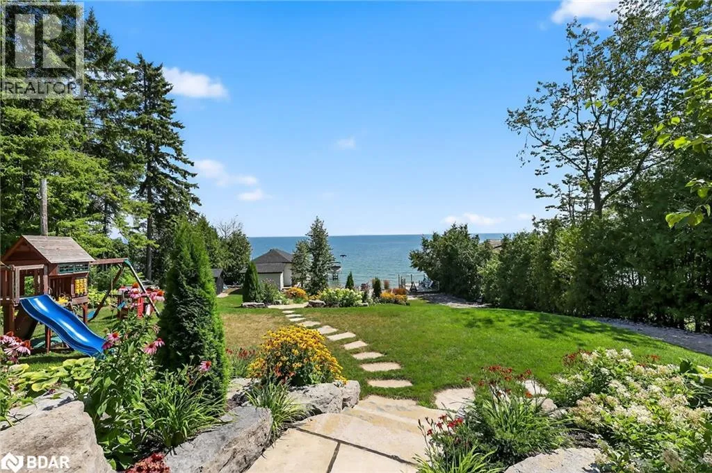 Hwy 11 to 14th Line South, left on Lakeshore to Eight Mile Point Road On a quiet, tree-lined crescent, this turnkey brick bungalow offers an exceptional lifestyle on one of Lake Simcoeâs most sought-after stretches of shoreline. 5 bedrooms, 4 bathrooms & a beautifully renovated bunkie above the single-slip boathouse, lakeside living at its finest.Professionally landscaped front and back with lush perennials, a full irrigation system. Engineered hardwood throughout the main floor. Kitchen with quartz countertops, Thermador WiFi-enabled gas range, pot filler & premium finishes. Living room with gas fireplace & dining area with walkout to a sprawling 75-ft deck (gas BBQ hookup)overlooking the lake - perfect for entertaining. Main floor primary features a luxurious ensuite with heated floors, large walk-in shower, Bluetooth in-wall speaker, in-suite laundry hook-up & a private walkout with water views. Two additional main floor bedrooms share a 4-piece bath.Recreation room with fireplace & walkout to a private hot tub area overlooking the water. Wet bar with fridge and dishwasher. 2nd primary with fireplace, built-ins, water views, walkout access & an opulent ensuite featuring a soaker tub on a solid walnut base, heated floors, double vanity & glass shower. Additional 5th bedroom, 2-piece powder room, laundry room, 6-person sauna with separate shower & mudroom with built-in dog bath. Renovated bunkie above the 26' x 12' boathouse, complete with kitchen & 3-piece bath â ideal for guests who won't want to leaveâ. Marine railway to the boathouse. Waterside 10' x 19' deck, concrete stairs, break wall & 100â of clean, hard-bottom pebble shoreline with approximately 5 feet of depth off the dock with hard bottom sandâ perfect for swimming & water activities. Association dues include access to 62 acres of private parkland with nature trails for walking, cross-country skiing, etc & two waterfront tennis courts. Minutes to the Simcoe Rail Trail for biking, running, walking, or snowmobiling. Close to Orillia for amenities. 1 hour to the GTA. (id:27476)
