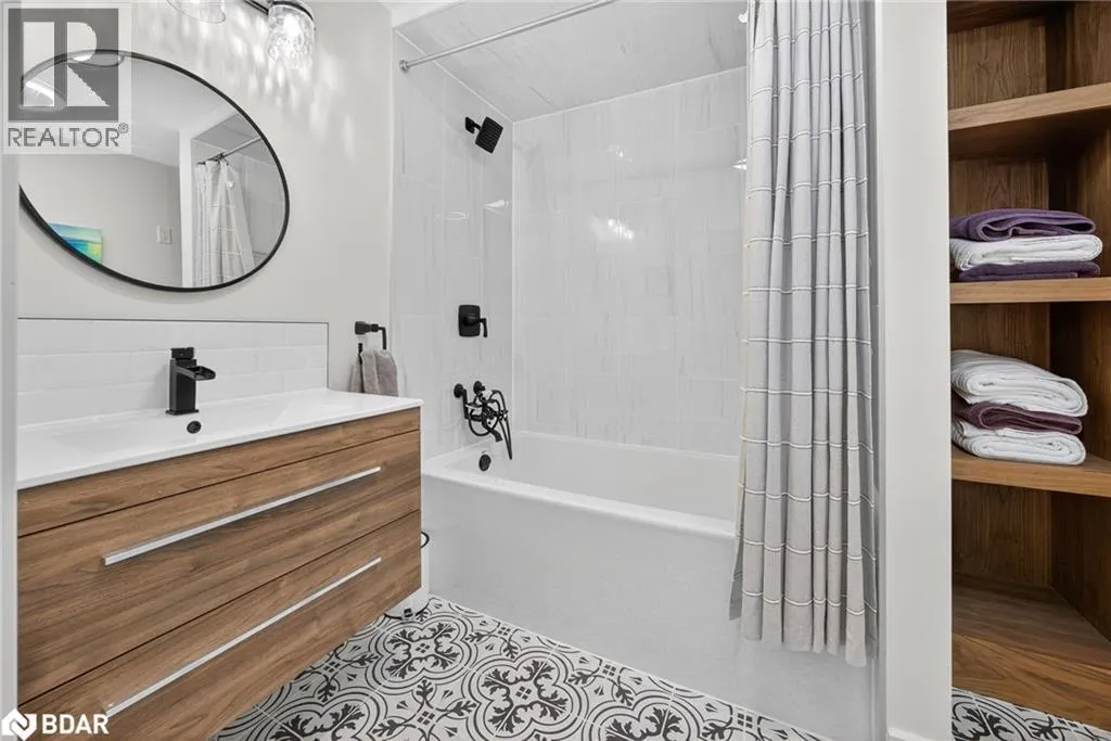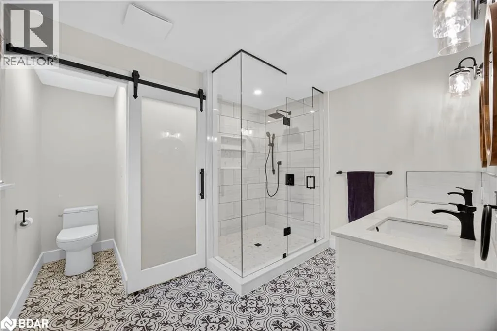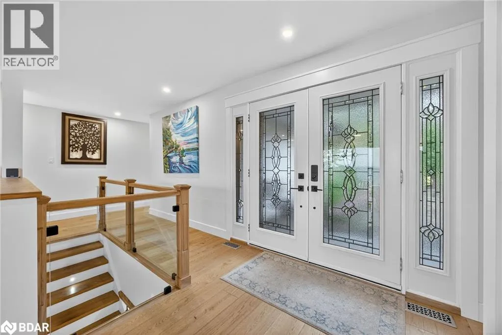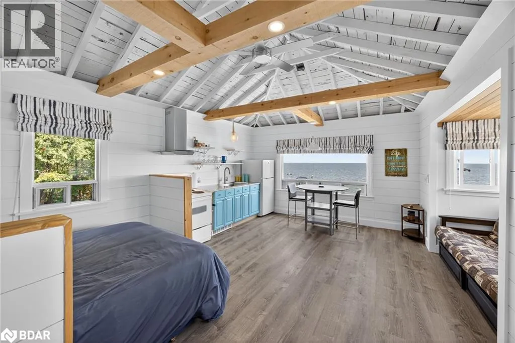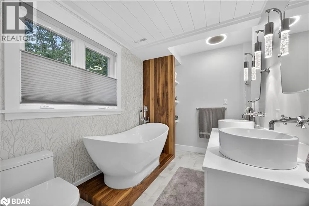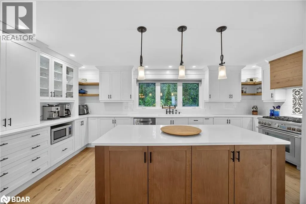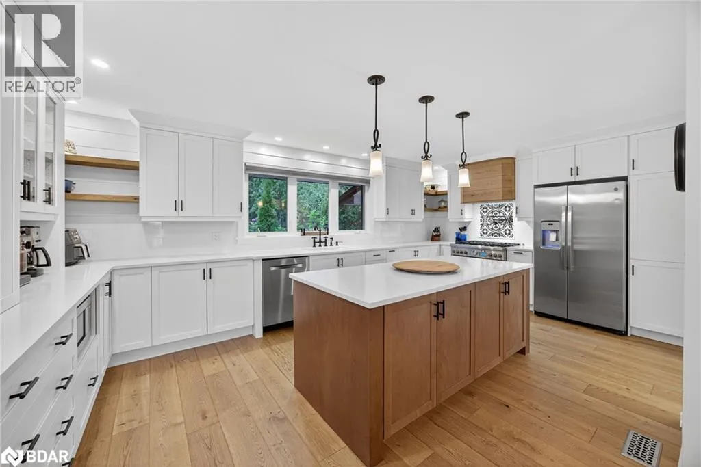 Hwy 11 to 14th Line South, left on Lakeshore to Eight Mile Point Road On a quiet, tree-lined crescent, this turnkey brick bungalow offers an exceptional lifestyle on one of Lake Simcoeâs most sought-after stretches of shoreline. 5 bedrooms, 4 bathrooms & a beautifully renovated bunkie above the single-slip boathouse, lakeside living at its finest.Professionally landscaped front and back with lush perennials, a full irrigation system. Engineered hardwood throughout the main floor. Kitchen with quartz countertops, Thermador WiFi-enabled gas range, pot filler & premium finishes. Living room with gas fireplace & dining area with walkout to a sprawling 75-ft deck (gas BBQ hookup)overlooking the lake - perfect for entertaining. Main floor primary features a luxurious ensuite with heated floors, large walk-in shower, Bluetooth in-wall speaker, in-suite laundry hook-up & a private walkout with water views. Two additional main floor bedrooms share a 4-piece bath.Recreation room with fireplace & walkout to a private hot tub area overlooking the water. Wet bar with fridge and dishwasher. 2nd primary with fireplace, built-ins, water views, walkout access & an opulent ensuite featuring a soaker tub on a solid walnut base, heated floors, double vanity & glass shower. Additional 5th bedroom, 2-piece powder room, laundry room, 6-person sauna with separate shower & mudroom with built-in dog bath. Renovated bunkie above the 26' x 12' boathouse, complete with kitchen & 3-piece bath â ideal for guests who won't want to leaveâ. Marine railway to the boathouse. Waterside 10' x 19' deck, concrete stairs, break wall & 100â of clean, hard-bottom pebble shoreline with approximately 5 feet of depth off the dock with hard bottom sandâ perfect for swimming & water activities. Association dues include access to 62 acres of private parkland with nature trails for walking, cross-country skiing, etc & two waterfront tennis courts. Minutes to the Simcoe Rail Trail for biking, running, walking, or snowmobiling. Close to Orillia for amenities. 1 hour to the GTA. (id:27476)