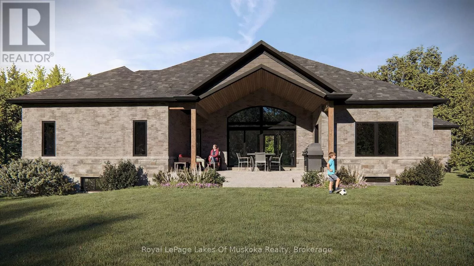 Highway 12 to Warminster Sideroad Welcome to The Meadow Acres and 19 Henry Ball Court by Jackson Developments. An estate community with executive 1/2 to 1-acre lots and custom packages to choose from. Backed by Tarion Home Warranty this full stone and brick with timber and shake accent home has many custom features for your dream home in the beautiful sought after community of Warminster. Minutes from amenities in Orillia, Costco, Cavana Spa, The Ktchn or Braestone Golf Club. With magnificent views backing onto trees and farmland this 1,819sqft hosts 3 bedrooms. Primary ensuite consists of large walk in shower with glass enclosure, freestanding tub and large vanity with quartz countertops. Main floor bedrooms, great for families or professionals looking for an estate type home. The mudroom features laundry with built-in cabinetry. 9-foot main ceilings throughout with 14-foot vaulted ceiling in the main living area. Natural gas Napoleon linear fireplace with custom surround. Custom designed kitchen with 9 island, and bathroom cabinetry with solid quartz counters throughout. Engineered hardwood throughout all main living areas and bedrooms, and quality modern tile selections for bathrooms, showers and mudroom areas. Pot lights and modern lighting fixtures throughout. Stained oak staircase. This builder spares no expense also including a large covered back concrete porch, soffit pot lights in the front and rear yard, fully sodded yard, basement a full 8 height poured foundation. Town water, septic, gas and high speed. The garage features 12 ceiling heights and suitable for 3 vehicles, great for car hoist or extra storage. Pollard windows and doors and premium insulated garage doors with openers. This gorgeous home is currently ready for construction and completion for early spring 2026 closing. Reach out today to build your dream home. (id:27476)