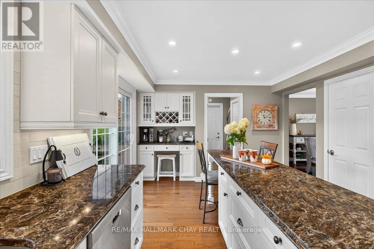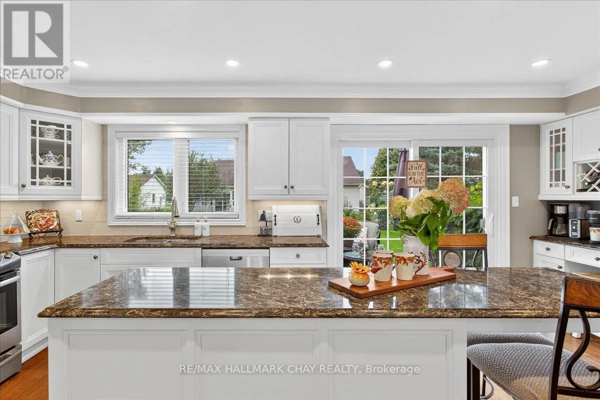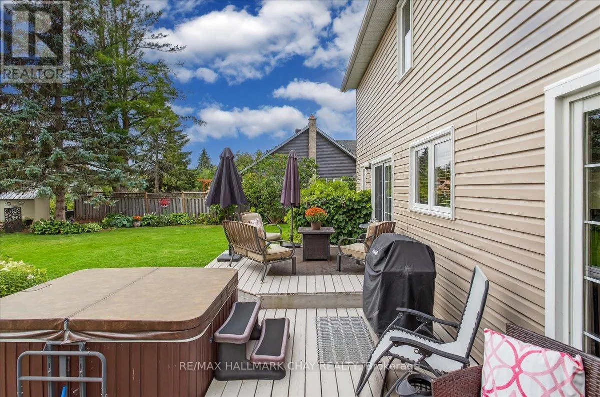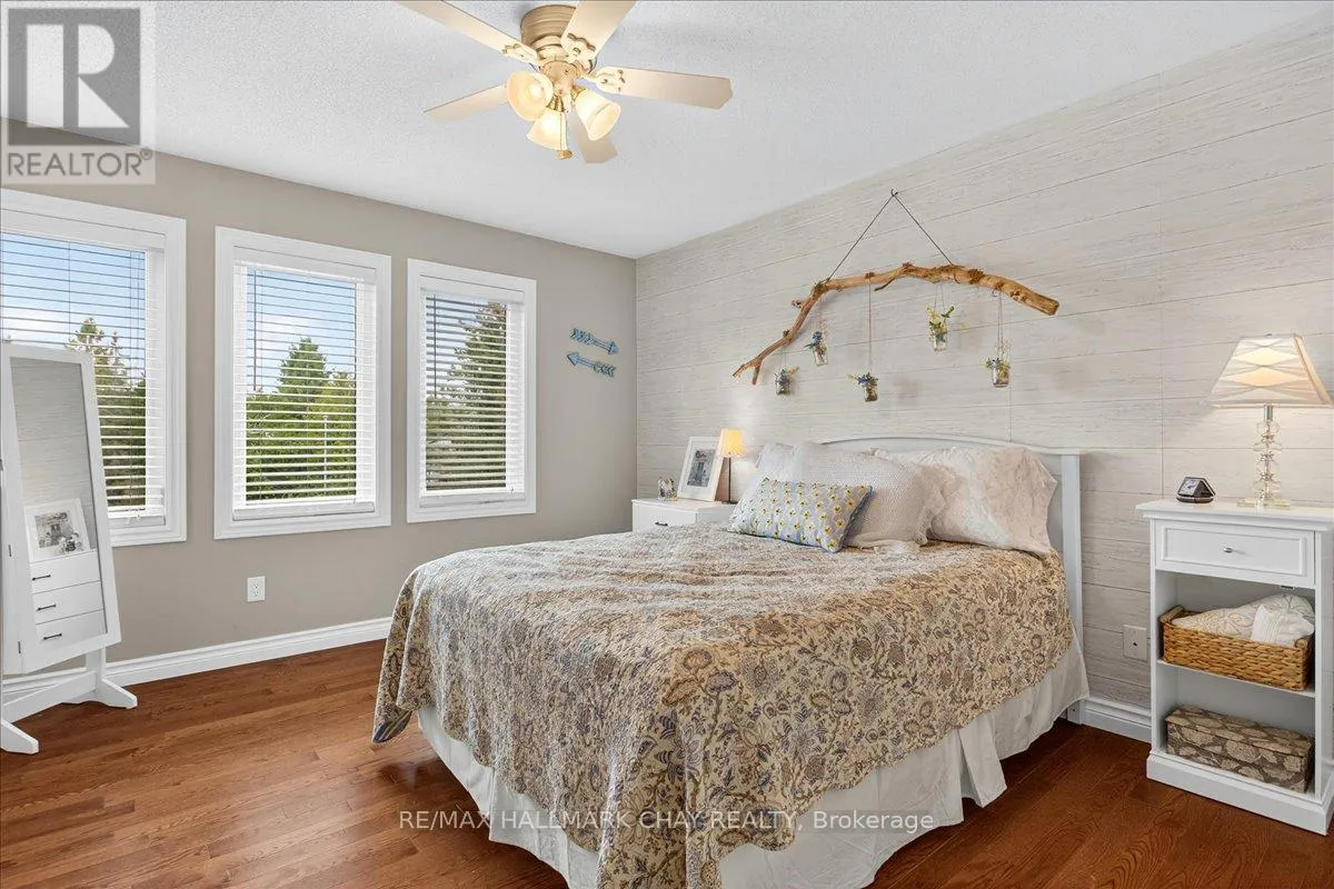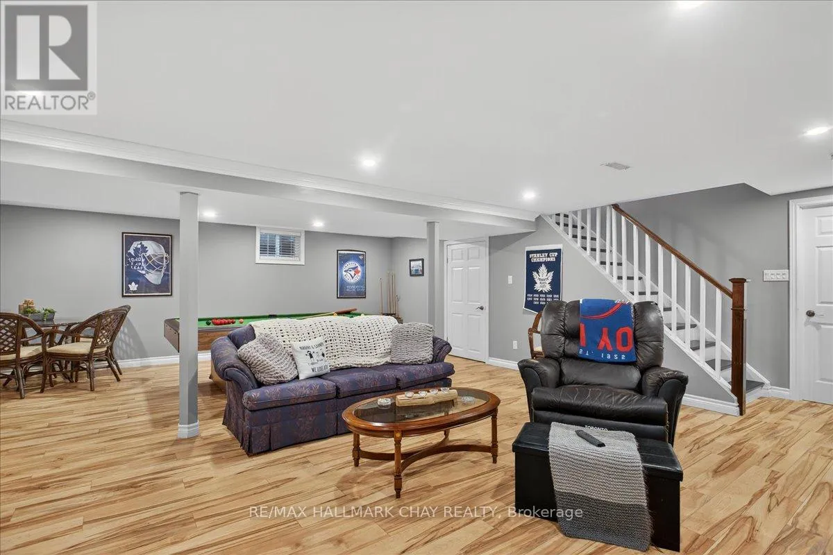 Cross Streets: 7th line and Lakeshore. ** Directions: 5th Line to Lakeshore to Elvyn to Howard. Welcome to Harbourwood in Oro-Station! This beautifully renovated 2-storey offers over 3,000 sq. ft. of living space and a sought-after lake lifestyle. Fully updated in 2018, it features hardwood floors, a chefs kitchen with granite counters, island seating, and custom cabinetry. Bright garden doors lead to a spacious deck with a hot tub. The home includes 4 bedrooms, 3 bathrooms, and a finished basement with a cozy gas fireplace and a large rec room. Oversized double garage with inside entry, backyard access, and plenty of storage for vehicles, boats, and outdoor gear. Enjoy perennial landscaping with a private retreat corner. Steps to trails, Memorial Beach, and lake access, with commuter routes close by. Located in the Guthrie PS and Eastview SS catchments, both highly regarded. (id:27476)