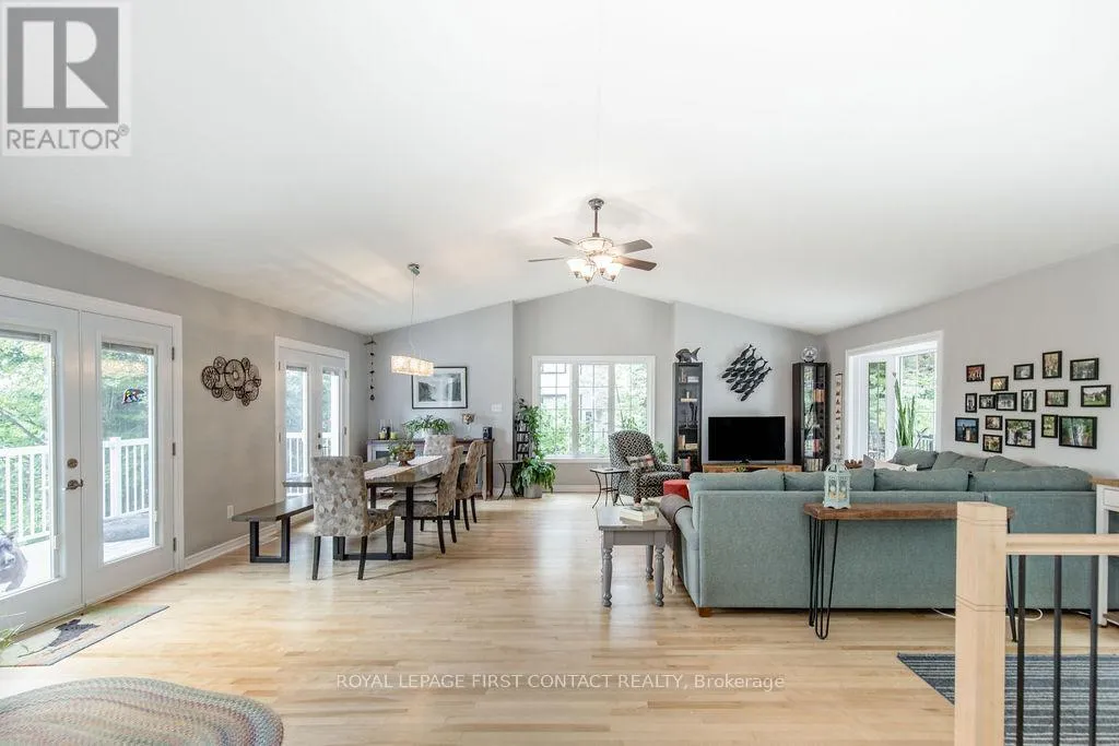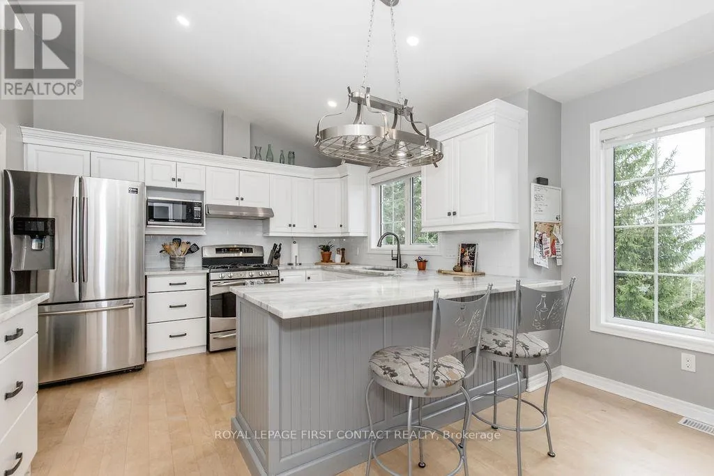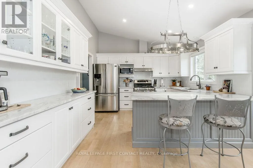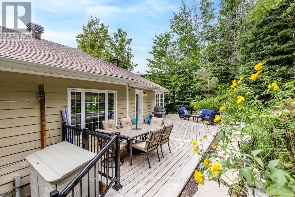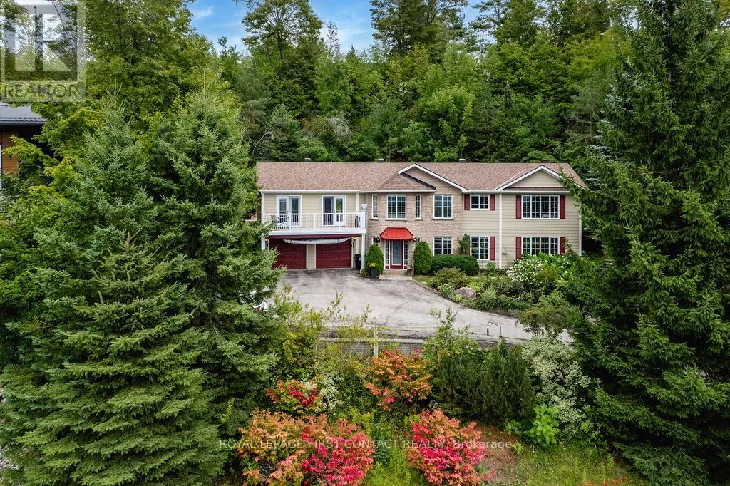 Cross Streets: Highland Drive and Valleycrest Drive. ** Directions: Line 4 to west on Highland Drive to North on Valleycrest Drive. Rare and priceless valley views on one of Horseshoe Valley's most prestigious streets, this radiant retreat offers over 3000 finished square feet overlooking the valley and providing daily sunsets that will take your breath away! Surrounded by premium homes and immersed in natural beauty, the property boasts an abundance of windows that flood the space with sunlight, creating a warm and inviting atmosphere throughout. The expansive open-concept main living area with vaulted ceilings flows seamlessly to multiple decks, perfect for entertaining or simply soaking in the panoramic scenery. The updated kitchen is a chef's dream, featuring stainless steel appliances, granite countertops, a pantry cupboard, and a peninsula with breakfast bar - all framed by stunning views from every angle. With 4 bedrooms, 2.5 bathrooms, and a spacious lower-level family room, there is space for everyone to relax and unwind. The primary suite is a true sanctuary, complete with a large window overlooking the valley, a walk-in closet, and a luxurious 5-piece ensuite with separate shower and jetted tub. Step outside into a super secluded backyard oasis, where a large deck, multi-tiered gardens, a private pond, and the soothing sounds of a gentle waterfall create a peaceful retreat. The two car attached garage features convenient inside access to the main house, storage space for all your toys, and includes an electric car charger! All this, set in one of Ontario's most vibrant communities - home to two ski resorts, championship golf, endless hiking and walking trails, some of the provinces finest mountain biking, and within walking distance to a brand new public school. This is more than a home - it's a lifestyle. (id:27476)