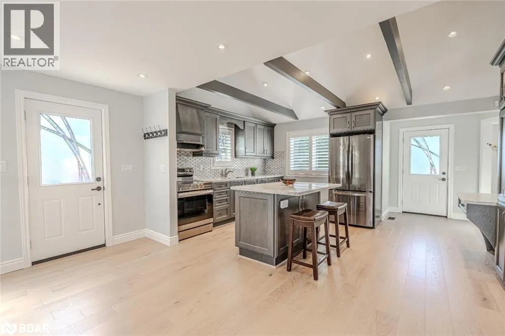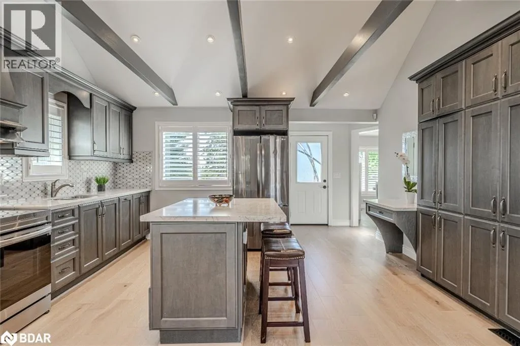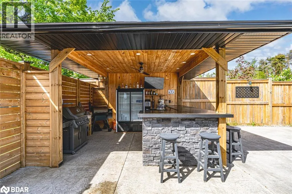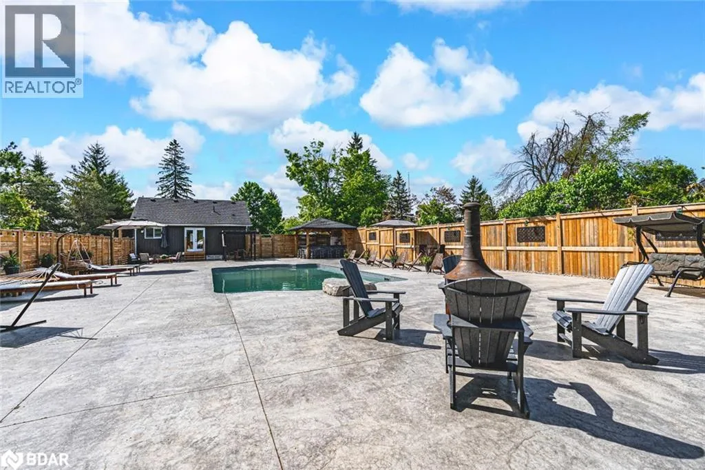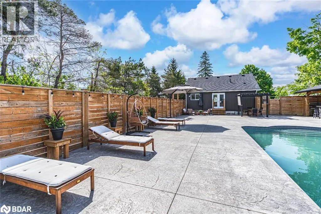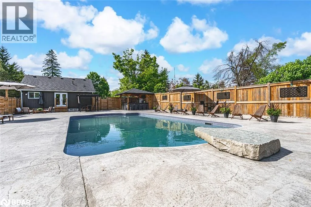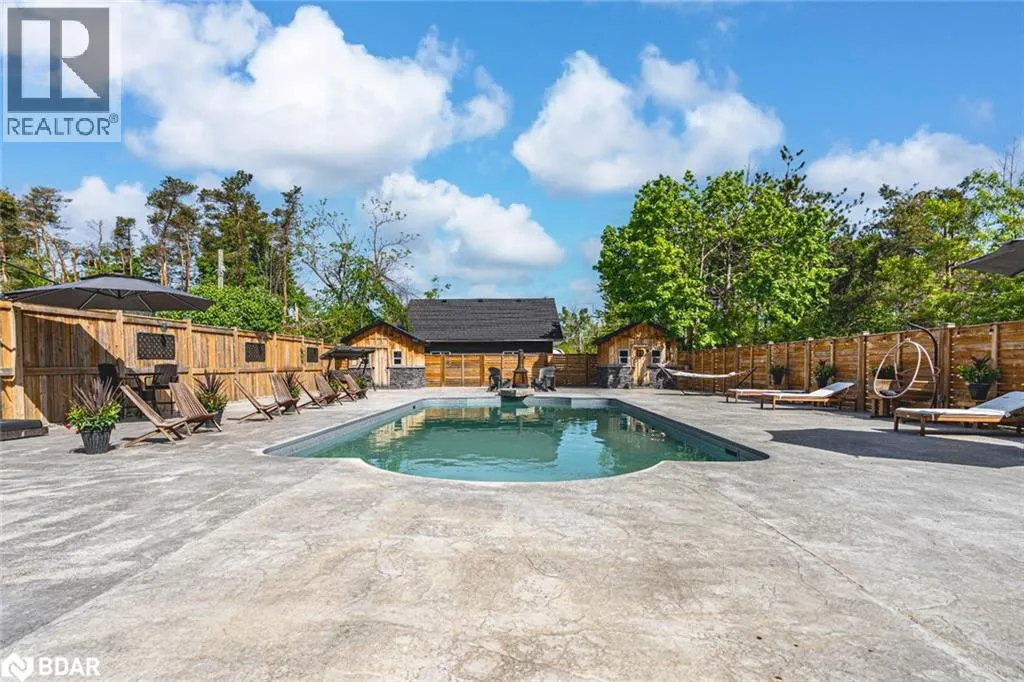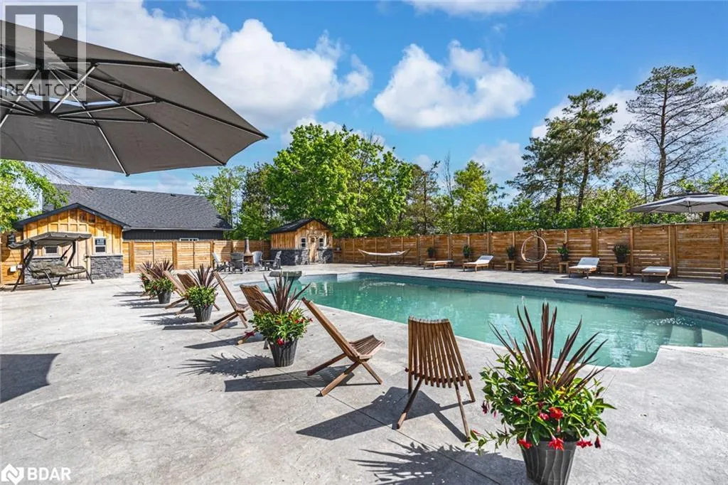 Southbound: Take the Line 5 North exit then Immediately turn right as if to head over the Highway to access the north side. Before going over the Highway, you will see our for sale sign to the right. LUXURY INSIDE, PARADISE OUTSIDE - THIS ONE WAS MADE TO ENTERTAIN! Live the lifestyle youâve been dreaming of in this extraordinary home, set on a fully fenced 0.72-acre lot just off Highway 11 with quick access to downtown Barrie in 15 minutes and Orillia in 20. Enjoy year-round recreation with Lake Simcoeâs waterfront only 6 minutes away, nearby golf courses, scenic forest trails, and Snow Valley Ski Resort just 30 minutes from your door. Behind the secure gated entry with keypad access and motion sensors, the professionally landscaped grounds showcase luxurious armour stone, a 9 x 12 ft front deck, a newly paved driveway, and a heated triple garage and workshop with full insulation, gas service, and automatic door openers. The backyard oasis is built for entertaining with a 20 x 40 ft saltwater pool, stamped concrete surround, two powered cabanas with change rooms, and a covered bar with epoxy counters, a built-in fridge, BBQ hookup, ceiling fan, and a seasonal sink. Inside, the fully renovated main level offers high-end finishes and open-concept living, with a designer kitchen boasting quartz counters, upgraded appliances, and a walkout to the poolside patio. The bathroom features a quartz vanity and glass-enclosed tiled shower, while the primary bedroom includes a cedar walk-in closet, with the option to convert the dining room into a third bedroom if desired. Added highlights include main-floor laundry, California shutters, and an engineered hardwood staircase with custom black rod railings. The finished basement adds a spacious family room with a gas fireplace and built-in shelving, a guest bedroom, office nook, and premium mechanical upgrades including a gas furnace, pressure pump, water softener, three sump pumps, and an owned hot water tank. Donât miss your chance to own this exceptional retreat - where high-end finishes meet unmatched outdoor luxury, creating the ultimate space to relax, entertain, and make every day feel like a getaway. (id:27476)