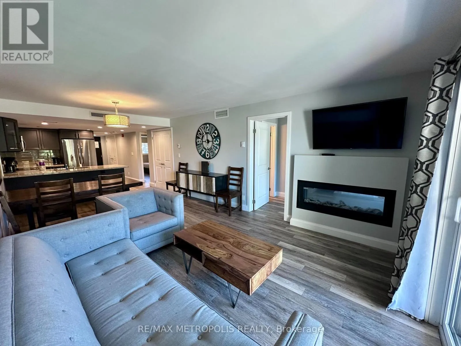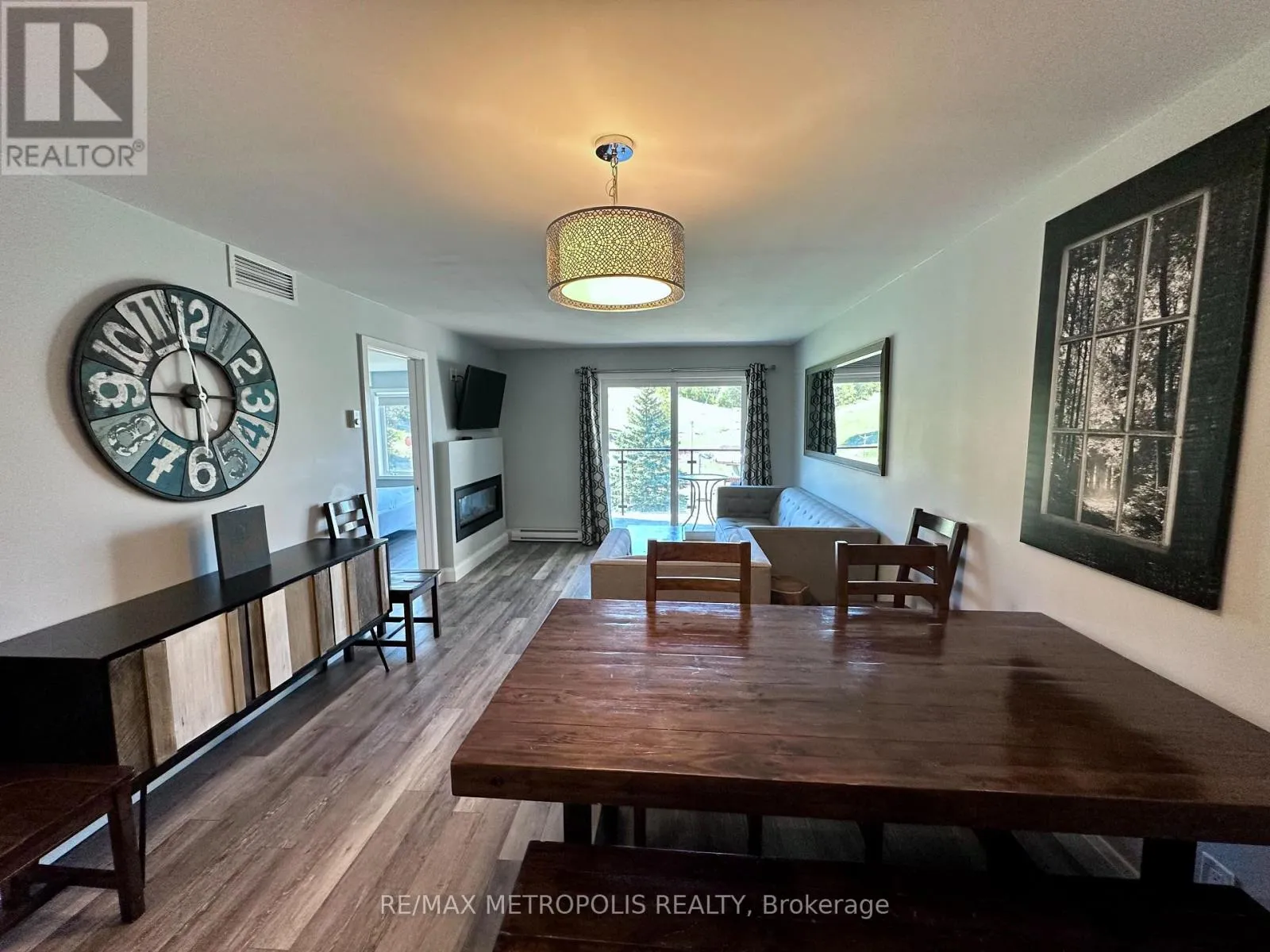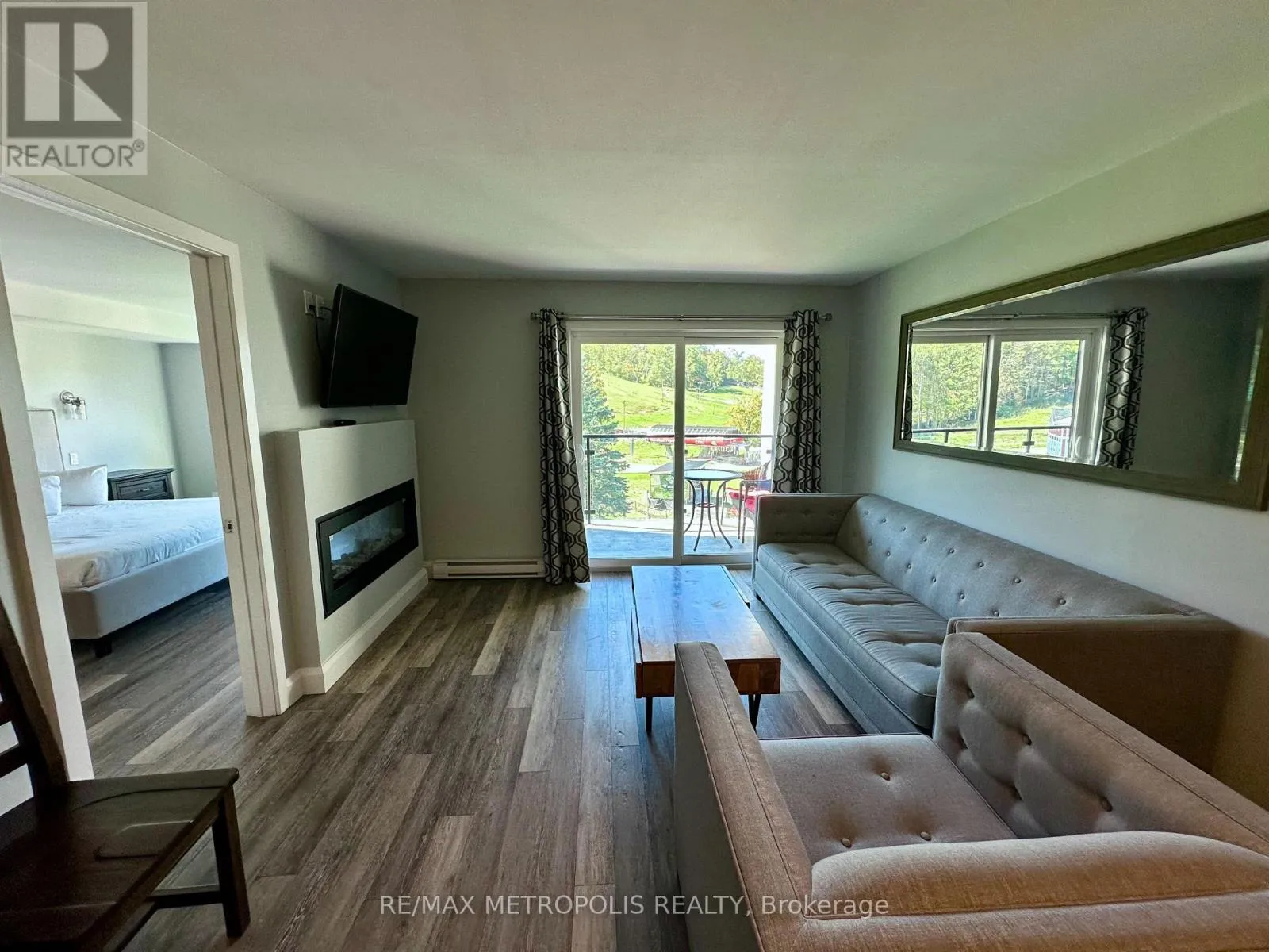 Cross Streets: HORSESHOE VALLEY ROAD WEST - HORSESHOE BOULEVARD -. ** Directions: HORSESHOE VALLEY ROAD WEST - HORSESHOE BOULEVARD - (DIRECTLY ACROSS FROM HORSESHOE RESORT). Welcome to The Ellesmere at Slopeside Condos a sophisticated 2-bedroom + den, 2-bath retreat offering 1,188 sq ft of thoughtfully designed living space. Fully furnished and move-in ready, this residence blends elegance with functionality: a see-through fireplace, modern kitchen with stainless appliances, in-suite laundry, and two walk-outs to a private 12 x 5 balcony showcasing breathtaking views of the ski hills.Set directly at Horseshoe Resort, owners and guests enjoy four-season experiences at their doorstep: world-class skiing and snowboarding, championship golf, scenic hiking and biking trails, and the renowned Vetta Nordic Spa just minutes away. Exclusive resort amenities include pools, fitness centre, and spa facilities creating an effortless lifestyle escape.For investors, this property is eligible for the Horseshoe Resort rental program, delivering both passive income potential and capital appreciation in one of Ontarios most desirable year-round destinations. Just over an hour from the GTA, this is not only a luxury getaway but a rare opportunity to own a proven revenue-generating asset in a thriving resort community. (id:27476)