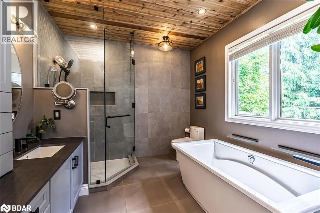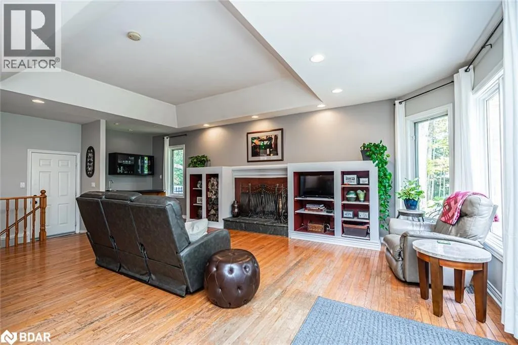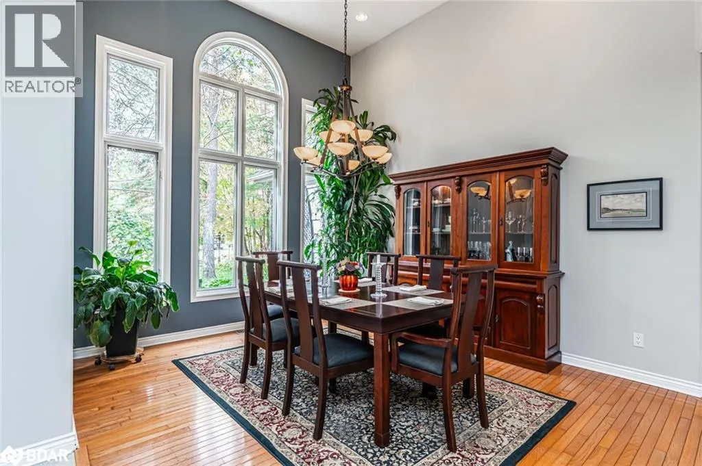 Horseshoe Valley Rd W/4 Line N/Alpine Way/Bunker Pl DISTINGUISHED HORSESHOE HIGHLANDS ESTATE ON A SERENE CUL-DE-SAC SETTING! Nestled on a quiet cul-de-sac in the prestigious Horseshoe Highlands, this elegant home offers over 3,650 finished sq ft of timeless style and thoughtful design, backing onto a former golf course surrounded by mature trees and manicured gardens. Sunlight fills every corner of the open-concept layout, where large windows, rounded corners, and refined lighting create an atmosphere of understated luxury. The bright kitchen features wood cabinetry, stainless steel appliances, a gas cooktop, a breakfast bar, and a breakfast area overlooking the yard. A formal dining room with soaring ceilings and dramatic arched windows creates a stunning backdrop for elegant gatherings, while the sunken family room with a tray ceiling and gas fireplace, and the living room with a wood-burning fireplace and wet bar, offer warm and inviting spaces to unwind. The primary suite feels like a private retreat with dual walk-in closets, a five-piece ensuite featuring a dual-sink vanity, a glass-walled shower, a soaker tub, and a walkout to its own secluded deck through double garden doors. Two additional bedrooms share a stylish three-piece bath, while a convenient main-floor laundry adds everyday ease. The partially finished lower level offers a generous recreation room, office, wine cellar, and three-piece bath, providing versatility for any lifestyle. Outdoors, a fully fenced yard with two decks, including one featuring dual pergolas, is framed by lush landscaping, vibrant gardens, and vegetable beds. A double-car garage with inside entry and driveway parking for up to ten vehicles completes this exceptional property. Perfectly positioned within minutes of the new elementary school, community centre, medical clinic, park, and tennis courts, and under 20 minutes from Barrieâs RVH and Georgian College, with year-round recreation close at hand, including skiing, golf, hiking, and Vetta Nordic Spa. (id:27476)