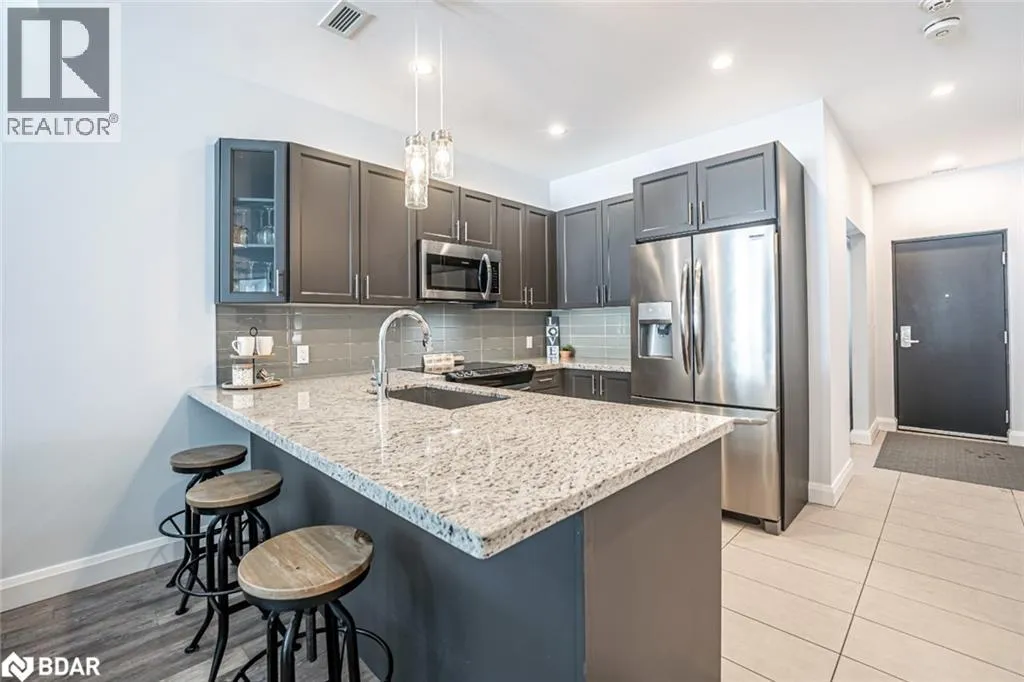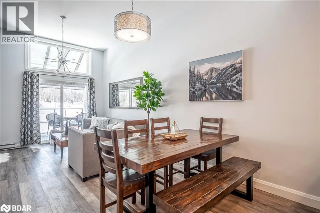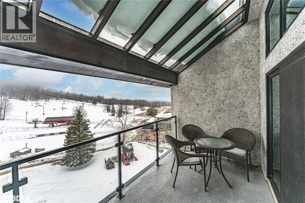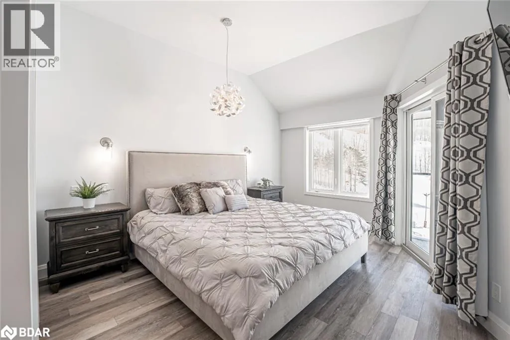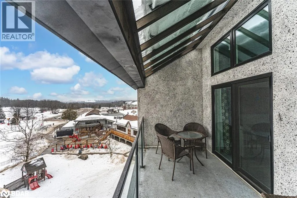 Highway 400/Horseshoe Valley Rd W/Horseshoe Blvd EXPERIENCE THE BEST OF HORSESHOE VALLEY LIVING! Experience year-round adventure and luxury living in this spectacular top-floor penthouse suite, perfectly situated in Horseshoe Valley! With nearly 1,200 sq. ft. of spacious living space and high ceilings throughout, this home is ideal for those seeking both comfort and excitement. Just moments away from restaurants, Vetta Nordic Spa, and a wide range of outdoor activities like skiing, snowboarding, golf, kayaking, and more, this location offers something for everyone. Enjoy breathtaking views of the slopes from your private balcony, accessible from both the living room and the large primary bedroom, where you can also listen to live music from the concerts at Horseshoe. The suite comes fully furnished with modern and tasteful furnishings. The chef-inspired kitchen features dark-toned cabinetry, high-end appliances, granite countertops, a stylish tile backsplash, and plenty of cabinet space for all your kitchen essentials. The elegant living room boasts a two-sided fireplace, creating a cozy ambiance, and is complemented by a modern chandelier. The spacious interior offers two generously sized bedrooms plus a den with a pullout couch, with the large primary bedroom including a walk-in closet and an ensuite featuring double sinks, a glass-walled shower, and a linen closet for extra storage. Additional features include an in-suite washer and dryer, a storage locker for skis, snowboards, bikes, and more, and condo fees that cover water, gas, parking, common elements, and insurance. Amenities include indoor and outdoor pools, a sauna, a shared beach, a communal waterfront area, an exercise room, and visitor parking. Plus, Horseshoe Valley offers a rental program that makes it easy for vacationers and skiers to rent your unit. Donât miss out on the opportunity to own this incredible penthouse suite, your perfect year-round retreat in Horseshoe Valley, where adventure awaits! (id:27476)