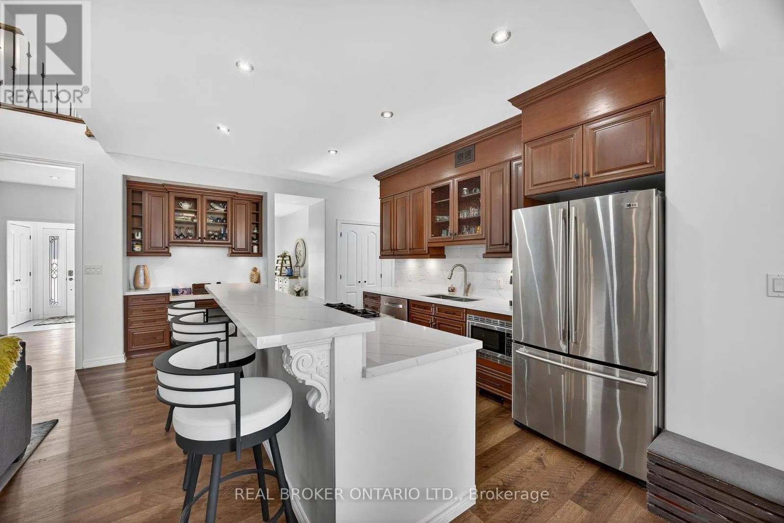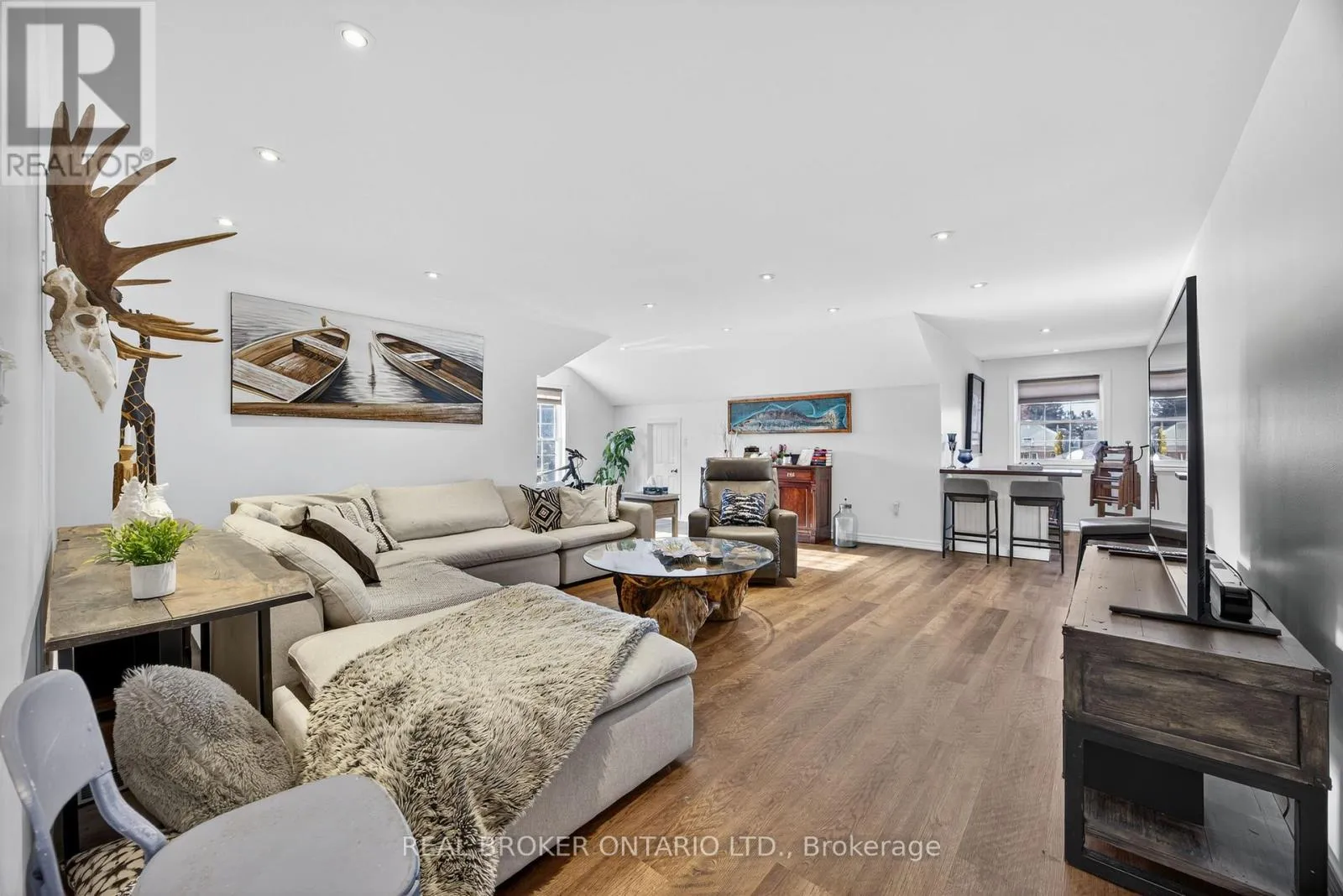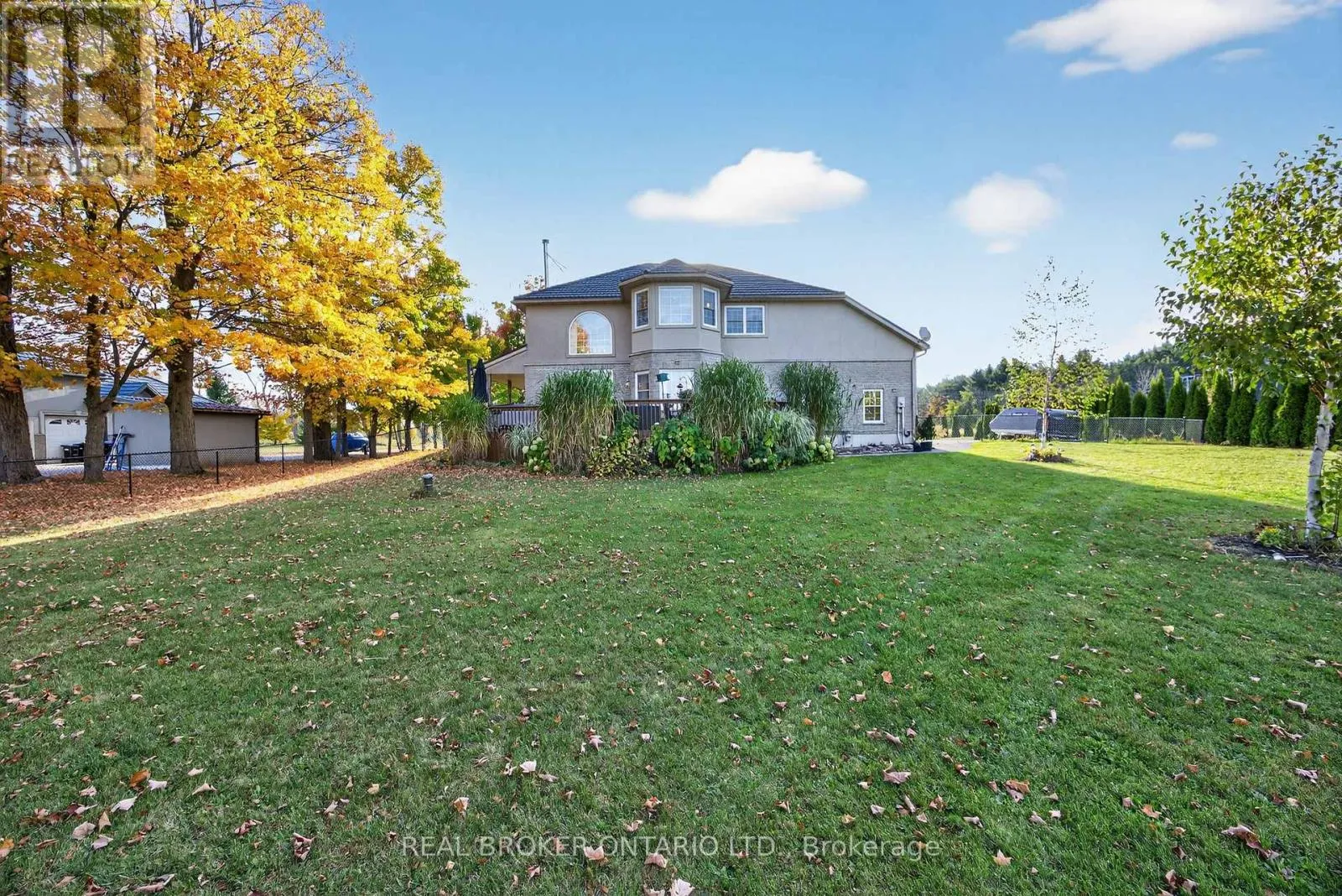 Cross Streets: Horseshoe Valley Rd/Line 10. ** Directions: Line 10. Tucked away on nearly 2 acres of private, tree-lined land, this one-of-a-kind custom home offers the ideal blend of luxury, space, and serenity. Surrounded by mature trees and cedars, the setting is peaceful and secluded, yet just minutes from all the essentials. With nearly 3,800 sq ft of beautifully finished living space, the home makes a statement from the moment you arrive. A paved driveway guides you to an oversized 3-car garage with convenient access to the laundry/mudroom-perfect for busy families. Step inside to a dramatic great room with soaring vaulted ceilings, a wood-burning fireplace, and floor-to-ceiling windows that bring the outdoors in. The kitchen is designed for both function and style, featuring stone countertops, a gas stove with hoodless venting, and a sunlit breakfast nook that flows into the outdoor entertaining space. On either side of the foyer, a formal dining room and a private office (or music room) offer flexibility. Upstairs, the primary suite feels like a private retreat, complete with a walk-in closet and spa-like 5-piece ensuite. Two more bedrooms share a luxurious full bath, and a cozy family room with a built-in office nook adds a bonus living space. The finished lower level is ideal for multi-generational living, with a 3-bedroom in-law suite, private entrance, full kitchen, and garage access. Outdoor living is a dream with a large back deck, a wrap-around front porch, a fire pit area, a vegetable garden, and fruit trees dotting the landscape. Backed by Braestone Golf Club and The Ktchn, and minutes to Horseshoe Valley, Bass Lake, Glen Oro Farm, Mount St. Louis Moonstone, and more. Just 10 minutes to Orillia and 20 to Barrie-this is luxury country living with city convenience. (id:27476)