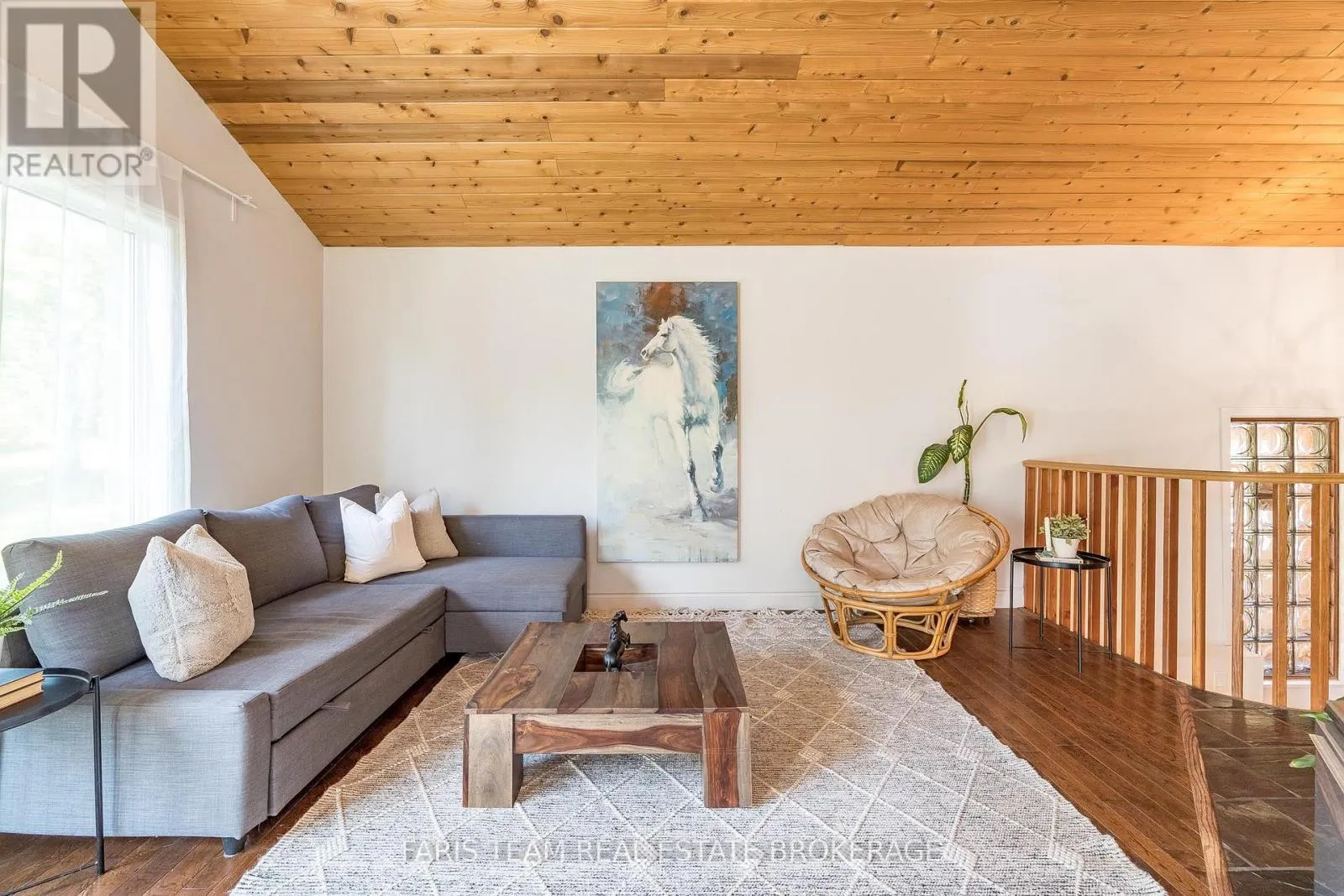 Warminster Sdrd/Line 8 N Top 5 Reasons You Will Love This Home: 1) Tranquil and private 48-acre estate surrounded by nature, featuring scenic walking trails, a chicken coop, dog kennel, barrel sauna, hot tub, gazebo, and lush vegetable and perennial gardens, your own country sanctuary 2) Thoughtfully designed with two fully self-contained living spaces, offering the ideal setup for multi-generational living or guest accommodations 3) Move-in ready with stylish updates throughout, including a newer roof, modern water system, upgraded appliances, and quality finishes that blend comfort with functionality 4) Impressive 1,200 square foot outbuilding with 600-amp service, perfect for a home-based business, workshop, creative studio, or expansive storage, complemented by a newly installed 65'x30'x15' covered storage dome providing additional space for equipment, vehicles, or projects 5) Ideally located just minutes to Highway 400 and Moonstone ski hills, and only 30 minutes to Barrie, Orillia, or Midland, presenting the perfect balance of seclusion and accessibility. 1,564 above grade sq.ft. plus a finished basement. (id:27476)
