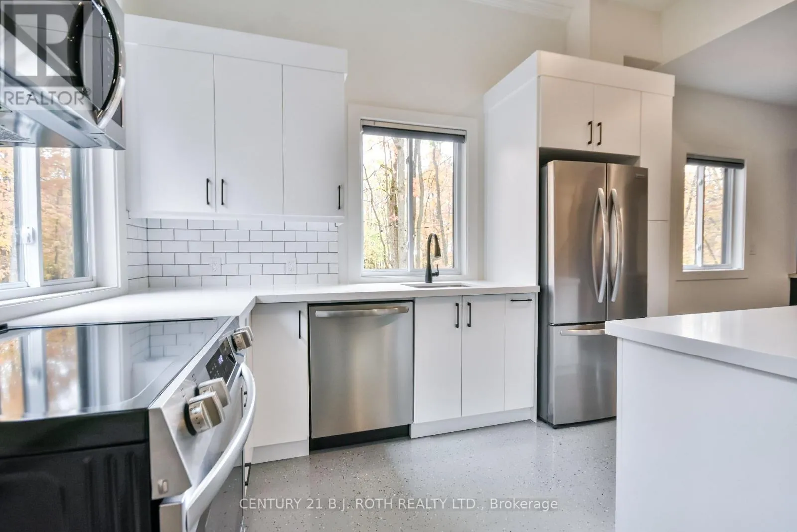 Cross Streets: 7th Line N and Slalom Dr. ** Directions: From Moonstone Rd E, turn north onto 7th Line N, right onto Slalom Drive. Welcome to 10 Slalom Drive, Moonstone, a one of a kind, brand new conversion apartment that perfectly combines modern comfort with the natural beauty of its surroundings. This fully renovated 1-bedroom, 1-bathroom home has never been lived in and features a bright, modern white kitchen with sleek finishes, new appliances, and an inviting open layout. The spacious upstairs bedroom offers a peaceful retreat, and the home includes in-suite laundry and two parking spaces. Step outside and unwind in your own outdoor space, surrounded by mature trees that create a peaceful, private setting. End your day gathered around the fire pit, enjoying the tranquility of nature all around you. Set within the beautiful community of Moonstone, this property provides access to an abundance of outdoor recreation, from nearby hiking, biking, and snowmobile trails to Mount St. Louis Moonstone Ski Resort. With Barrie and Orillia only 20 minutes from your doorstep, you'll enjoy the best of both worlds, a quiet rural retreat with easy access to city conveniences! Whether you're an outdoor enthusiast, a professional seeking a serene home base, or simply looking for a fresh, modern space surrounded by nature, this exceptional home offers the perfect blend of tranquility, comfort, and convenience. Rental Application, Credit Check, First and Last required. High Speed Wifi Included. Utilities in addition to rent. (id:27476)