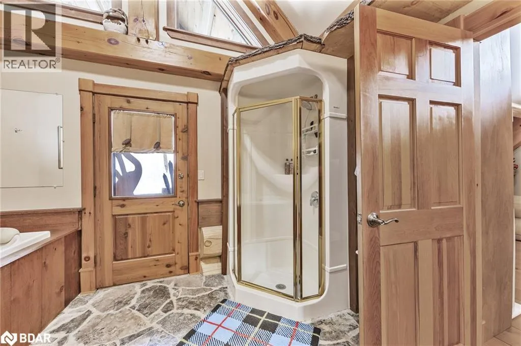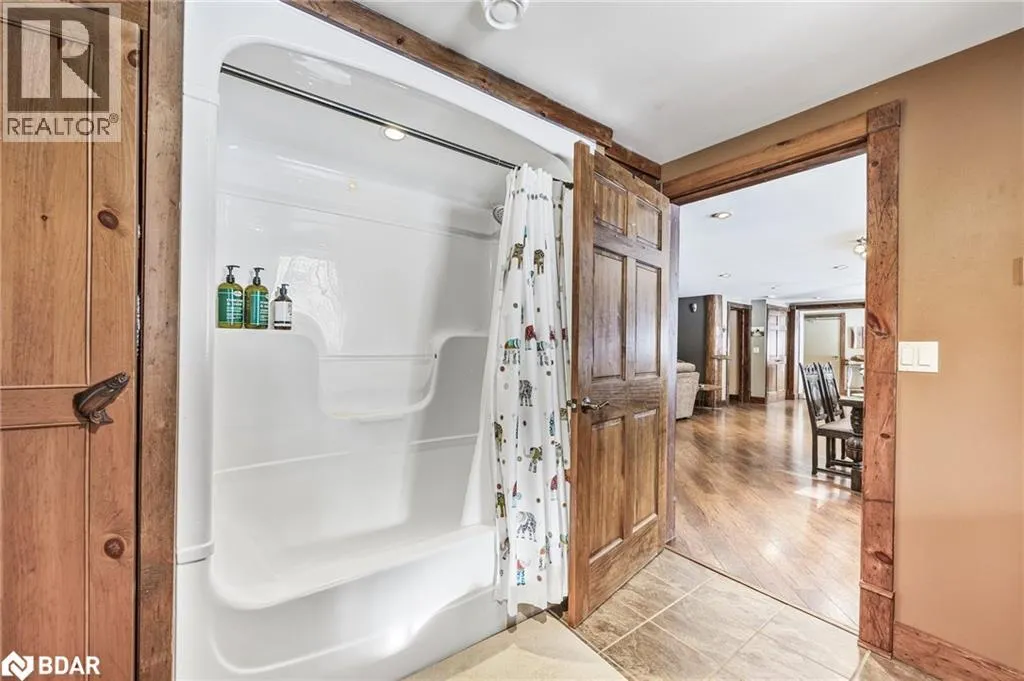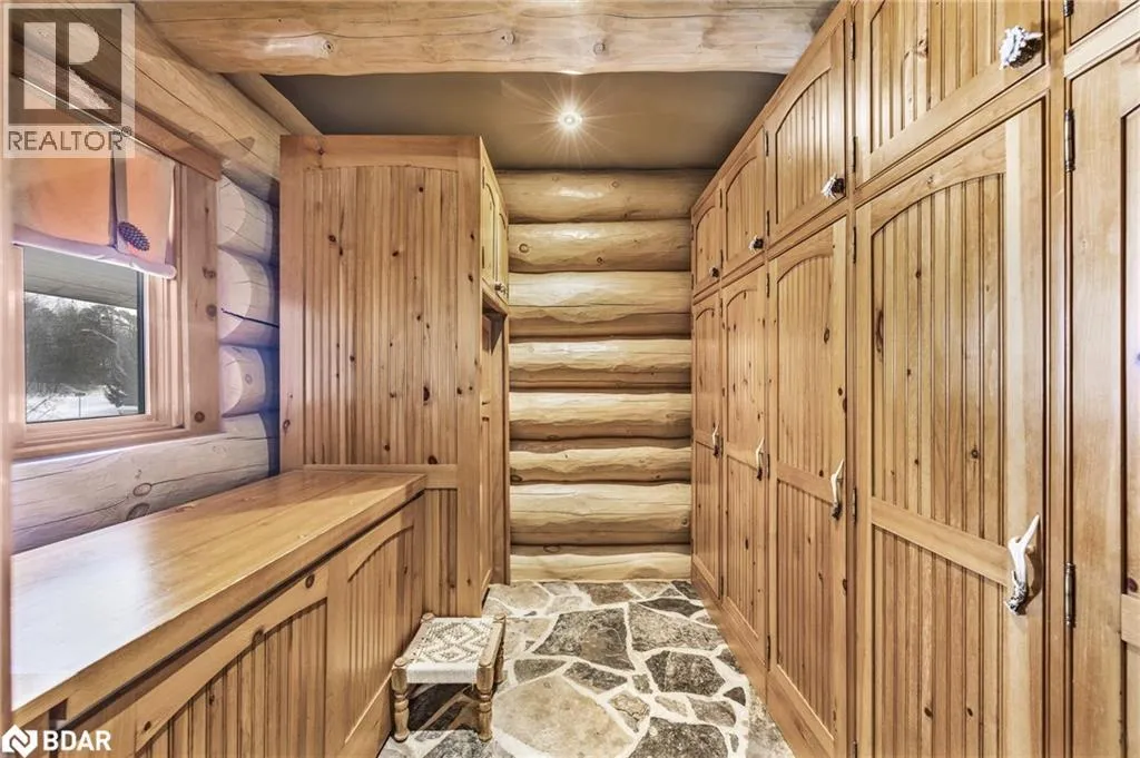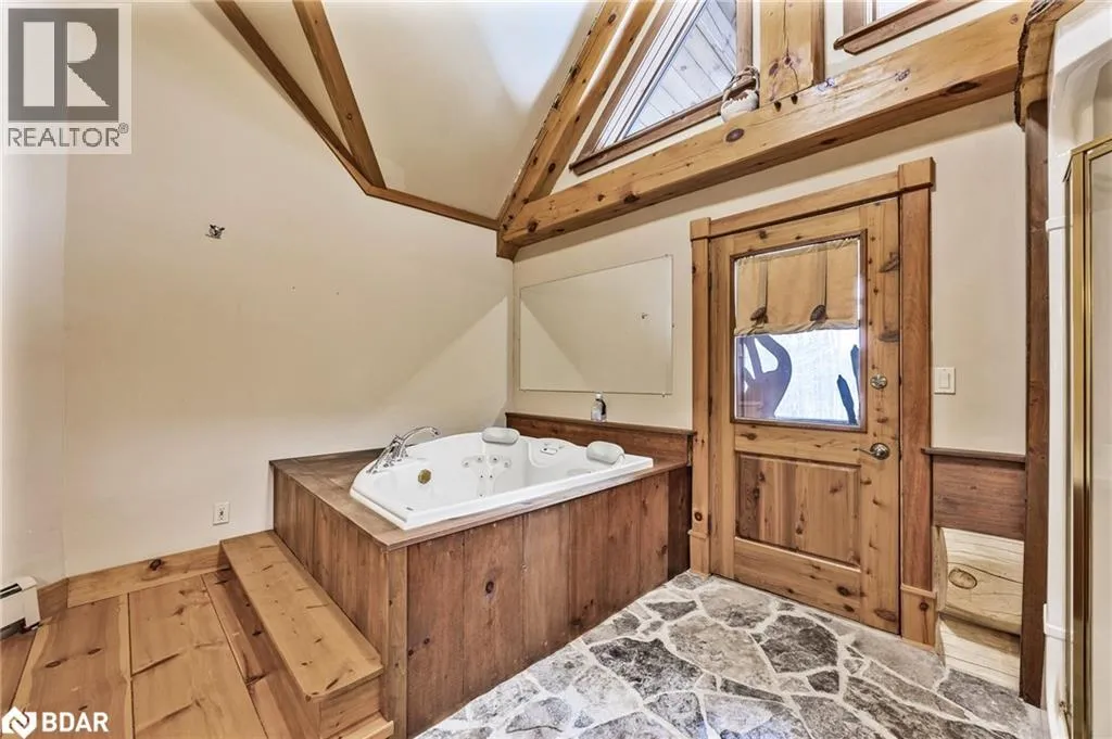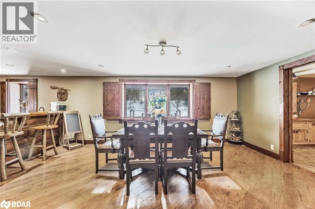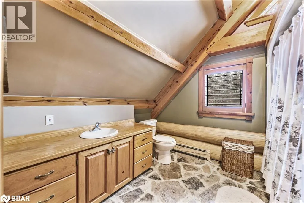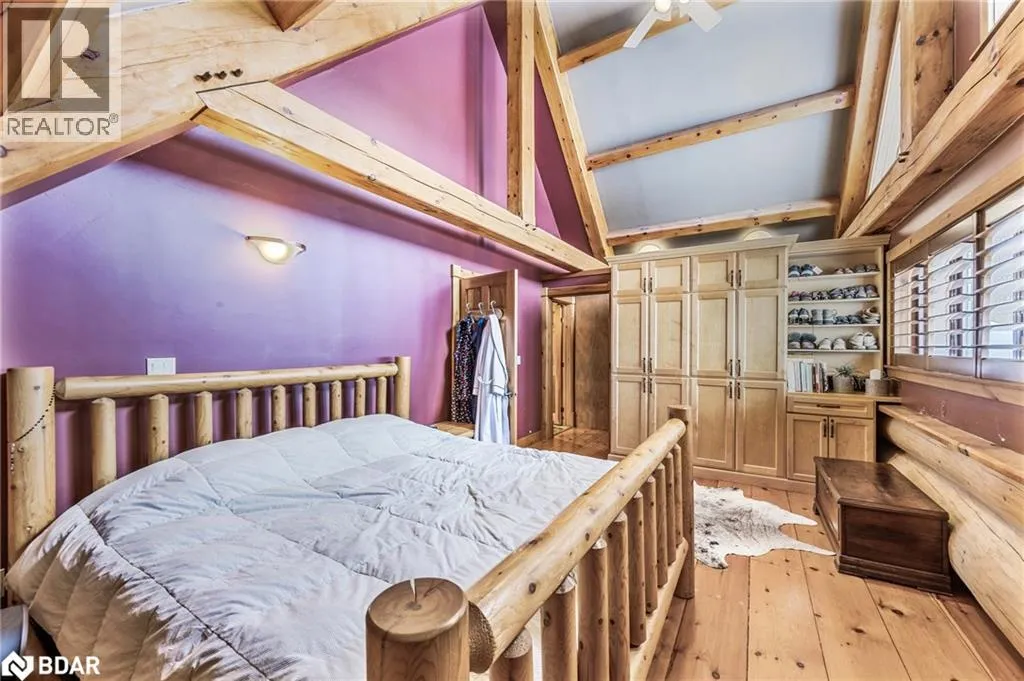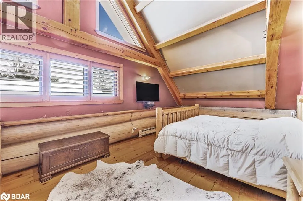 HORSESHOE VALLEY RD TO 3RD LINE N., LEFT ON HIGHLAND DR Welcome to 118 Highland Drive, Oro-Medonte. Discover the charm and craftsmanship of this stunning log home in the heart of Horseshoe Valley. Featured in the movie The Christmas Chronicles starring Kurt Russell, this home radiates warmth and comfort, complemented by award-winning landscaping and a breathtaking 3-tier pond a tranquil highlight of the property. Step inside to a spacious foyer with tile flooring which leads into a cozy yet expansive rec room with rich hardwood floors. This level also features a beautiful wet bar, a comfortable bedroom, and a 4-piece bathroom, ideal for entertaining or hosting guests.The open-concept main floor is designed for modern living. The kitchen dazzles with granite countertops, stainless steel appliances, and a breakfast bar, flowing effortlessly into the dining and living room. A walk-in pantry with a built-in freezer and second fridge provides exceptional storage, while a stylish powder room completes this level.The second floor offers two generously sized bedrooms, each with its own ensuite. The primary suite boasts a walkout to a private balcony overlooking the backyard and includes a convenient laundry area. A bright office space and soaring cathedral ceilings with wood beams enhance the airy ambiance of the home.The heated garage, complete with an entertainment room above, blends utility with style. Outdoor living is equally impressive, with multiple walkouts to covered porches, including a wrap-around porch and private balconiesperfect for soaking in the peaceful surroundings. You will love the cleanliness and efficiency of the water radiators and in-floor heating, ensuring consistent warmth and a clean, comfortable atmosphere throughout.Situated just one minute from Vetta Nordic Spa, five minutes from Horseshoe Valley Resort, and close to Craighurst amenities and major highways, this property offers a harmonious blend of natural beauty and unmatched convenience. (id:27476)