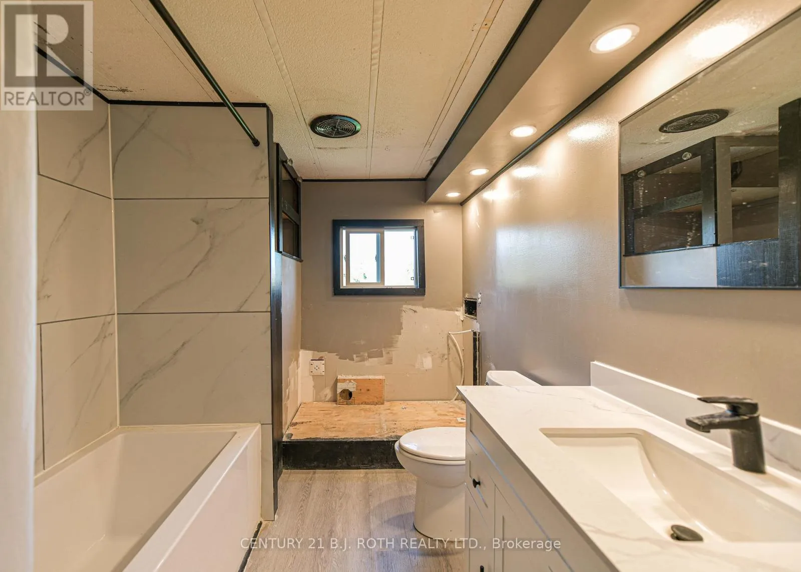 Cross Streets: Old Barrie Rd and Line 14. ** Directions: Old Barrie Rd to Oro Line 14N to 2nd Park Entrance/Claremont Cres to # 19. 5 Minutes to Orillia Costco/HUGE LOT /Leased Lot/Oro-Medonte/Orillia /Fergushill Estates/REAL Natural Gas Heat/2 Bed-1 Bath w Laundry/900 Sq Ft Home/Large Drive/Updated Bath(2024)Peaked Steel Roof(2021/Rear Shed- Shop 10 x 12/Monthly Land Fee Lease will be ($692.96) (Note some pictures are virtually altered & staged) Bathroom are actual pictures fully renovated in 2024 (id:27476)