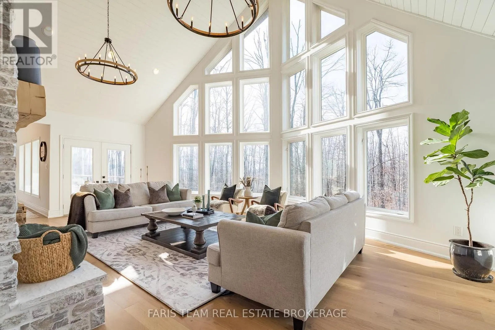 Oro-Medonte Ln 2/Bass Lake Sdrd W Top 5 Reasons You Will Love This Home: 1) Indulge in this rare estate lifestyle, situated on 24-acres in coveted Horseshoe Valley, boasting 913' of road frontage bordered with upscale black fencing, delivering a true countryside retreat with unobstructed views of rolling hills, breathtaking sunsets, and a sense of serenity that's hard to match 2) Follow the long private driveway to a stunning custom home set against a backdrop of mature hardwood forest, with a main residence showcasing exceptional craftsmanship and thoughtful design throughout, featuring a chef's kitchen with a walk-in pantry and spacious eating area, 9' ceilings, a finished walkout basement, a dramatic 22' vaulted great room, and a floor-to-ceiling stone fireplace, creating a warm yet refined atmosphere, alongside expansive windows drawing in the ever-changing beauty of the surrounding seasons 3) Discover the beautifully appointed guest residence providing full independence and comfort for an extended family, built with special approval to expand to nearly 1,200 square feet, it stands as a true secondary home, thoughtfully designed so a beloved family member can enjoy a space of their own in a setting that feels both connected and distinguished 4) Thoughtfully designed for both relaxation and recreation with a lounge by the heated saltwater pool framed by stone landscaping and breathtaking views, along with your own private trail system that connects seamlessly to the extensive network of trails in the adjoining Simcoe Forest, while the front portion of the land features a 2,000-tree plantation that enhances privacy and offers open areas with future potential for a hobby farm or custom outbuilding 5) Impeccably located just 5 minutes from Vetta Spa, Horseshoe Valley Resort, golf courses, and Hardwood Hills, with endless trail networks in Copeland and Simcoe Forest nearby, while also offering quick access to Highway 400 and Highway 11. 4,430 above grade sq.ft. plus a finished basement. (id:27476)