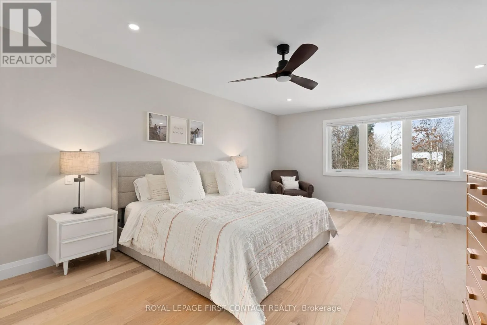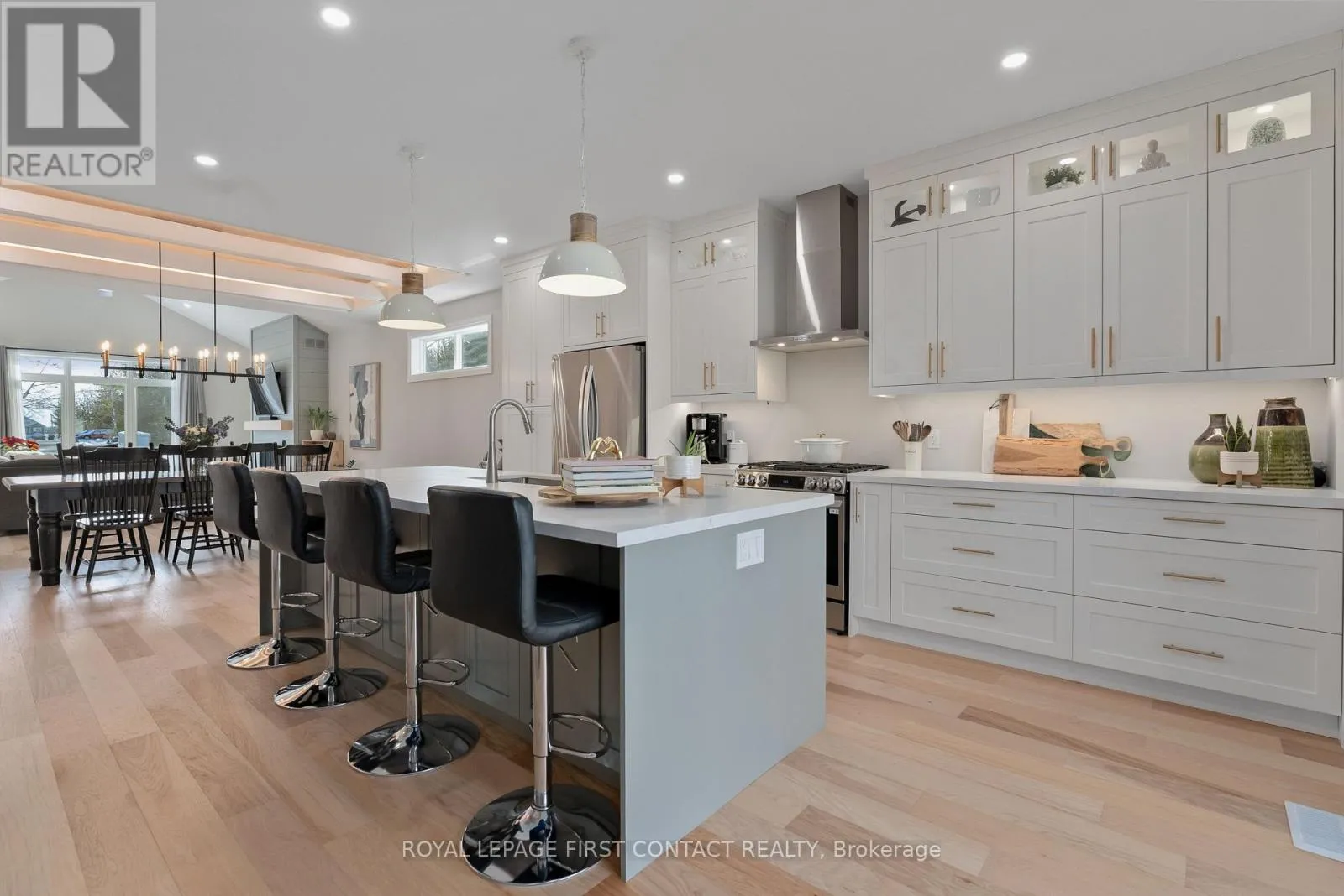 Cross Streets: Line 5 S to Lakeview Rd. ** Directions: Highway 11 or Ridge Rd West too Line 5 South, Right onto Lakeview Rd. Welcome to 18 Lakeview Road, an exceptional custom residence completed in 2024, where refined architecture and thoughtful craftsmanship define every detail. Privately positioned on a quiet, low-traffic street with nothing behind, this property offers a rare sense of calm and exclusivity-just steps from the lake with deeded private beach access. The interior is a masterclass in modern luxury, featuring expansive open-concept living spaces crowned by dramatic coffered ceilings with warm wood inlays and ambient lighting & soaring ceilings. Wide-plank hickory hrdwd floors flow throughout, a striking custom fireplace feature wall , seamlessly blending sophistication with comfort. At the heart of the home, the designer kitchen impresses with premium custom cabinetry, an oversized quartz island, and top-of-the-line appliances-perfectly tailored for both everyday living and elevated entertaining. The adjoining dining and living areas are beautifully connected, creating an inviting environment for gatherings both intimate and grand. The primary suite is a private retreat, offering generous proportions and a spa-inspired ensuite with heated shower floors & bench . Upper-level laundry adds to the home's effortless functionality. The lower level, with 8-foot ceilings and oversized windows, is already roughed-in for a bath and presents exceptional potential to create additional living. A heated tandem garage with dual access doors and hot and cold water taps speaks to the home's attention to practical luxury. Outdoors, the fully landscaped and fenced yard, paired with covered porches, completes this turnkey offering-crafted with precision and care, and finished to an uncompromising standard. Ideally located near scenic rail trails, close to schools, offering convenient highway access via the 5th Line overpass, with quick connectivity to Barrie, this residence is perfectly suited for discerning buyers seeking a low-maintenance luxury lifestyle in a tranquil lakeside setting. (id:27476)