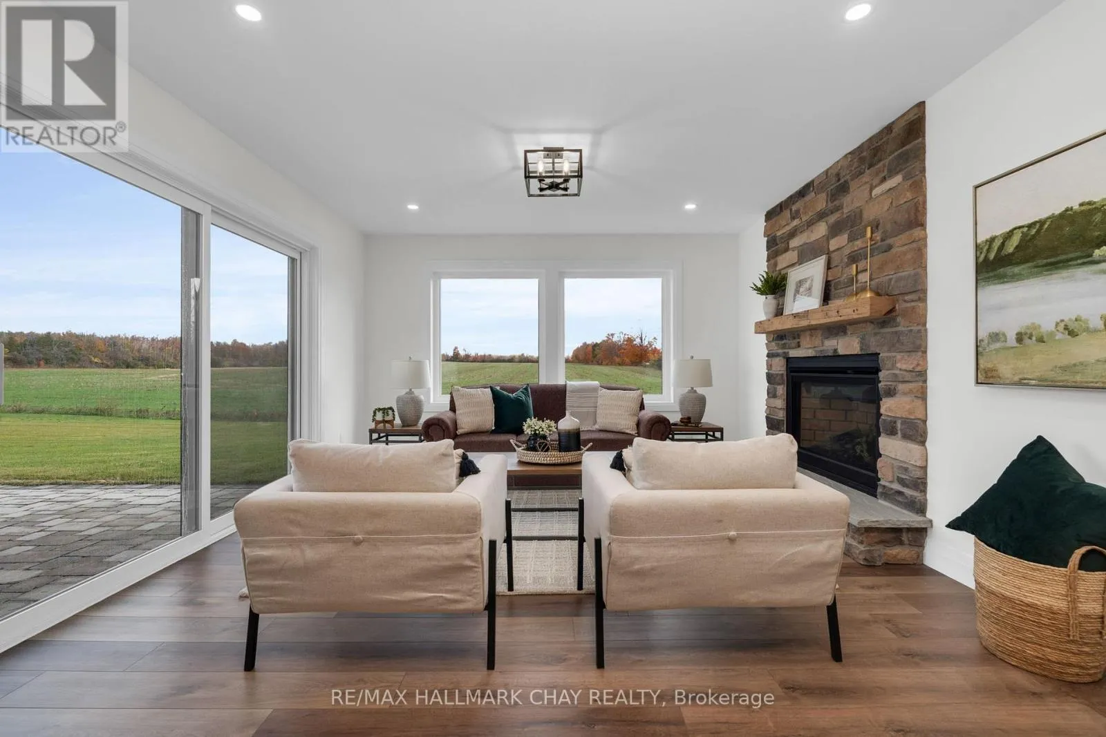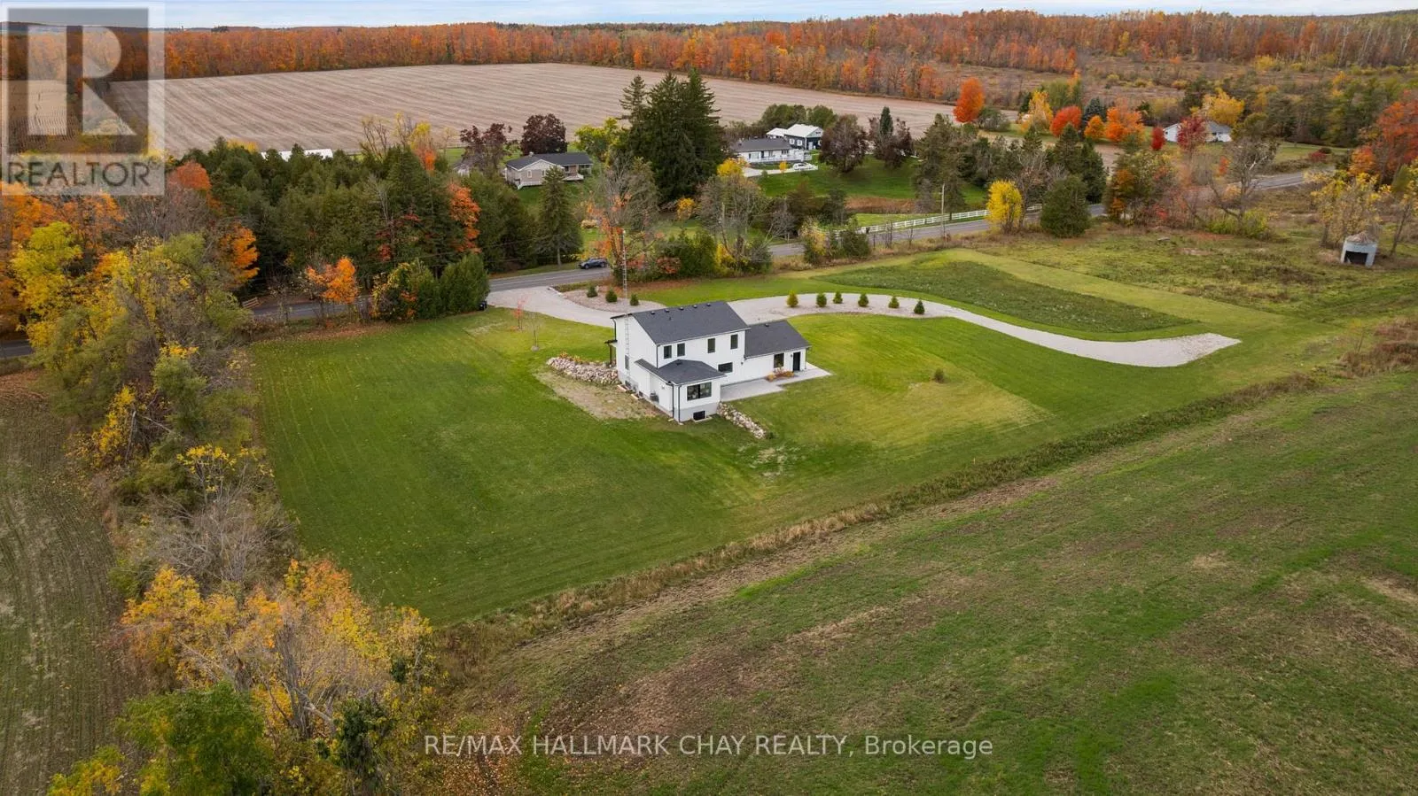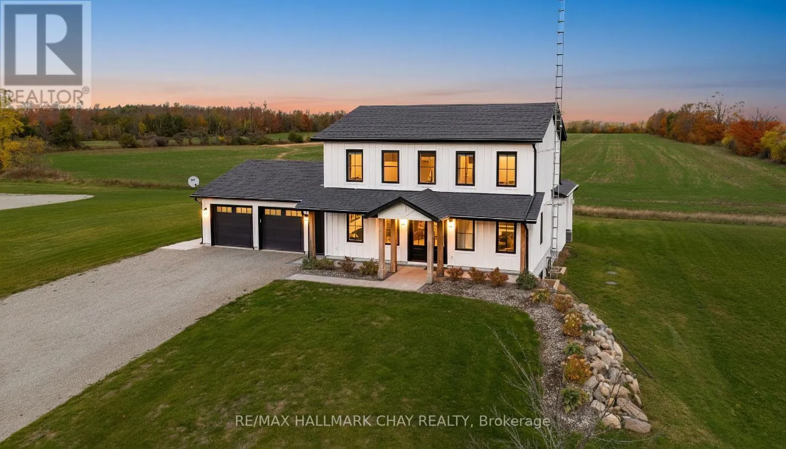 Cross Streets: 15/16 Sidereal & Line 3 N. ** Directions: Hwy 11 to Line 3 N. Nestled on 2 private acres, this stunning two-year-old custom-built modern farmhouse offers 2,800 sq. ft. of beautifully finished living space with 4+1 bedrooms. Step inside to soaring ceilings and expansive windows that flood the home with natural light and showcase breathtaking sunrises and sunsets. The chef's kitchen is a true showpiece, featuring a large island with wireless charging stations, gas range, quartz countertops, built-in wine cooler, panel dishwasher, and a charming built-in coffee bar. The open-concept living area boasts a cozy gas fireplace with a stone surround and flows effortlessly to the outdoor living space through oversized patio doors-perfect for entertaining or quiet evenings under the stars. Enjoy plenty of functional design in the mudroom and main-floor laundry, offering abundant storage and convenient access from the garage. A main-floor guest suite with a full 3-piece ensuite provides privacy and comfort for visitors. Upstairs, you'll find two primary bedrooms, each with their own private vanity rooms and custom closets, plus a third room ideal for a home office or additional bedroom. The fully finished lower level, with 9-ft ceilings, is perfectly designed for multi-generational living. It features a spacious bonus room, striking custom bar with reclaimed barn board, an additional bedroom, bathroom, laundry hookups and a separate private entrance from the garage. Only two years old, this exceptional custom-built home combines modern luxury, functionality, and the quite peace of country living with quick access to Hwy 11 for convenience. This is more than a property, this is a forever HOME. This home deserves to be seen. (id:27476)