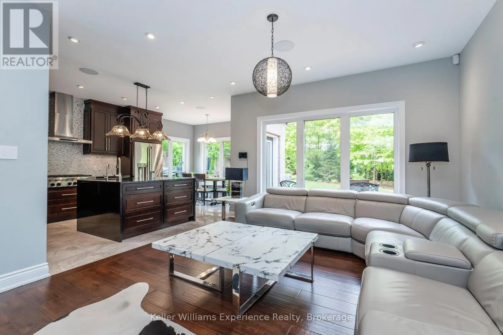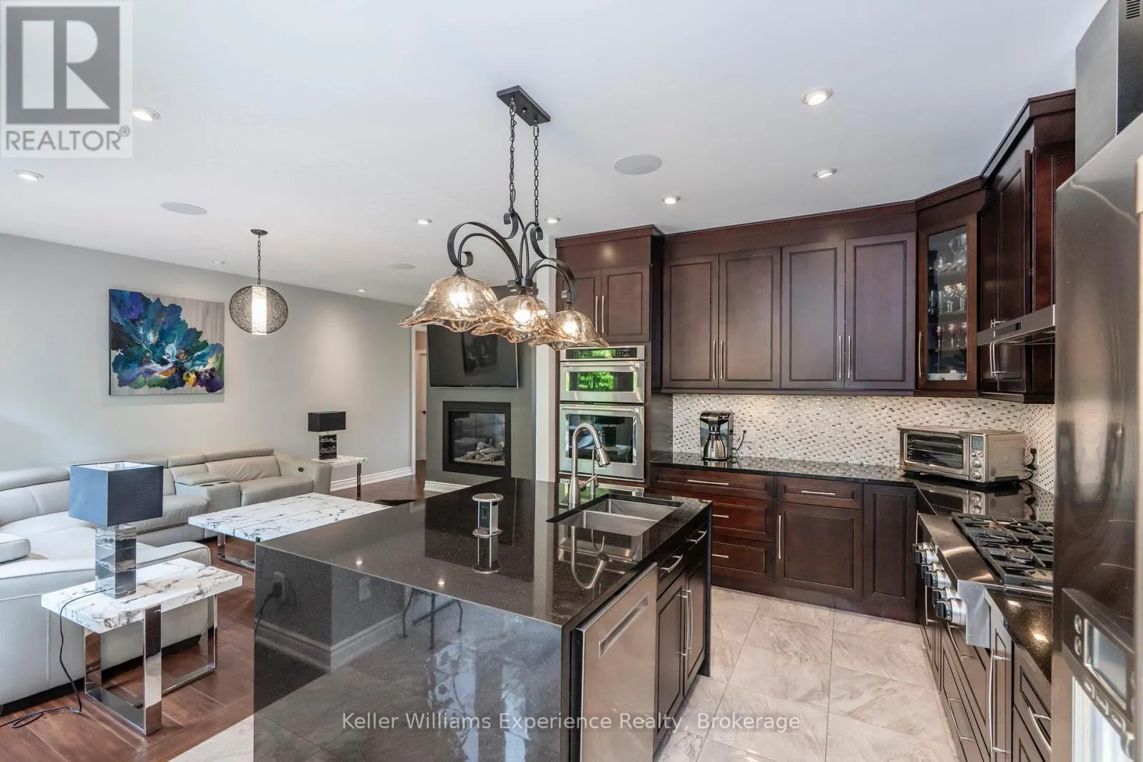 Cross Streets: Diamond Valley Dr & Topaz Crt. ** Directions: Horseshoe Valley Rd W to Sixth Line N to Diamond Valley Dr to Topaz Court. Step into refined living with this beautifully appointed executive home, set on a generous half-acre lot. Designed with both style and function in mind, the showpiece kitchen anchors the main living space with elegant granite countertops, a striking waterfall island, and a stainless steel gas cooktop perfect for hosting or day-to-day living. Exceptional peace of mind comes standard thanks to a 23kW Generac generator, hard-wired security and camera system, and a long list of comfort upgrades including central vacuum, Lutron smart lighting, an enhanced HRV system with humidifier, and a comprehensive water treatment system featuring softening, purification, and remineralization. The fully finished basement is an entertainer's retreat, offering a rich cherry wet bar, double-sided wood-burning fireplace, ambient crown lighting, built-in media center with a 65" Sony TV, and an impressive 10-zone integrated speaker system. Outside, unwind in your own backyard escape with a spacious deck, dual remote-controlled awnings, natural gas BBQ hookup, RainBird irrigation, and a powered garden shed. A heated garage with durable epoxy floors adds both practicality and polish. Meticulously cared for and loaded with premium features, this home delivers standout quality inside and out-ready to impress from the moment you arrive. (id:27476)