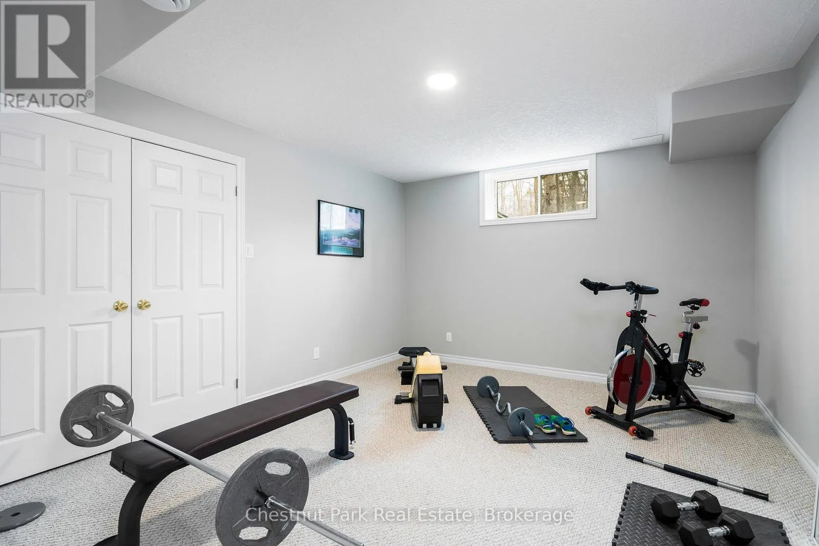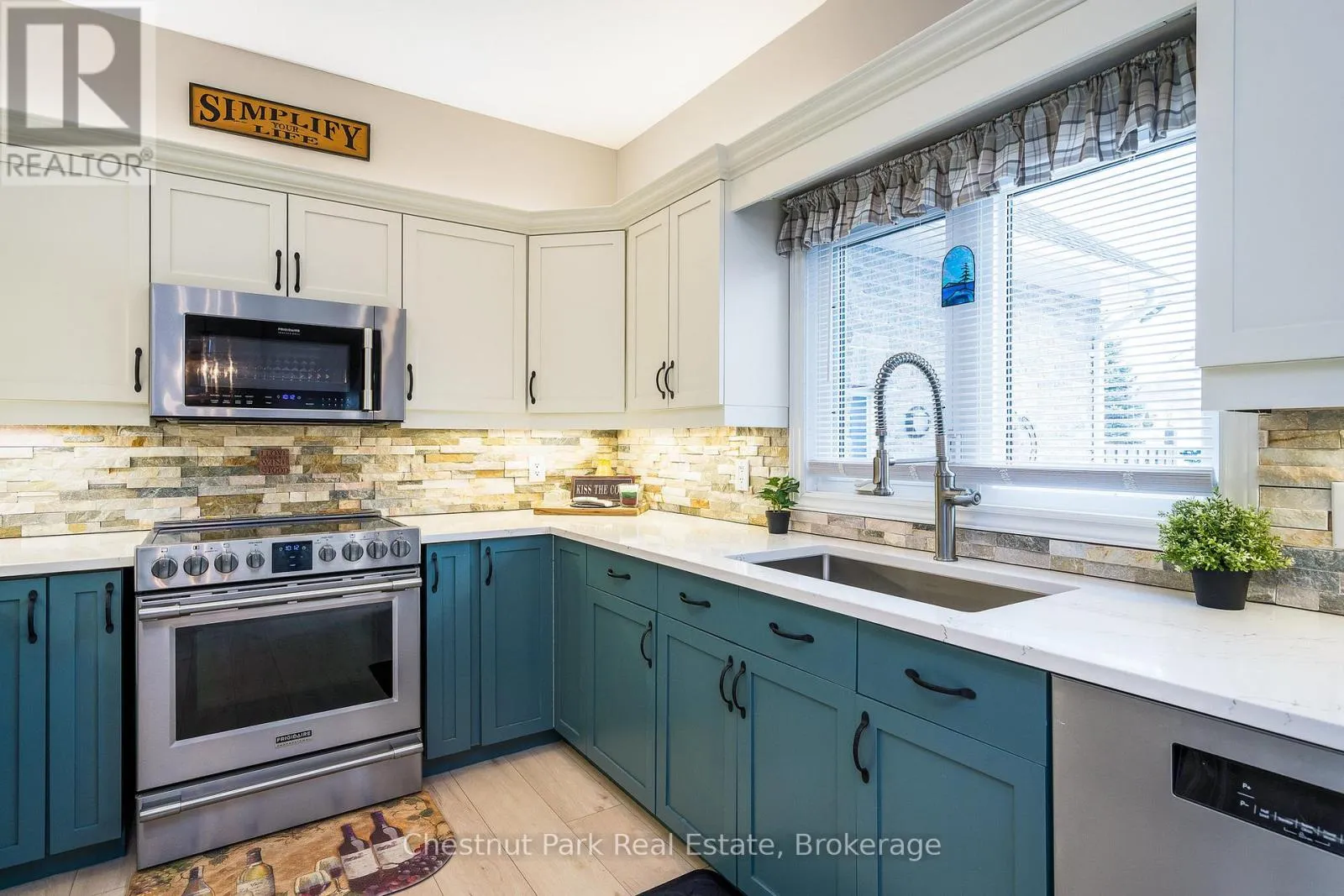 Cross Streets: Bachly Ave. ** Directions: Hwy 400 ext to Mt St Louis Rd to Line 7 N. Tucked away on a picturesque, tree-lined half-acre lot in the desirable community of Moonstone, this stunningly renovated bungalow offers the perfect blend of modern elegance and country charm. With substantial renovations and upgrades since 2021, this move-in-ready home is an absolute showpiece. The main floor boasts soaring vaulted ceilings, an open-concept layout flooded with natural light, and in-floor radiant heating throughout for year-round comfort. The completely renovated kitchen is a chef's dream, seamlessly connecting to the dining area, where a beautiful gas fireplace sets the perfect ambiance. Step outside to the expansive deck with a hot tub and fully fenced yard, ideal for entertaining or unwinding under the stars. This home offers three spacious bedrooms on the main level, as well as a home office--an ideal setup for remote work. Additional updates include renovated bathrooms (main floor 2024, primary ensuite 2025), a new roof (2024), and a new heat pump (2025). The fully finished lower level is built for enjoyment, featuring a Rec Room, Bar, Bedroom, 3 pc. bathroom, with a walkout that offers potential for a separate basement suite entrance. Completing the home is an oversized, insulated three-car garage with in-floor radiant heating, perfect for extra storage or workshop space. Located just five minutes from St. Louis Moonstone Ski Hills, this incredible home offers four-season recreation at your doorstep. Don't miss this rare opportunity to own a beautifully designed retreat in one of the area's most sought-after locations! (id:27476)
