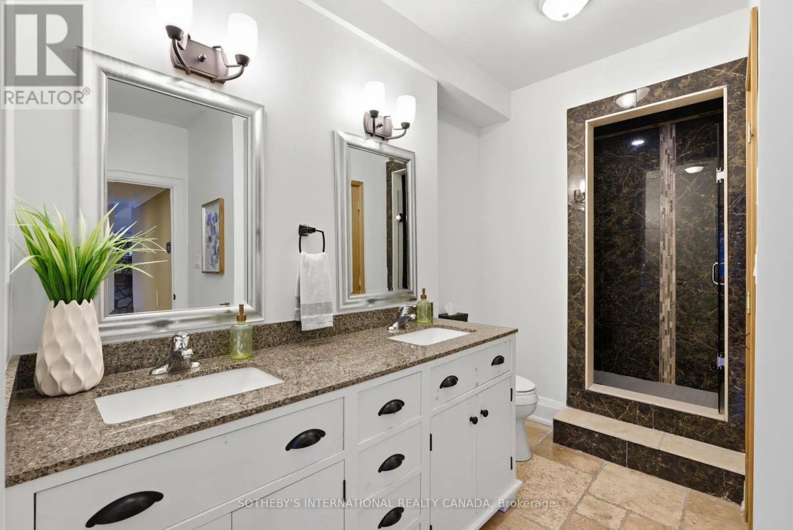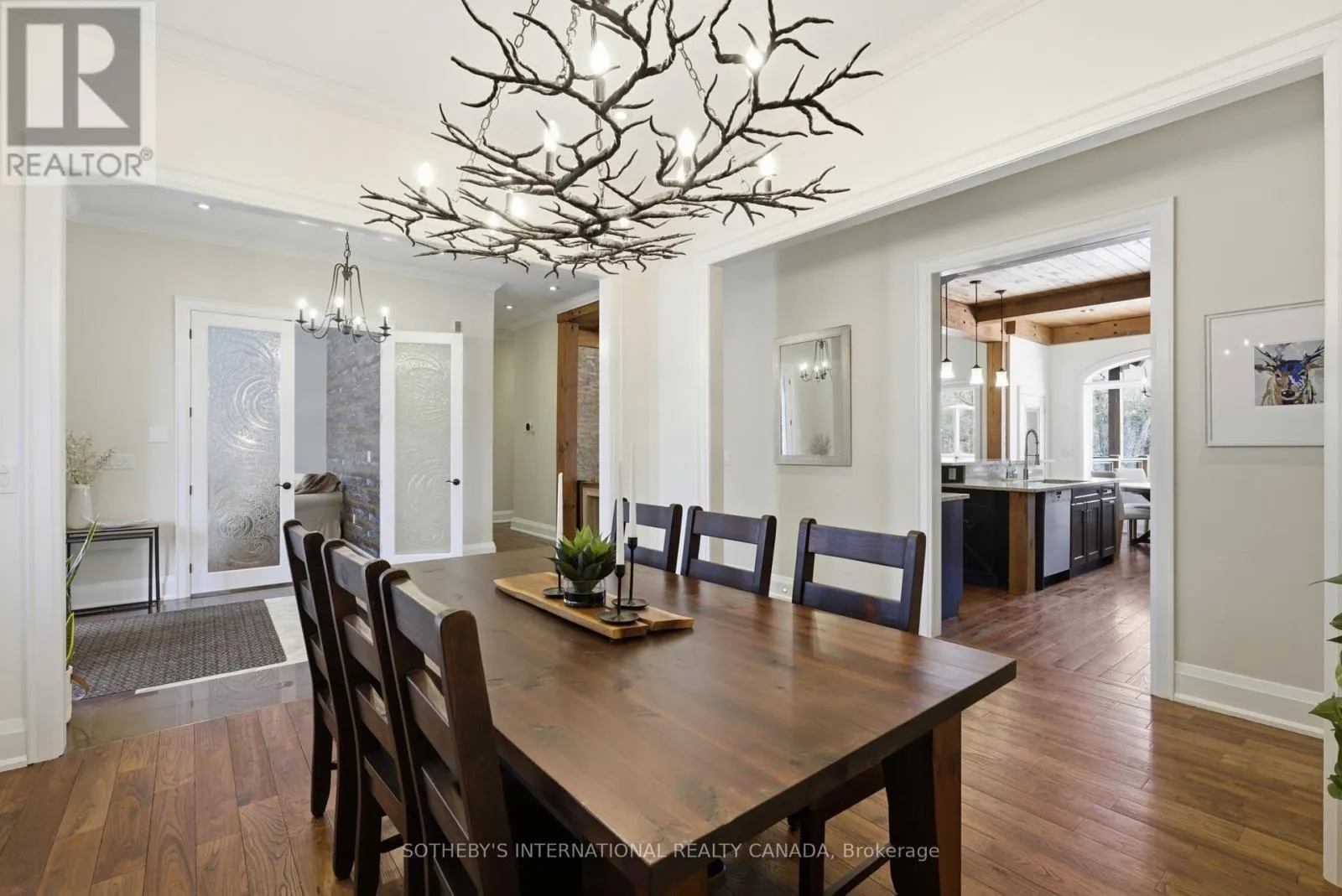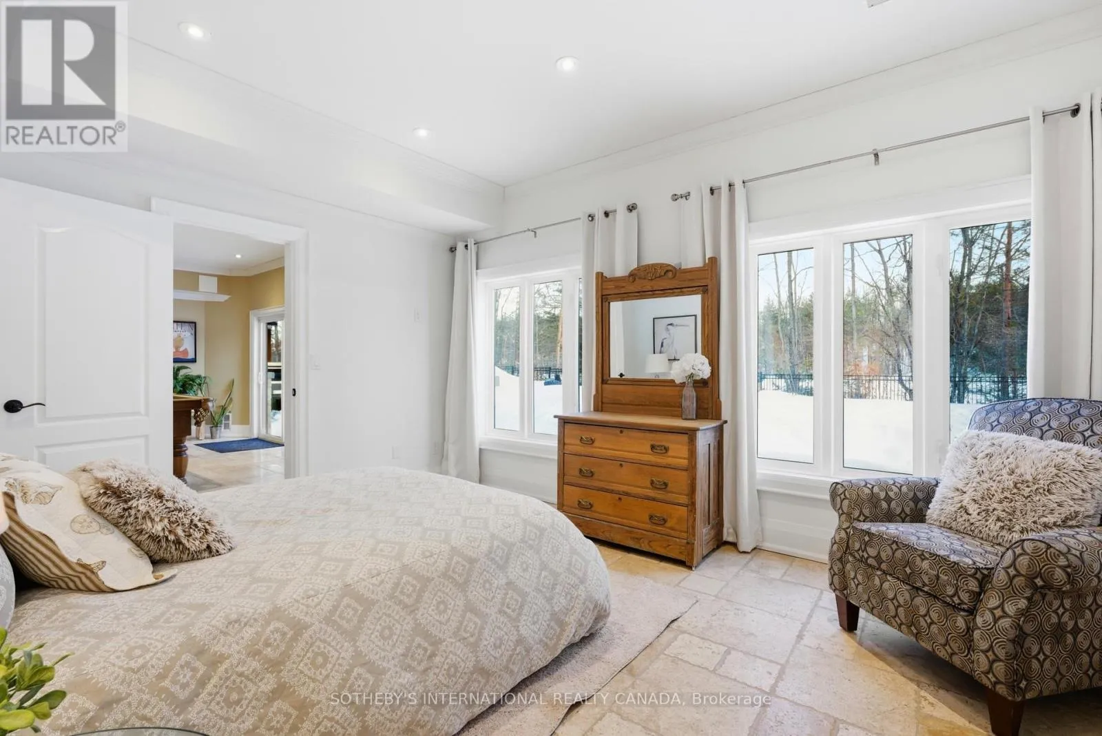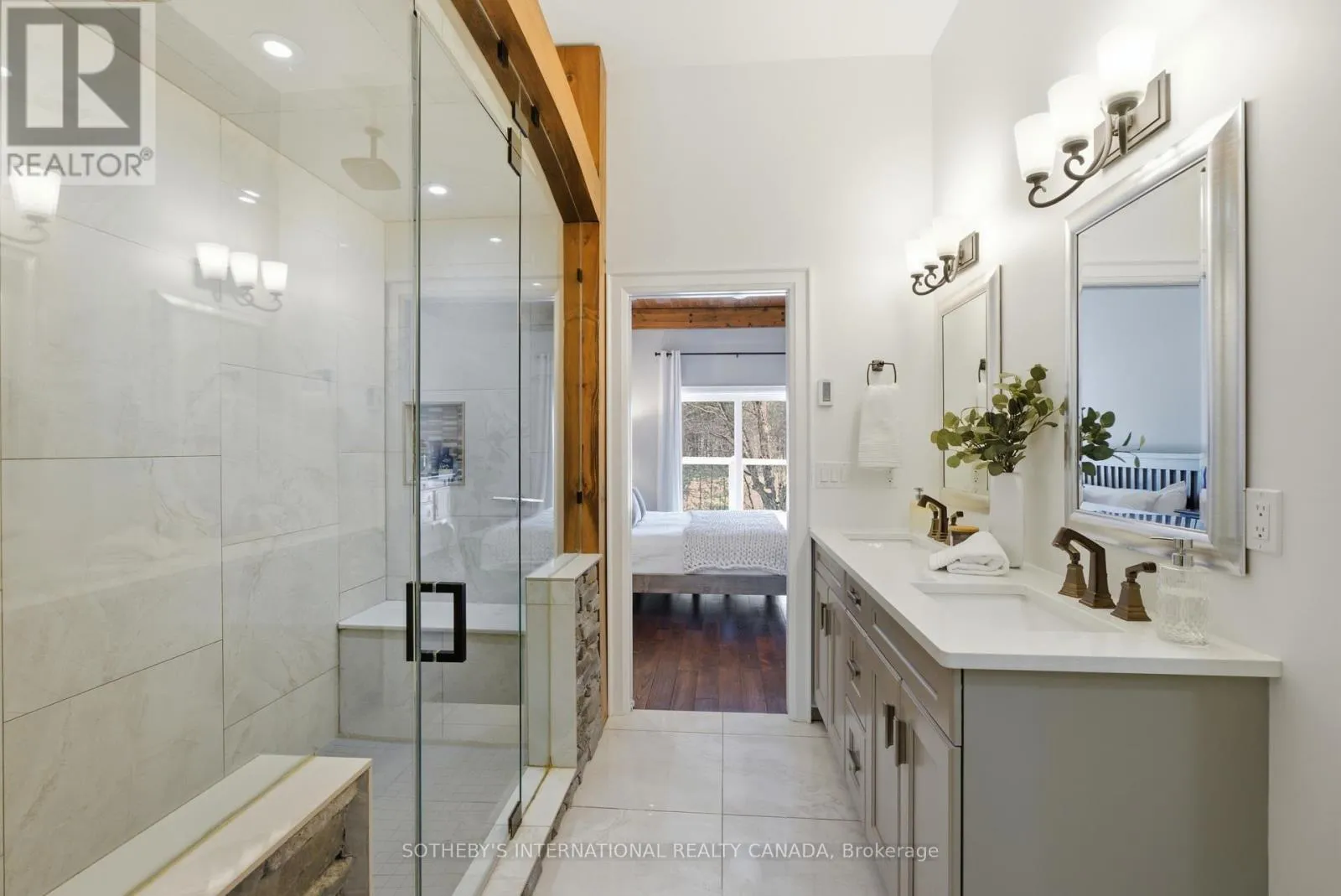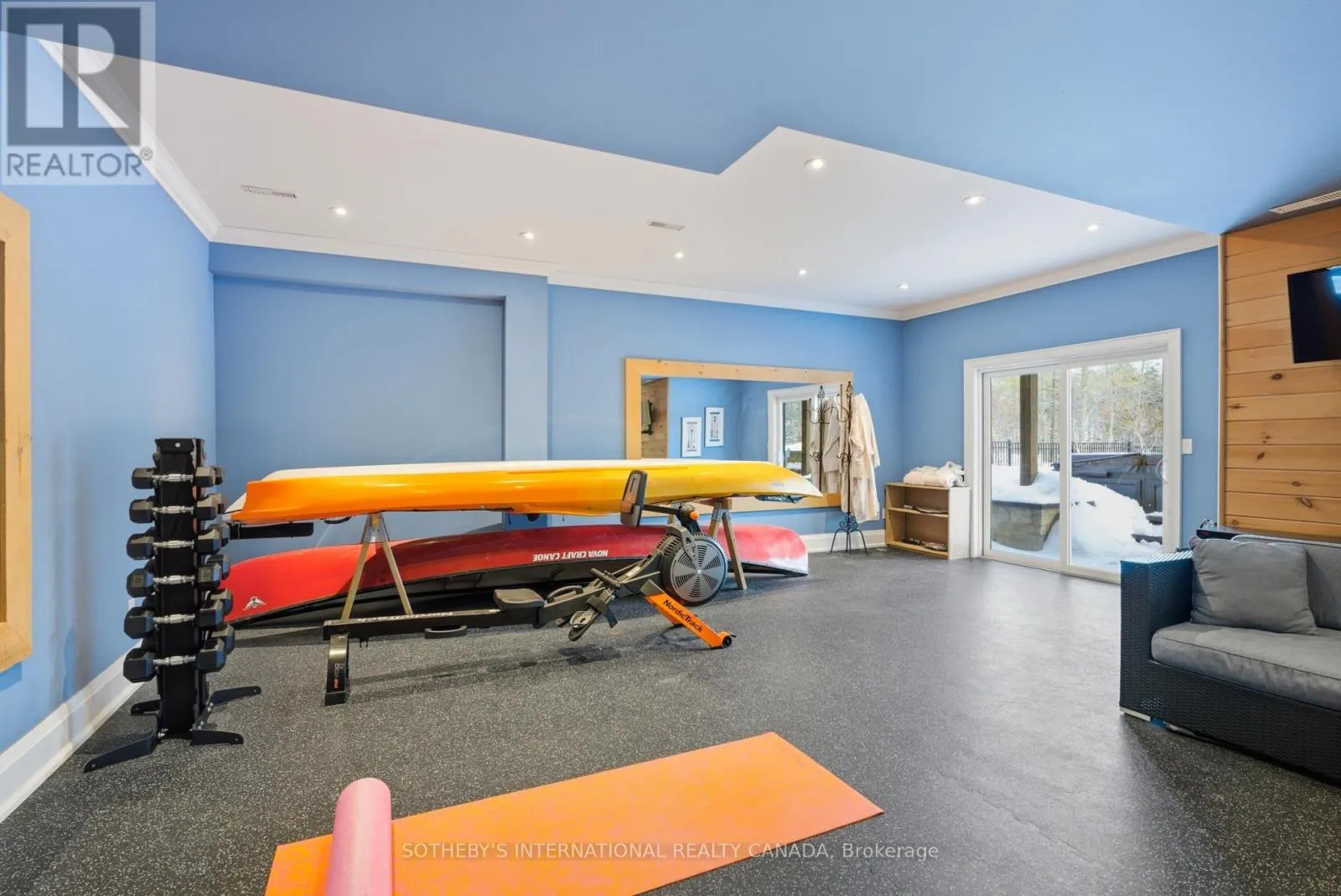 Cross Streets: Nordic Trail and Alpine. ** Directions: Hwy 400 to Horseshoe Valley Rd. towards Craighurst. Right on Line 4, Right on Highland, Left on Alpine, Right on Nordic Trail, Left on Ridgewood. Nestled in the prestigious Horseshoe Valley community, just steps from the resort, trails, and green space, this custom-built bungalow offers privacy, luxury, and stunning south-east views over nature. Situated on a quiet cul-de-sac, the home welcomes you with a grand covered porch entrance and an impressive 14 ft timber arch. Large windows throughout fill the home with natural light. Entertain effortlessly in the great room with a gas fireplace or in the gourmet kitchen featuring quartz counters, backsplash, premium appliances, and a walk-in pantry. The space opens to a large 400 sq.ft. covered deck with expansive views. A built-in surround sound system extends throughout the home, creating an immersive atmosphere for entertaining. The luxury primary suite showcases timber ceilings and a private walk-out to the back porch, along with a spa-like ensuite that includes a steam shower and walk-in closet. Two additional bedrooms, an office, and laundry complete the main level, where solid bamboo hardwood flooring runs throughout. The walk-out basement is a true retreat, featuring a wet bar, theatre room, gym/leisure area, sauna, heated floors, and a bedroom with its own ensuite bathroom. All bathroom floors in the home are heated for added comfort, and the remainder of the home features 10 ft ceilings, enhancing the sense of space and openness. Outdoor living shines with beautiful, professionally landscaped grounds featuring a stone patio, Arctic Spa hot tub, sprinkler system, and fire pit area - perfect for relaxing or hosting under the stars. The property backs onto recreational trails and forest, offering exceptional privacy and direct access to nature. Additional highlights include a heated driveway, a heated three-car garage, and a full Generac backup generator. With unmatched privacy, scenic views, and proximity to local amenities, schools, hospital, and major highways, this property represents a rare opportunity in a highly sought-after community. (id:27476)