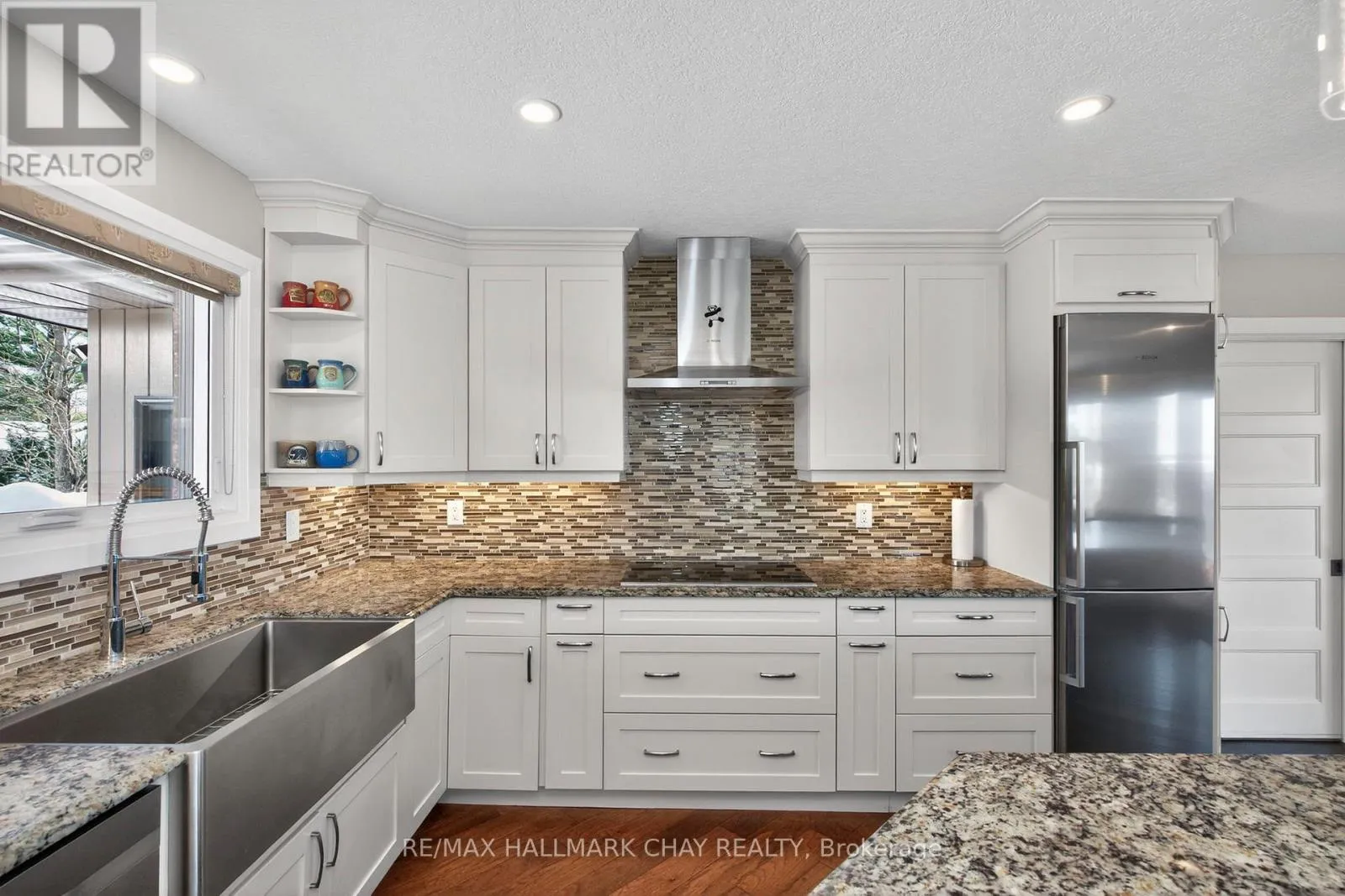Cross Streets: Horseshoe Valley Rd W & 4th line. ** Directions: Horseshoe Valley Rd W to 4th line to Highland Drive. Welcome to 16 Highland Drive in the sought-after Horseshoe Highlands of Oro-Medonte. This is a rare opportunity on the Highland Drive ridge, one of just nine properties with clear, panoramic views across Horseshoe Valley and Georgian Bay to Meaford-approximately 80 kilometres. Only one other of these view properties has come to market in the past five years. Fully renovated to showcase the spectacular setting, this exceptional walkout bungalow offers seamless open-concept living designed for both everyday comfort and entertaining. The home features four bedrooms and three full bathrooms, with a bright, airy layout throughout. The main level is finished with rich hardwood floors and includes a dedicated, spacious home office-ideal for remote work in a peaceful setting. The updated kitchen is the heart of the home, complete with granite countertops, a large island for gathering, and generous prep space for hosting family and friends. The main floor principal suite enjoys sweeping views, an exceptionally spacious ensuite, and a large walk-in closet. The lower level is as light-filled as the main floor, thanks to glass walkout doors leading to the rear yard. Here you'll find additional bedrooms, a full bathroom with tub and shower, and a small service area that adds flexibility for entertaining or multi-generational living. Set in the heart of Horseshoe Valley, the home offers convenient access to outdoor recreation, including skiing, hiking, biking trails, golf, and the local resort and spa. The community is approximately 15 minutes to Barrie and about one hour to Toronto Pearson International Airport. Nearby amenities include two ski areas within two kilometers, 43 kilometers of cross-country and mountain bike trails, and a new elementary school and community centre just one kilometer away. Opportunities like this are few and far between on this coveted ridge. Experience comfort, space, and exceptional views in one remarkable home. (id:27476)