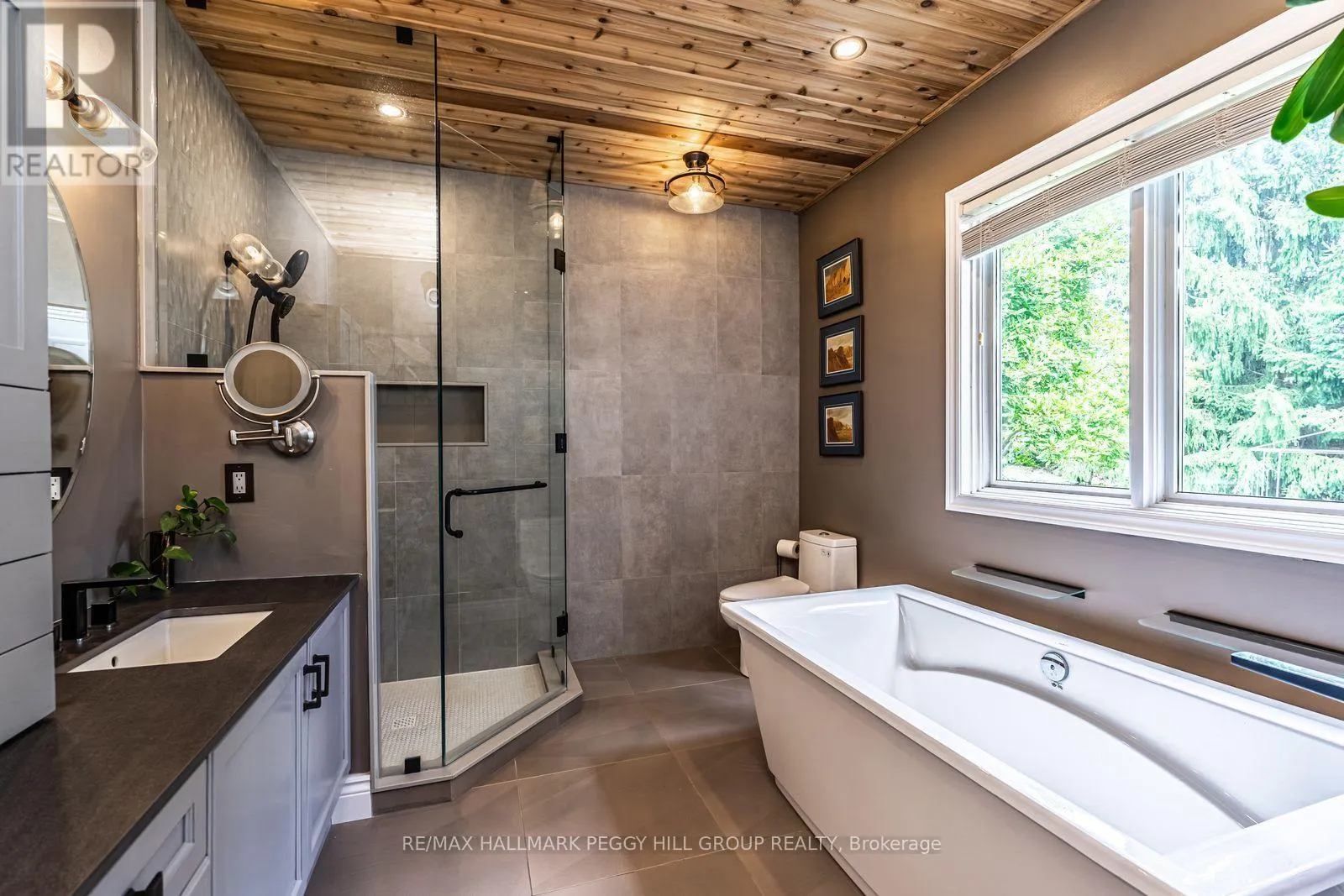 Cross Streets: 4 Line N/Alpine Way. ** Directions: Horseshoe Valley Rd W/4 Line N/Alpine Way/Bunker Pl. DISTINGUISHED HORSESHOE HIGHLANDS ESTATE ON A SERENE CUL-DE-SAC SETTING! Nestled on a quiet cul-de-sac in the prestigious Horseshoe Highlands, this elegant home offers over 3,650 finished sq ft of timeless style and thoughtful design, backing onto a former golf course surrounded by mature trees and manicured gardens. Sunlight fills every corner of the open-concept layout, where large windows, rounded corners, and refined lighting create an atmosphere of understated luxury. The bright kitchen features wood cabinetry, stainless steel appliances, a gas cooktop, a breakfast bar, and a breakfast area overlooking the yard. A formal dining room with soaring ceilings and dramatic arched windows creates a stunning backdrop for elegant gatherings, while the sunken family room with a tray ceiling and gas fireplace, and the living room with a wood-burning fireplace and wet bar, offer warm and inviting spaces to unwind. The primary suite feels like a private retreat with dual walk-in closets, a five-piece ensuite featuring a dual-sink vanity, a glass-walled shower, a soaker tub, and a walkout to its own secluded deck through double garden doors. Two additional bedrooms share a stylish three-piece bath, while a convenient main-floor laundry adds everyday ease. The partially finished lower level offers a generous recreation room, office, wine cellar, and three-piece bath, providing versatility for any lifestyle. Outdoors, a fully fenced yard with two decks, including one featuring dual pergolas, is framed by lush landscaping, vibrant gardens, and vegetable beds. A double-car garage with inside entry and driveway parking for up to ten vehicles completes this exceptional property. Perfectly positioned within minutes of the new elementary school, community centre, medical clinic, park, and tennis courts, and under 20 minutes from Barrie's RVH and Georgian College, with year-round recreation close at hand, including skiing, golf, hiking, and Vetta Nordic Spa. (id:27476)