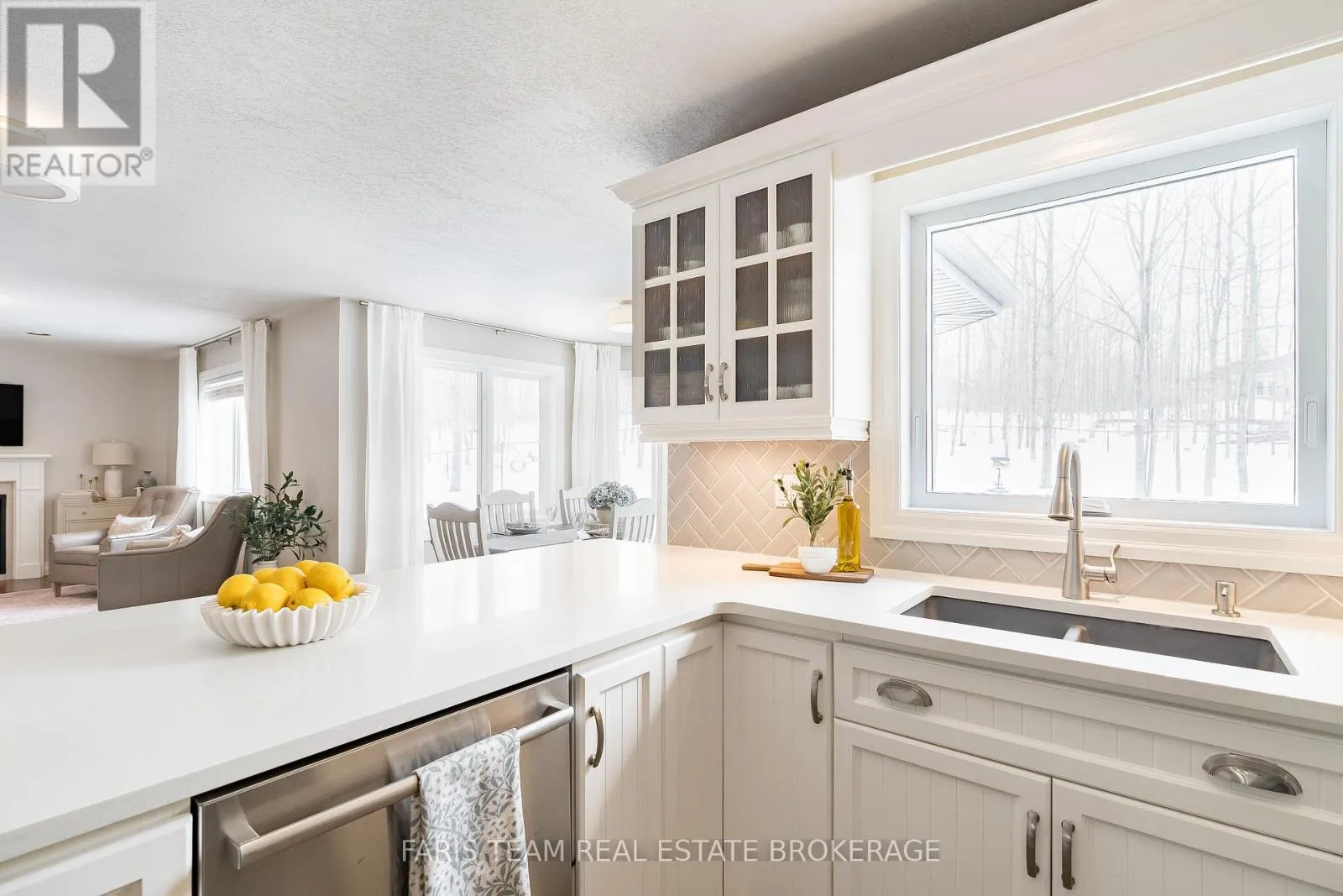 Bidwell Rd/Pineview Dr Top 5 Reasons You Will Love This Home: 1) Spacious raised bungalow situated on just over 1-acre in the desirable Simcoe Estates community, this property offers privacy, mature trees, and a fully fenced backyard, complete with professionally landscaped grounds featuring recent sod, a sprinkler system, hardscape walkways, custom landscape lighting, raised garden beds, and a custom firepit area with built-in seating, plus a large composite Deckorators Voyage Tundra deck with a gazebo creating the perfect outdoor entertaining space, along with a 3-car garage and garden shed for storage 2) The home offers a bright, open-concept layout, with a kitchen featuring quartz countertops, white cabinetry with pull-out drawers, updated stainless steel appliances, a tile backsplash, and a large eat-in area with a walkout to the deck, flowing into the family room with a gas fireplace, while hardwood flooring, crown moulding, and large windows add warmth throughout 3) Spacious primary bedroom delivering a relaxing retreat with a walk-in closet and private access to the deck, while the renovated spa-like ensuite features heated tile flooring, a custom glass shower with European fixtures and rain shower, dual vanity with custom organizers and a quartz countertop, and built-in cabinetry 4) The layout includes three main level bedrooms, with two additional bedrooms in the finished basement, which serves as a living suite featuring a recreation room, exercise room, a full bath, and wool carpet, ideal for guests or a semi-private space 5) Practical upgrades and an excellent location complete the package, including newer shingles, 200-amp service, a Generac generator, a high-efficiency dual-stage furnace, replaced windows including triple-pane at the front, new insulated garage doors, a triple-insulated garage, and additional parking, all near Highway 400, Craighurst amenities, trails, Horseshoe Ski Resort, and Vetta Spa. 1,895 above grade sq.ft. plus a finished basement. (id:27476)