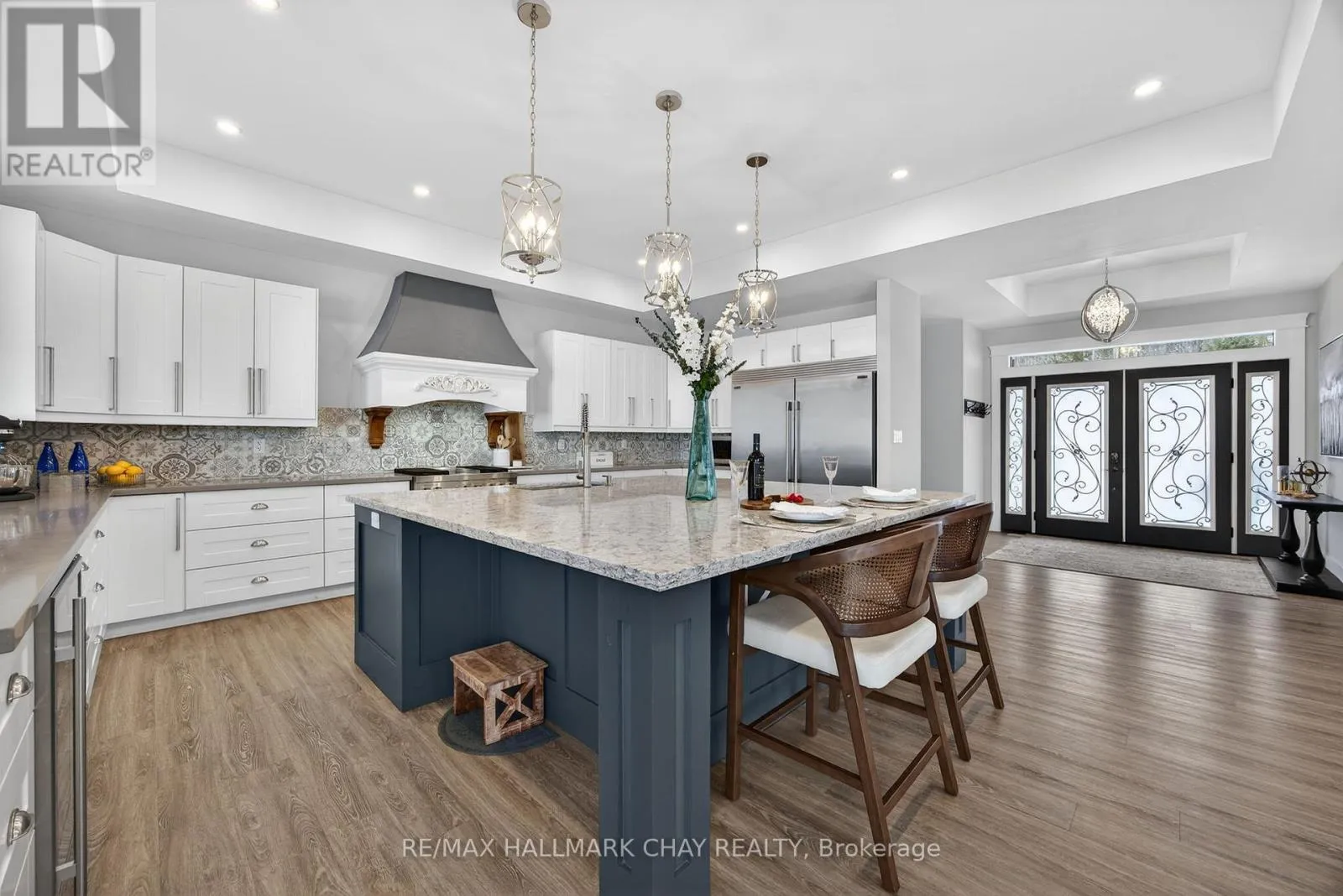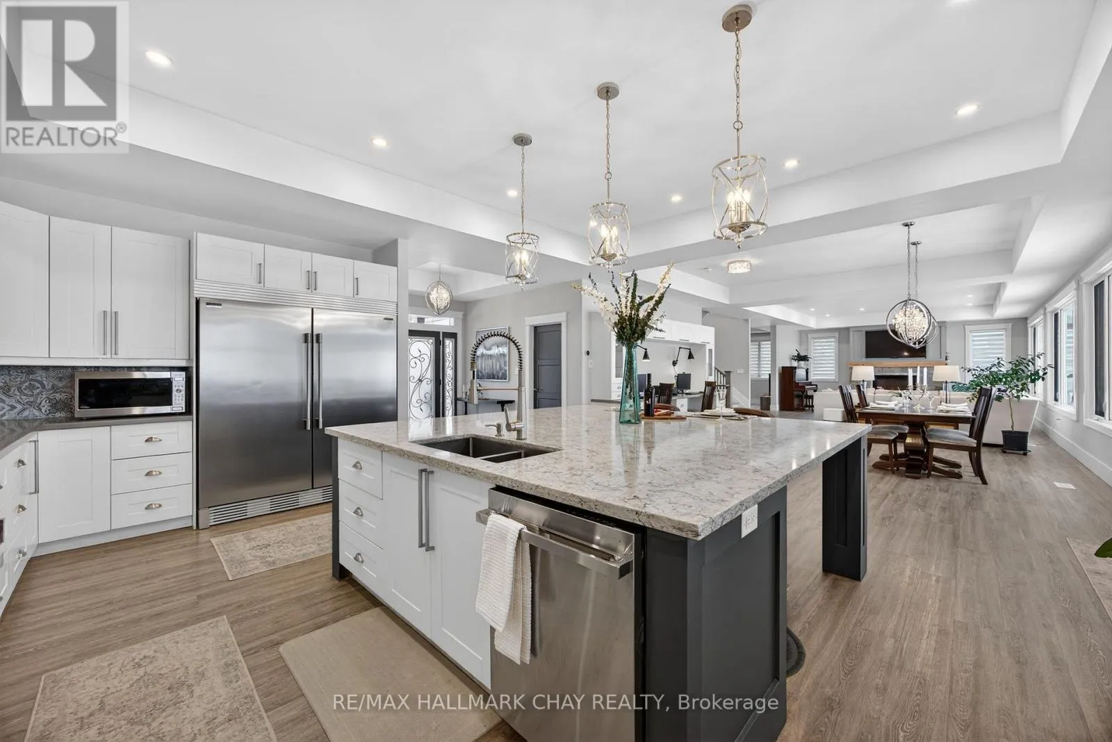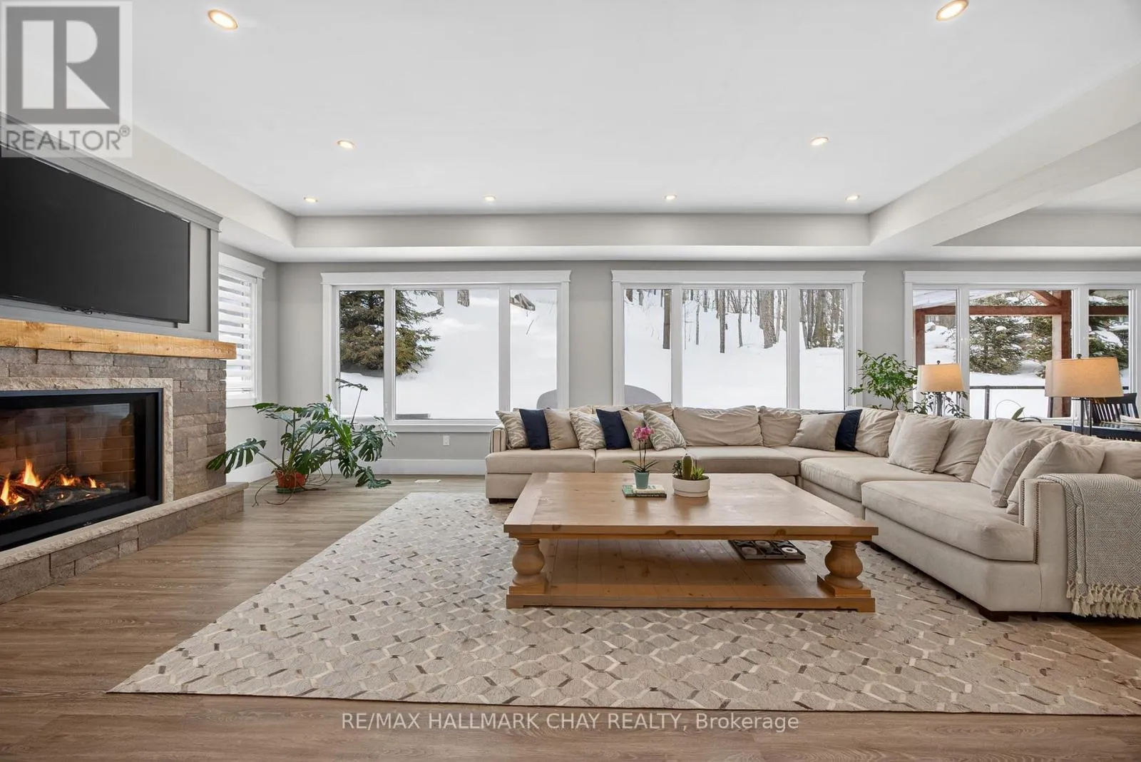 Cross Streets: Horseshoe Valley Rd/Pine Ridge. ** Directions: Horseshoe Valley Rd W to Pine Ridge Trail. Home on the Left (East). 17 Pine Ridge Trail offers luxury estate living in the heart of Horseshoe Valley, set on a private maple-treed lot backing onto forest on a quiet dead-end street. Step inside and you'll immediately appreciate the bright, open-concept design with high ceilings, pot lighting, and oversized rear windows that bring the outdoors in. The chef-inspired kitchen is truly the heart of the home, featuring a massive centre island with stone countertops, oversized double stainless fridge, gas range, dishwasher, bar fridge, and range hood-perfect for everyday living and entertaining. Between the kitchen and living room, you'll love the dedicated dining area with custom built-in cabinetry, this area is ideal for family meals, homework space, or a functional work-from-home setup, with walkout to the timber-framed covered porch complete with multiple gas lines for year-round outdoor enjoyment. The inviting living room is anchored by a stunning gas fireplace and views of the private backyard. Also on the main level is a versatile office, playroom, or potential additional bedroom, along with a 2-piece bath and oversized mudroom. The triple car garage offers two convenient interior access points-one into the mudroom and another directly to the basement stairway-providing exceptional everyday functionality. Upstairs features four spacious bedrooms including a primary suite with vaulted ceilings, walk-in closet with direct access to the laundry room, and a spa-like 5-piece ensuite with soaker tub, separate shower, and double sinks. A guest bedroom includes its own 4-piece ensuite, while bedrooms two and three share a semi 5 piece ensuite. Located minutes to Horseshoe Resort, Vettä Nordic Spa, trails, the new school, and recreation centre, you'll enjoy privacy, comfort, and true four-season living. Property has available - Residential Building / Apartment Dwelling (Finished Basement) Permit. (id:27476)