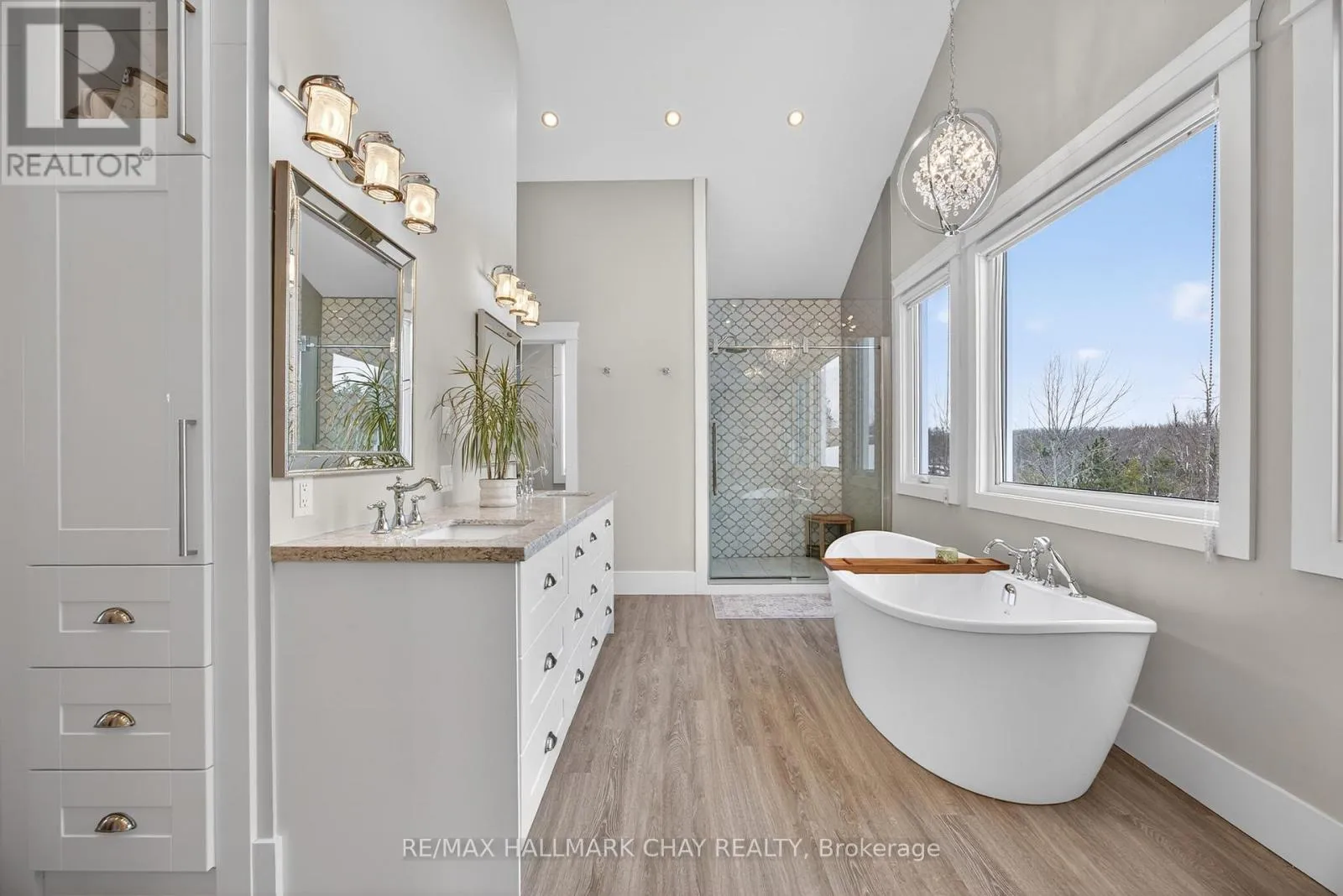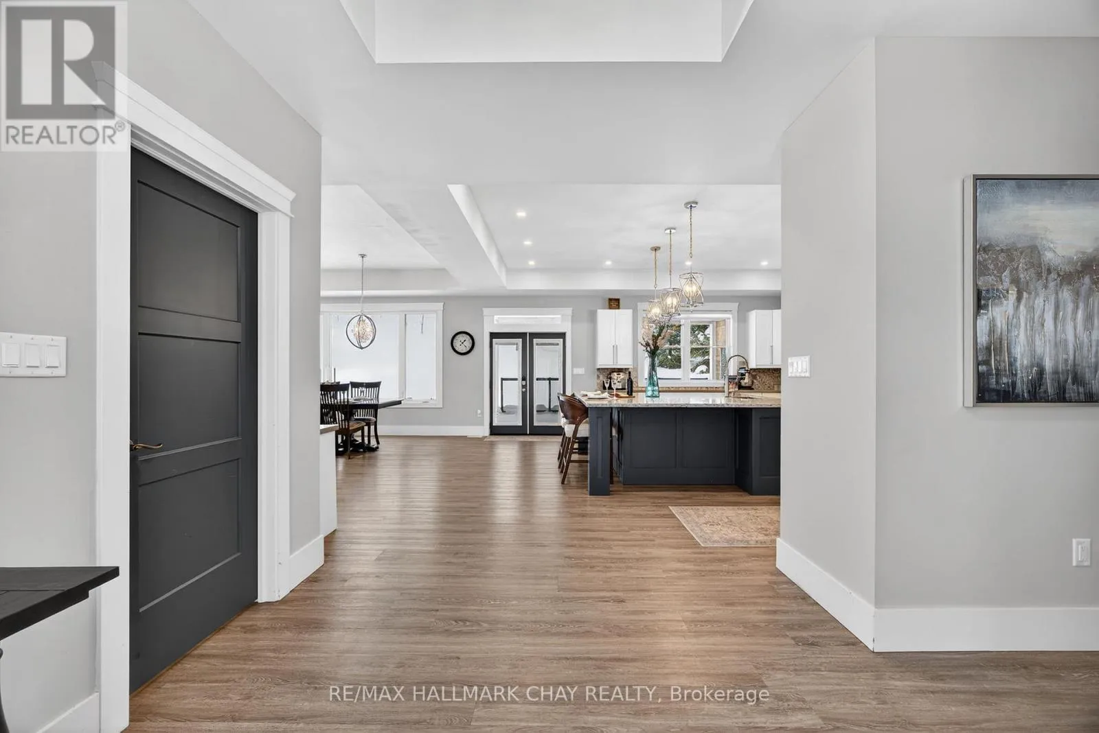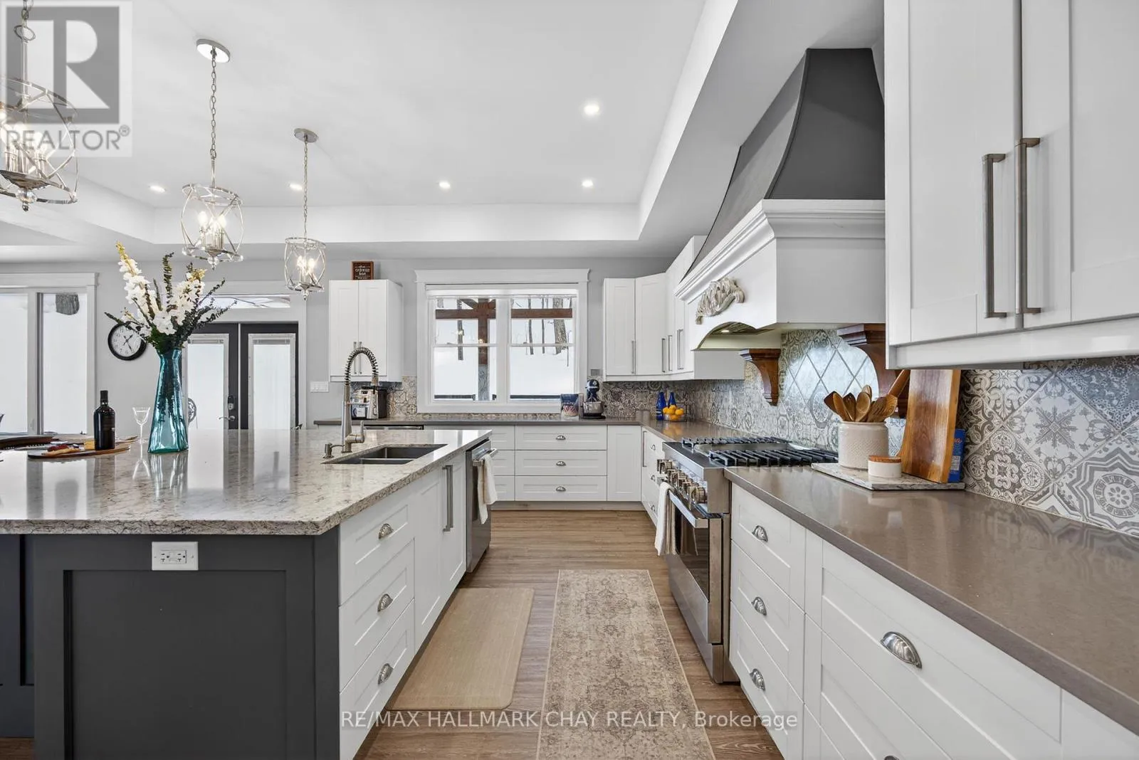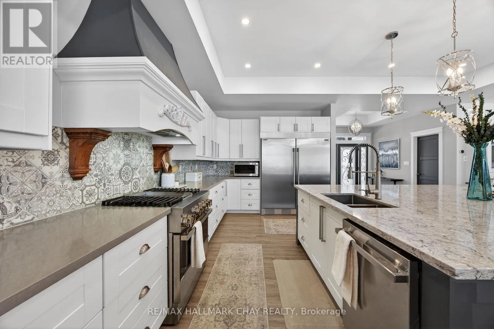 Cross Streets: Horseshoe Valley Rd/Pine Ridge. ** Directions: Horseshoe Valley Rd W to Pine Ridge Trail. Home on the Left (East). 17 Pine Ridge Trail offers luxury estate living in the heart of Horseshoe Valley, set on a private maple-treed lot backing onto forest on a quiet dead-end street. Step inside and you'll immediately appreciate the bright, open-concept design with high ceilings, pot lighting, and oversized rear windows that bring the outdoors in. The chef-inspired kitchen is truly the heart of the home, featuring a massive centre island with stone countertops, oversized double stainless fridge, gas range, dishwasher, bar fridge, and range hood-perfect for everyday living and entertaining. Between the kitchen and living room, you'll love the dedicated dining area with custom built-in cabinetry, this area is ideal for family meals, homework space, or a functional work-from-home setup, with walkout to the timber-framed covered porch complete with multiple gas lines for year-round outdoor enjoyment. The inviting living room is anchored by a stunning gas fireplace and views of the private backyard. Also on the main level is a versatile office, playroom, or potential additional bedroom, along with a 2-piece bath and oversized mudroom. The triple car garage offers two convenient interior access points-one into the mudroom and another directly to the basement stairway-providing exceptional everyday functionality. Upstairs features four spacious bedrooms including a primary suite with vaulted ceilings, walk-in closet with direct access to the laundry room, and a spa-like 5-piece ensuite with soaker tub, separate shower, and double sinks. A guest bedroom includes its own 4-piece ensuite, while bedrooms two and three share a semi 5 piece ensuite. Located minutes to Horseshoe Resort, Vettä Nordic Spa, trails, the new school, and recreation centre, you'll enjoy privacy, comfort, and true four-season living. Property has available - Residential Building / Apartment Dwelling (Finished Basement) Permit. (id:27476)