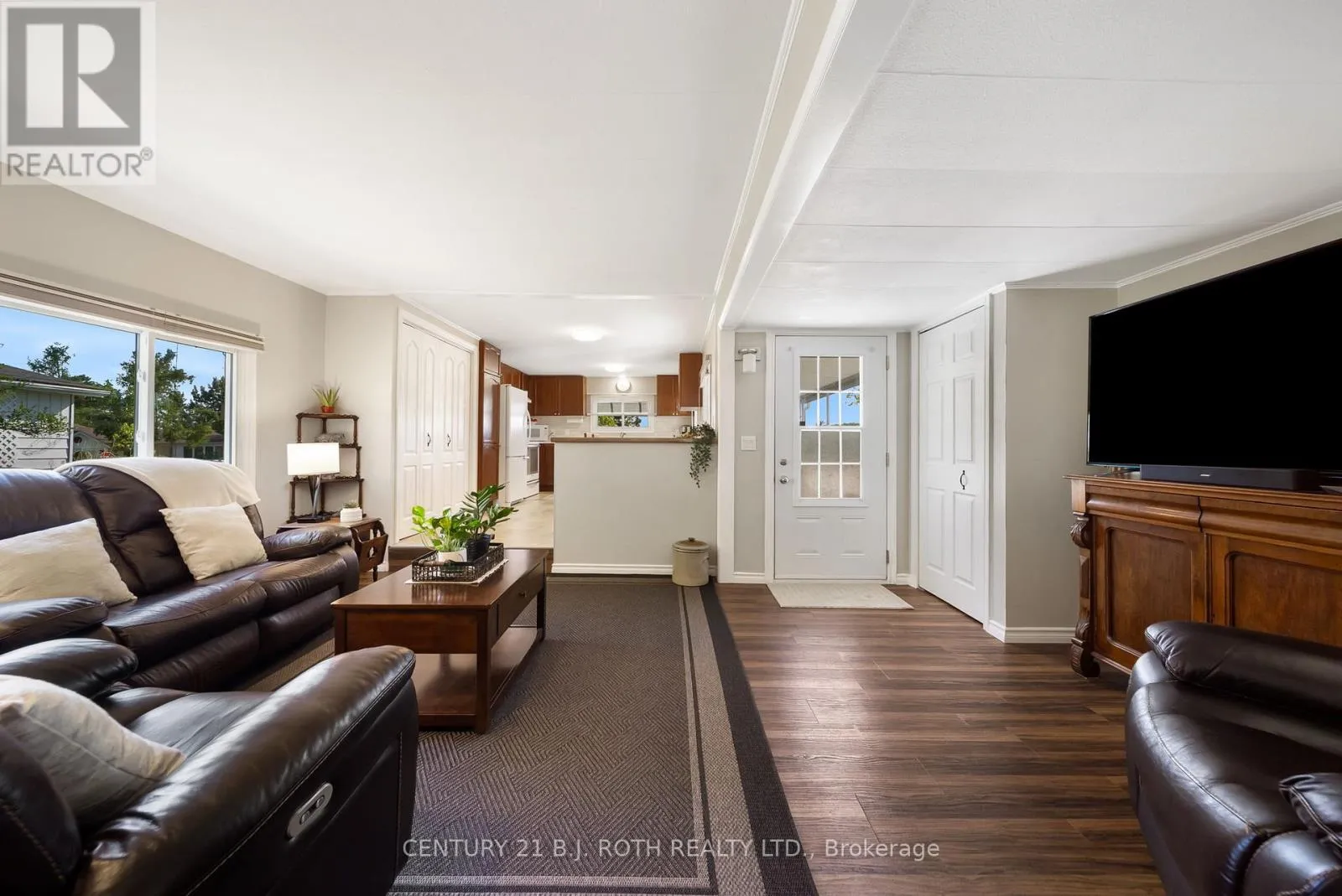 Cross Streets: Line 12/Bass Lake Sd Rd E. ** Directions: Line 12 N /Bass Lake sd Rd E Big Cedar Estates. Enjoy relaxed adult living in Big Cedar Estates, a community between Orillia and Barrie. This well-cared-for Mailette model offers flexible 2- or 3-bedroom with a large primary bedroom with walk-in closet. It is an open-concept design, renovated kitchen, upgraded bath, newer laminate flooring, and updated lighting throughout as well as a large storage room and a pantry for convenience. Residents enjoy low-maintenance living with monthly fees of $345 covering water, sewer, lawn care, snow removal, clubhouse, walking trails, fibre optic internet, and Rogers TV, plus boat and RV parking when available. A welcoming home in a vibrant community! (id:27476)
