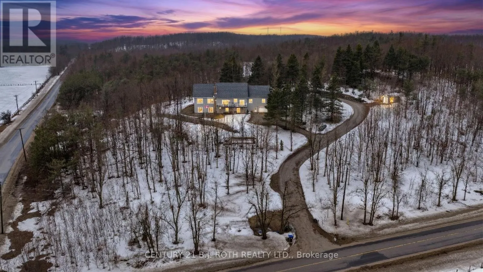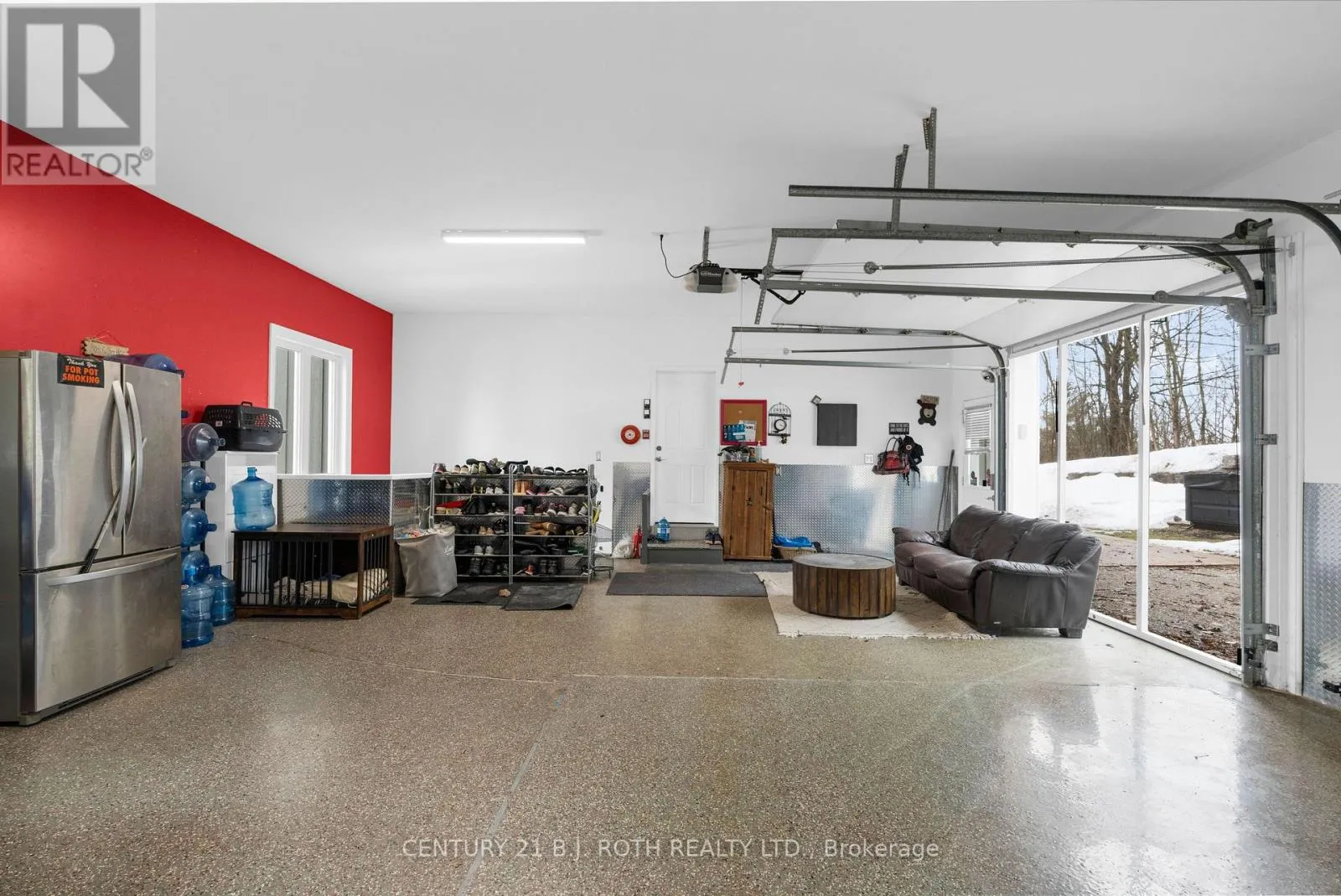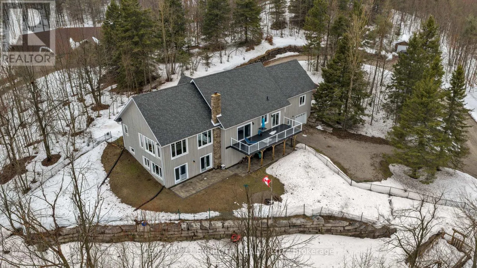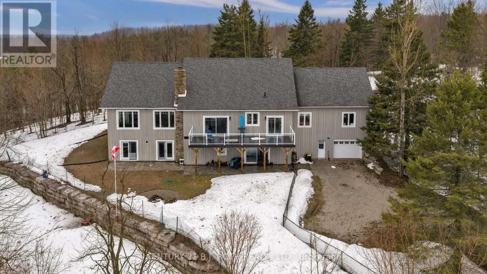 Hwy 400 to Horseshoe Valley rd to Line 4 N Welcome to your private hillside retreat in the heart of Horseshoe Valley. Set on over 6 acres and perched beautifully above the surrounding landscape, this 4 bedroom, 3 full bathroom home offers stunning elevated views, exceptional privacy, and a peaceful natural setting surrounded by forest and trails. The home features approximately 2,000 sq ft of bright main floor living space and a fully finished walk-out basement, offering nearly 4,000 sq ft of total living space, making it ideal for families, multi-generational living, or those looking for space and flexibility. Inside, the home offers a bright open-concept layout flooded with natural light, along with two full kitchens and a fully self-contained in-law suite, perfect for extended family, guests, or potential income. A standout feature of this property is the two-level garage setup, including an attached double-car garage plus a lower third bay ideal for a workshop, storage for recreational vehicles, or the perfect hobby space. The property itself is designed for outdoor living with over 6 acres of land, private trails, a fenced area ideal for kids and pets, and additional landscaping including perennial gardens, cedar trees, and lilac bushes, creating a beautiful and private outdoor setting. Relax and unwind in the brand new Jacuzzi hot tub, perfectly positioned to enjoy the peaceful surroundings and country nights. Recent updates include A/C (2022), fencing (2022), Lifestyle garage screen (2022), new main floor fridge (2023), new stove (2026), and a brand new Jacuzzi hot tub (2025). Located just minutes to Horseshoe Resort, Vetta Nordic Spa, the brand new Horseshoe Valley Public School, golf courses, trails, Barrie, and Orillia, this property offers the perfect balance of privacy, space, views, and convenience in one of Oro-Medonte's most desirable areas. (id:27476)