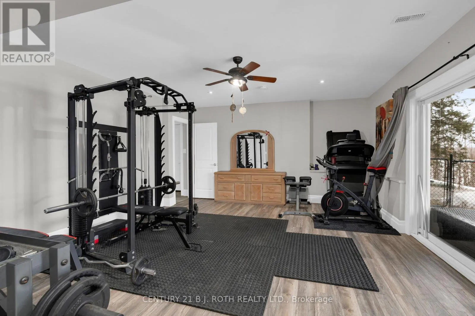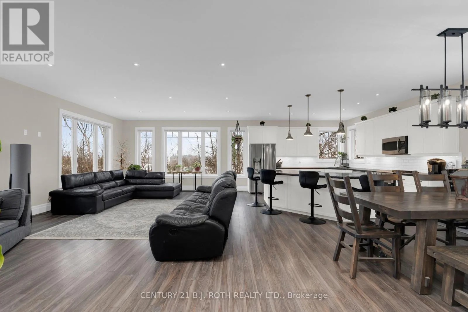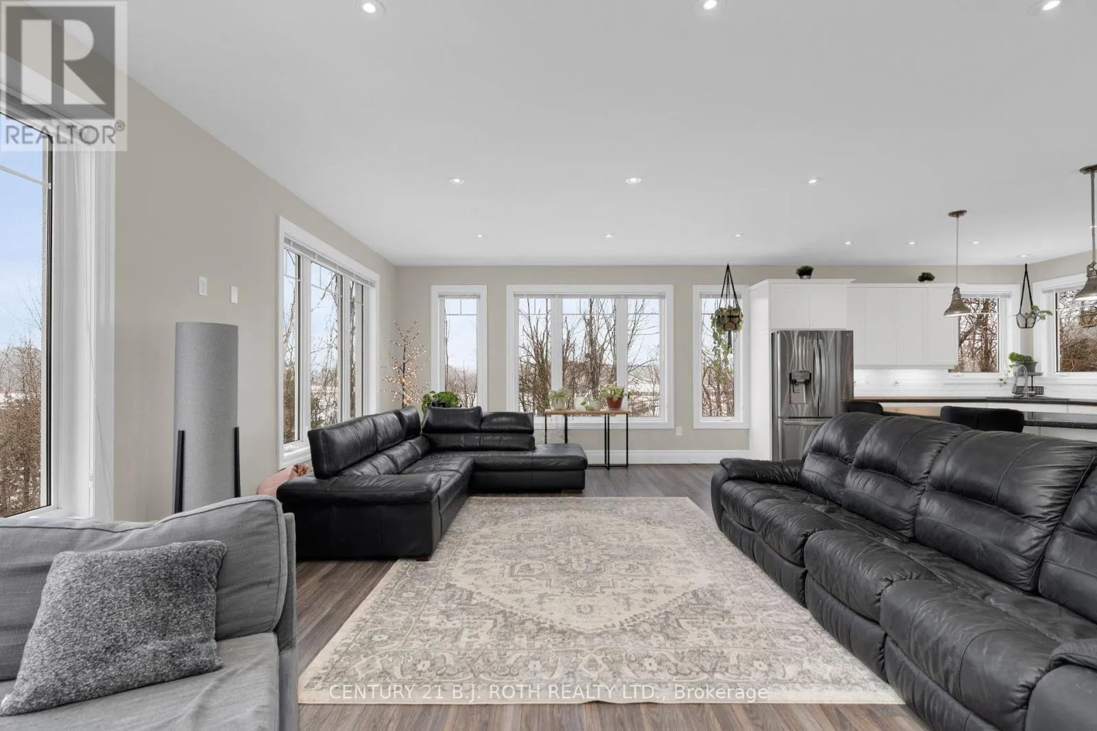 Hwy 400 to Horseshoe Valley rd to Line 4 N Welcome to your private hillside retreat in the heart of Horseshoe Valley. Set on over 6 acres and perched beautifully above the surrounding landscape, this 4 bedroom, 3 full bathroom home offers stunning elevated views, exceptional privacy, and a peaceful natural setting surrounded by forest and trails. The home features approximately 2,000 sq ft of bright main floor living space and a fully finished walk-out basement, offering nearly 4,000 sq ft of total living space, making it ideal for families, multi-generational living, or those looking for space and flexibility. Inside, the home offers a bright open-concept layout flooded with natural light, along with two full kitchens and a fully self-contained in-law suite, perfect for extended family, guests, or potential income. A standout feature of this property is the two-level garage setup, including an attached double-car garage plus a lower third bay ideal for a workshop, storage for recreational vehicles, or the perfect hobby space. The property itself is designed for outdoor living with over 6 acres of land, private trails, a fenced area ideal for kids and pets, and additional landscaping including perennial gardens, cedar trees, and lilac bushes, creating a beautiful and private outdoor setting. Relax and unwind in the brand new Jacuzzi hot tub, perfectly positioned to enjoy the peaceful surroundings and country nights. Recent updates include A/C (2022), fencing (2022), Lifestyle garage screen (2022), new main floor fridge (2023), new stove (2026), and a brand new Jacuzzi hot tub (2025). Located just minutes to Horseshoe Resort, Vetta Nordic Spa, the brand new Horseshoe Valley Public School, golf courses, trails, Barrie, and Orillia, this property offers the perfect balance of privacy, space, views, and convenience in one of Oro-Medonte's most desirable areas. (id:27476)