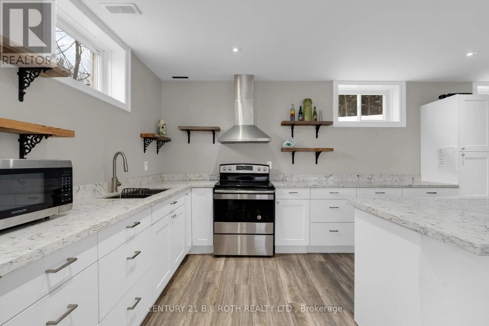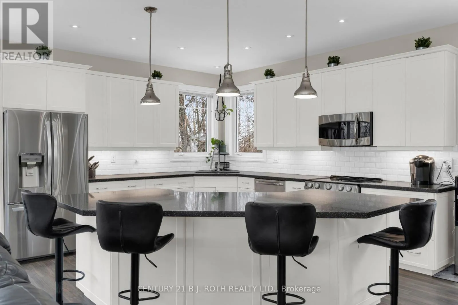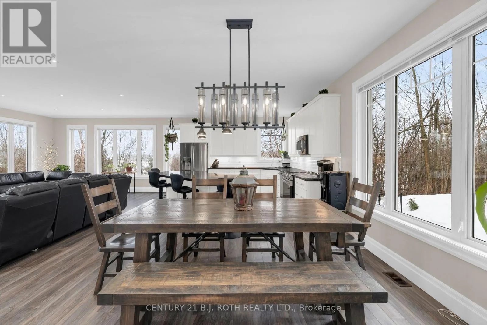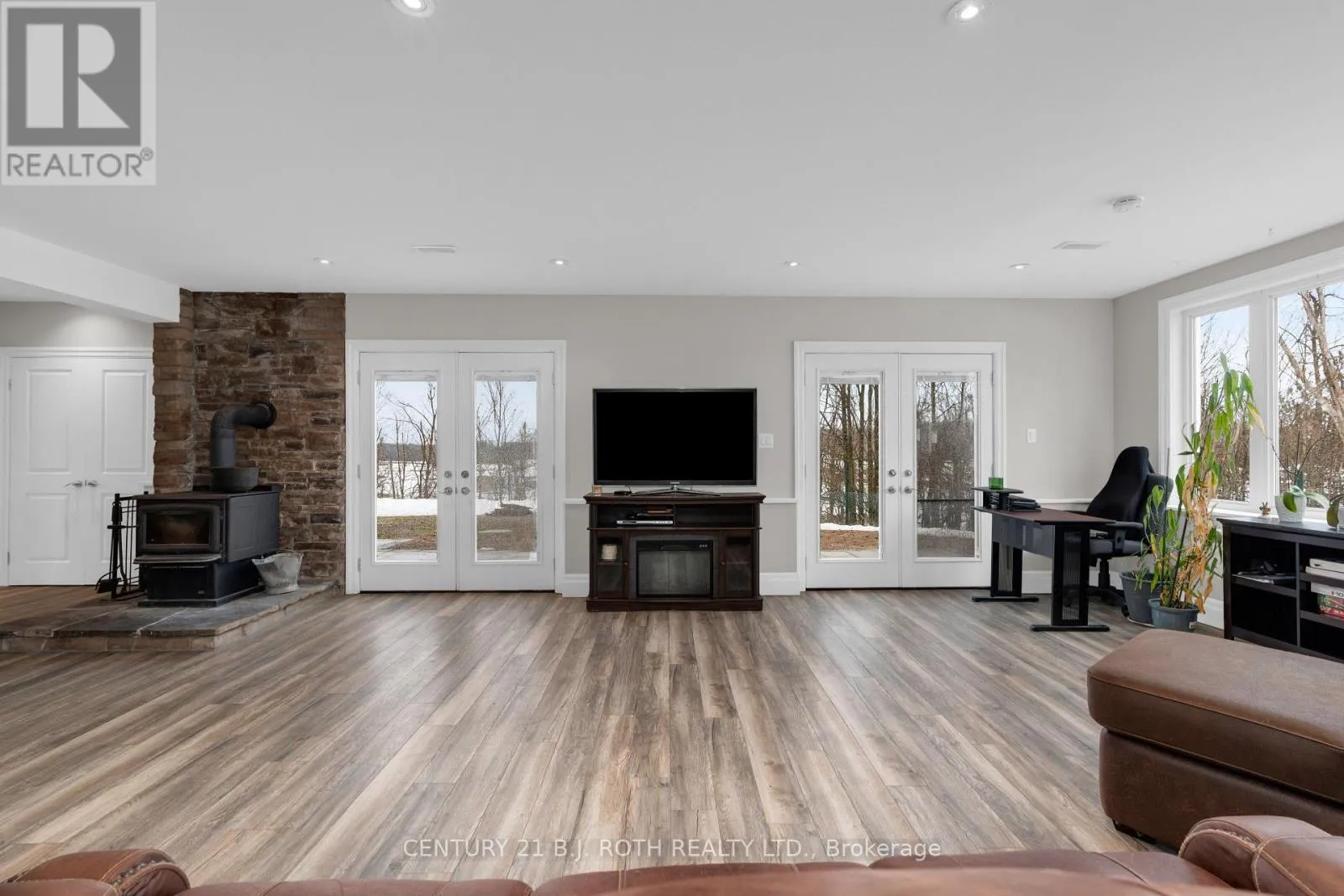 Hwy 400 to Horseshoe Valley rd to Line 4 N Welcome to your private hillside retreat in the heart of Horseshoe Valley. Set on over 6 acres and perched beautifully above the surrounding landscape, this 4 bedroom, 3 full bathroom home offers stunning elevated views, exceptional privacy, and a peaceful natural setting surrounded by forest and trails. The home features approximately 2,000 sq ft of bright main floor living space and a fully finished walk-out basement, offering nearly 4,000 sq ft of total living space, making it ideal for families, multi-generational living, or those looking for space and flexibility. Inside, the home offers a bright open-concept layout flooded with natural light, along with two full kitchens and a fully self-contained in-law suite, perfect for extended family, guests, or potential income. A standout feature of this property is the two-level garage setup, including an attached double-car garage plus a lower third bay ideal for a workshop, storage for recreational vehicles, or the perfect hobby space. The property itself is designed for outdoor living with over 6 acres of land, private trails, a fenced area ideal for kids and pets, and additional landscaping including perennial gardens, cedar trees, and lilac bushes, creating a beautiful and private outdoor setting. Relax and unwind in the brand new Jacuzzi hot tub, perfectly positioned to enjoy the peaceful surroundings and country nights. Recent updates include A/C (2022), fencing (2022), Lifestyle garage screen (2022), new main floor fridge (2023), new stove (2026), and a brand new Jacuzzi hot tub (2025). Located just minutes to Horseshoe Resort, Vetta Nordic Spa, the brand new Horseshoe Valley Public School, golf courses, trails, Barrie, and Orillia, this property offers the perfect balance of privacy, space, views, and convenience in one of Oro-Medonte's most desirable areas. (id:27476)