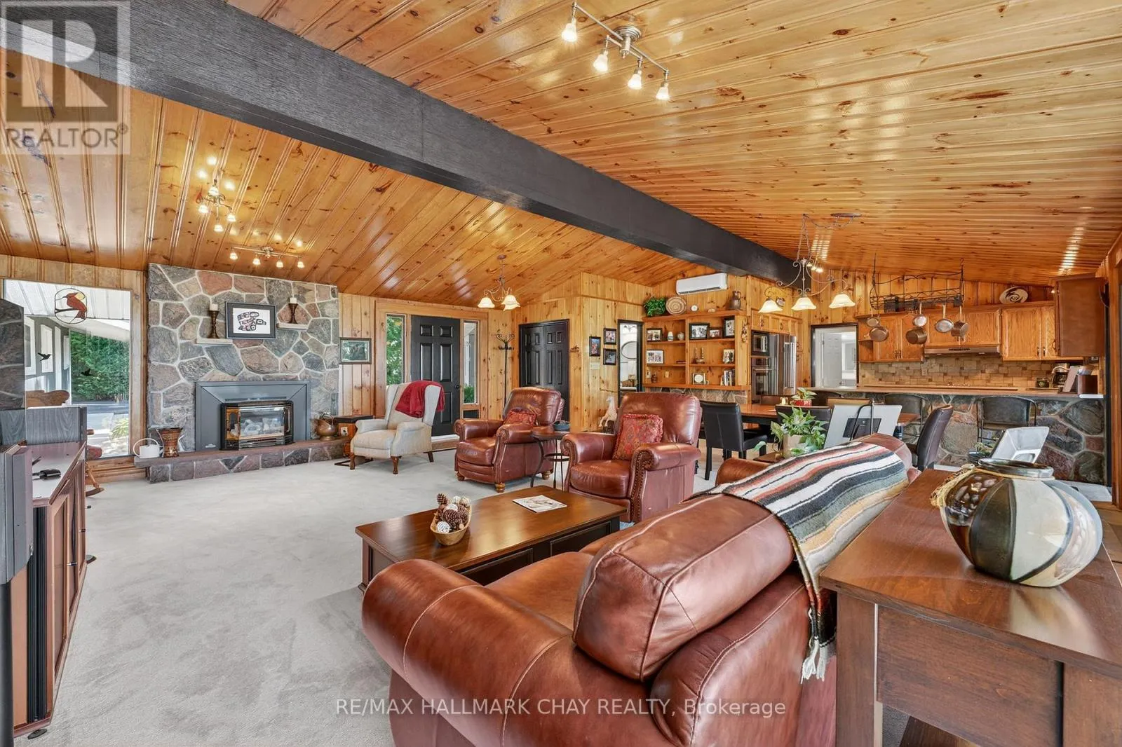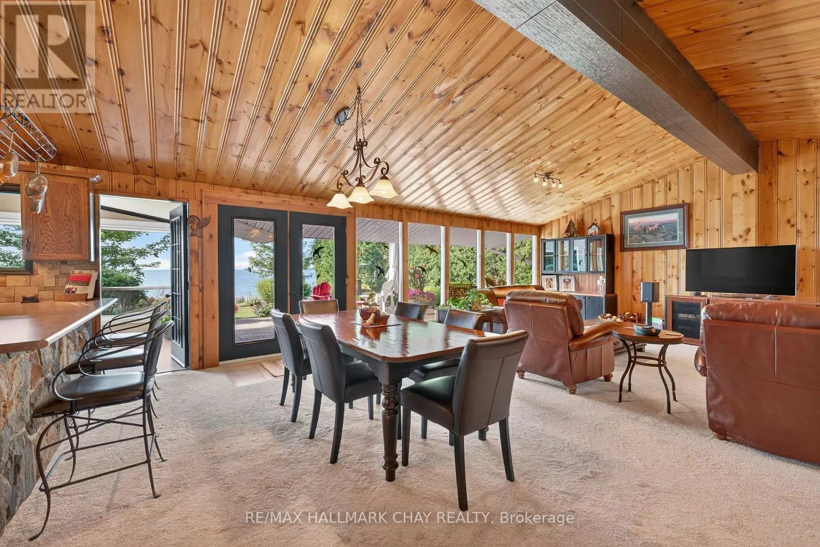 Cross Streets: 7th Line/Lakeshore. ** Directions: Hwy 11 to Line 7 S to left on Lakeshore. One hundred feet of level shoreline along the South-facing shores of Lake Simcoe. This exceptional property offers a truly picturesque, private, park-like setting. The thoughtfully enhanced waterfront showcases beautiful granite stonework, complete with elegant stairs and a reinforced shoreline-perfectly designed for both beauty and function. Unwind or entertain on the stunning waterside stone patio while taking in serene, panoramic lake views.Surrounded by lush, professionally landscaped gardens, the home also features inviting front and rear patios that create multiple outdoor living spaces to enjoy throughout the day.This charming 3+1 bedroom bungalow includes a spacious 17' x 10' guest bunkie with its own 3-piece bath-ideal for hosting family and friends in comfort and privacy.Inside, the open-concept layout is designed to capture the views, with a well-appointed kitchen featuring a breakfast bar, built-in oven, microwave, and stovetop, all overlooking a generous living room anchored by a striking stone fireplace and wall-to-wall water views. Spacious bedrooms, a dedicated home office, and a laundry room with ample storage add to the home's everyday functionality.Perfectly situated between Barrie and Orillia, this property offers convenient access to shopping, dining, and amenities, while being just minutes from the Simcoe Loop Trail, skiing, and golf-making it an ideal four-season retreat. (id:27476)