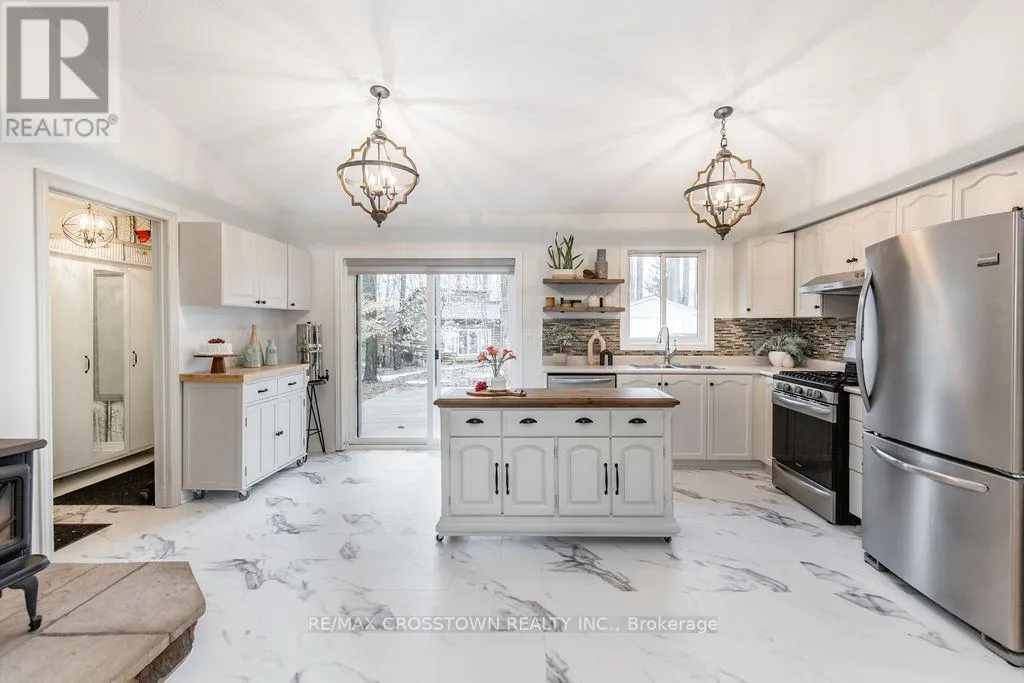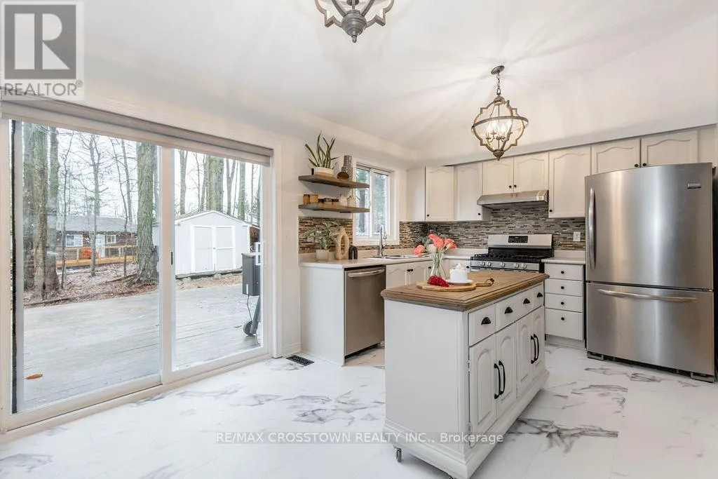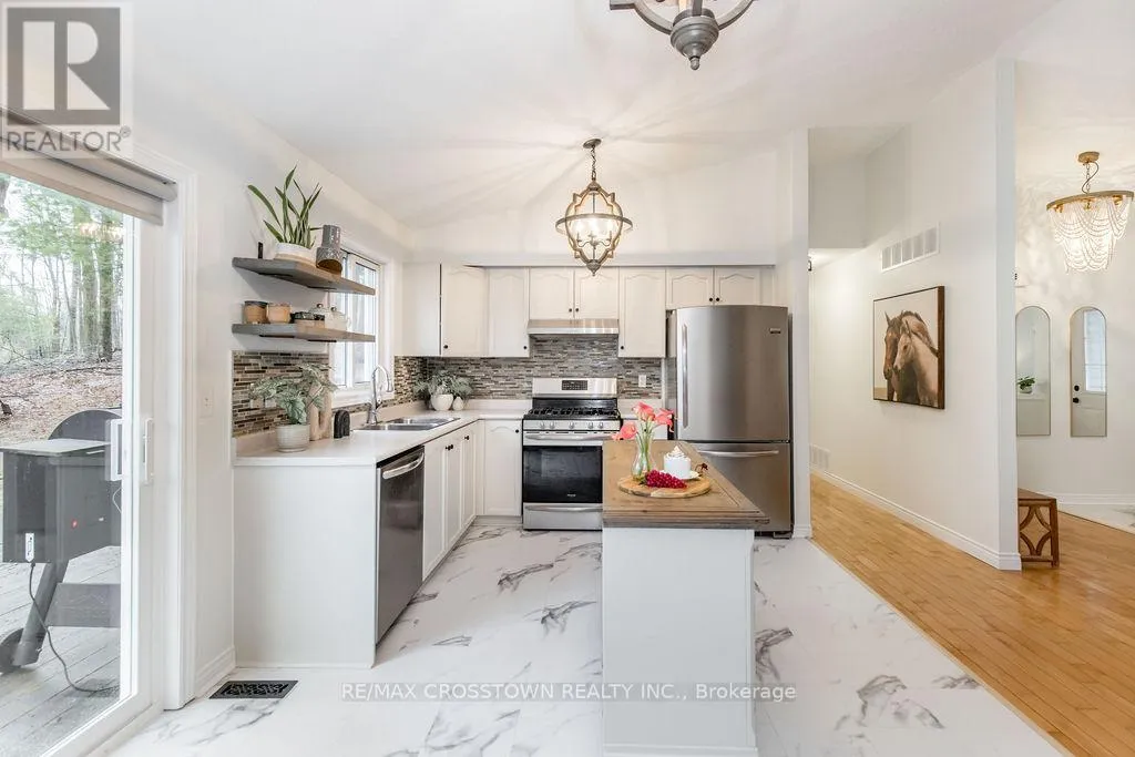 Cross Streets: Line 6 & Huronwoods. ** Directions: HVR to Line 6 to Monica Ct. Welcome to 9 Monica Road, set in the highly sought-after community of Sugarbush, where lifestyle meets nature. Located on a quiet dead end street and Surrounded by mature trees and scenic beauty, this spacious 5-bedroom, 3-bathroom home is the perfect fit for a growing family. Set on a spacious lot, enjoy coffee on the front porch, and a 2 car garage with separate entrance. Inside this carpet free home, you'll find a bright and inviting layout that has been recently updated throughout, featuring fresh paint, new kitchen floors, new hardware, and all new lighting. 3 main floor bedrooms, including the primary with ensuite bathroom. The home offers multiple walkouts leading to your private, treed backyard, creating a seamless connection between indoor living and the peaceful natural setting. A cozy wood-burning fireplace adds warmth and charm, perfect for relaxing after a day outdoors. With a finished lower level, there is excellent potential for an in-law suite or multi-generational living with 2 bedrooms, family room and a newly renovated bathroom. Located just minutes to golf courses, skiing, trails, and all that Horseshoe Valley has to offer, this is a rare opportunity to own a home that truly captures the essence of the Sugarbush lifestyle. New Furnace in 2023, roof replaced in 2019 decks built in 2016. (id:27476)