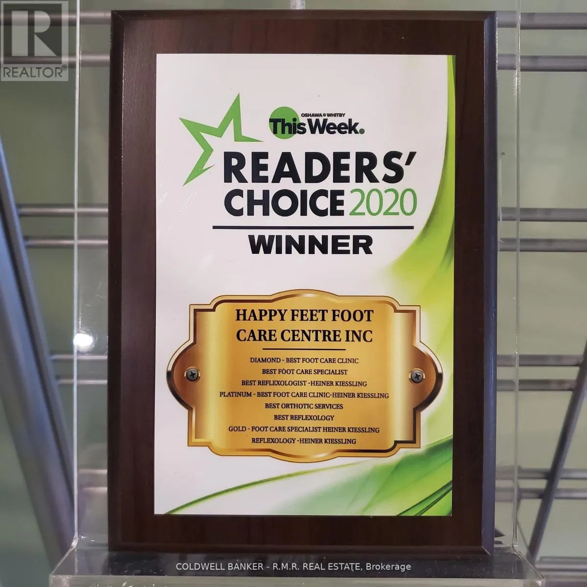 King St E & Ritson Rd An opportunity to acquire a well-established local business with a 40 year history of award winning service. If you are a Foot Care Practitioner starting out or an experienced professional looking to establish your own practice....here is your opportunity! The Happy Feet Foot Care Centre has many regular clients, name recognition and a great reputation. Seller is prepared to provide guidance to ensure there is a smooth transition in order to preserve the relationships with existing clients. Not all foot care clinics are the same. With this acquisition comes the sharing of the exceptionally high quality service standards that have earned the Happy Feet Foot Care Centre the Readers' Choice Award once again as the 2025 Diamond winner. Current monthly office space rent is $950.00 + HST (id:27476)