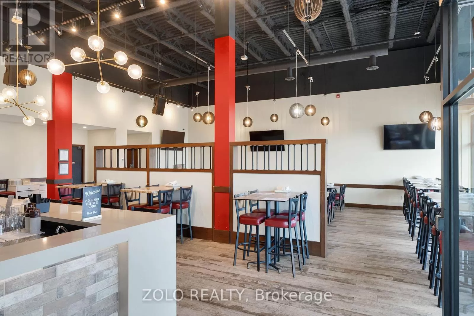 Cross Streets: Windfields & Simcoe. ** Directions: Windfields. Located at the prime location of Windfields, Oshawa N, Palm Court Restaurant is a well established and beloved dining destination offering a warm, inviting atmosphere and a menu full of delicious, high-quality dishes and the LLBO license, offering a wide range of beverages and cocktails. The restaurant boasts of its loyal customer base and a prime location in the bustling windfields area, making it an incredible opportunity for a passionate entrepreneur or restaurateur looking to take over a thriving business. Situated on a busy Simcoe St N, the restaurant enjoys high visibility and steady foot traffic, and is known for great food, friendly service, and cozy ambience, which has built a strong local following. The restaurant is 2800 Sq ft. It has a setup that supports 2 kitchens for different cuisines. Rent $12043 (Includes base rent &TMI). 10 Year lease commenced in February 2021. Hence 5 years, 7 months remaining on lease. Seating: Dining Section-56; Bar Section seats 38, Total Liquor license (LLBO) capacity is 90. Restaurant opened April 2022, Business age is 3 years, 3 months. All Equipment is owned. Currently 10 Employees. (id:27476)