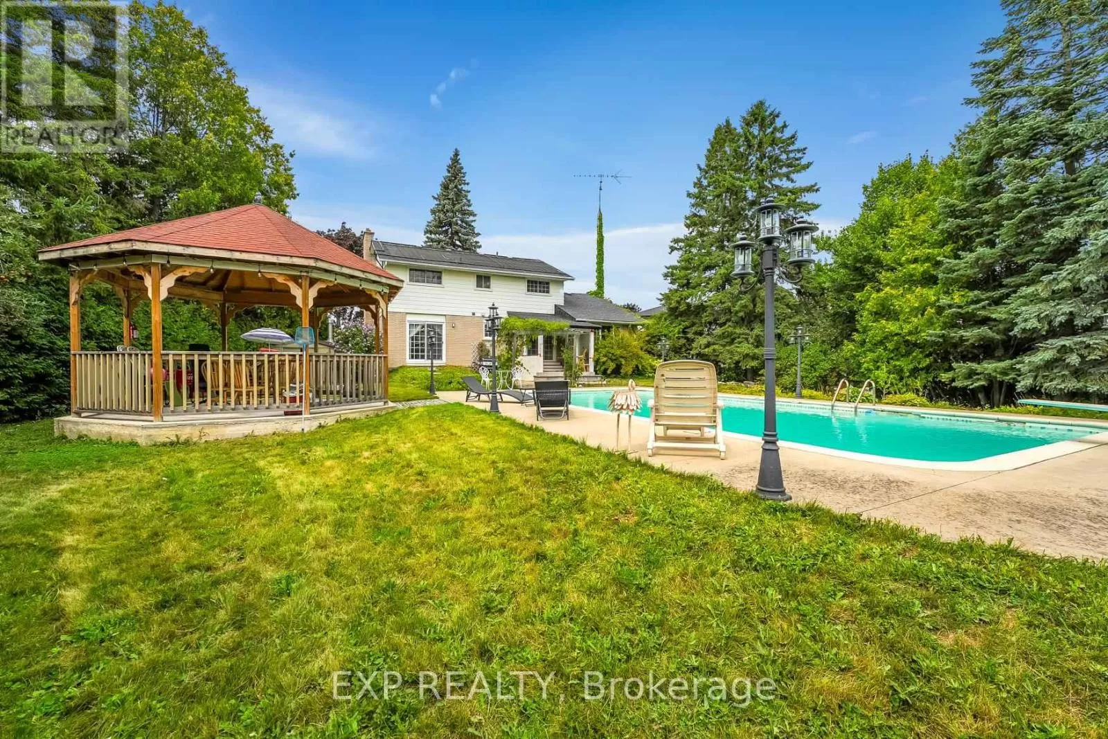 Cross Streets: Ritson Rd N/Darcy St. ** Directions: From Rossland Rd E, turn south on Wilson Rd N, turn east on Beau Valley Dr ,turn south on Violet Crt. Vacation in your own backyard! Nestled in one of Oshawa's most beautiful, mature, and sought-after neighborhoods, this spacious 4 bedroom home sits on an oversized landscaped lot in prestigious Beau Valley. Complete privacy with towering trees, perennial gardens, and a 20 x 40 concrete pool with 10 deep end. Rarely available on this quiet child-safe cul-de-sac. Spacious living area filled with natural light and hardwood floors throughout. The main floor family room offers flexibility perfect as a cozy retreat, home office, or even an additional bedroom. The modern eat-in kitchen (renovated 2024) features quartz countertops, ample cabinetry, and direct walkout to a deck overlooking the backyard. Solar panels for energy efficiency. A beautiful custom-built gazebo creates the perfect spot to relax or entertain. Two storage sheds for extra convenience. Steps to one of Oshawa's top-rated public schools, with parks, trails, and amenities nearby. Don't miss the opportunity to make this exceptional home yours! Survey is attached. (id:27476)