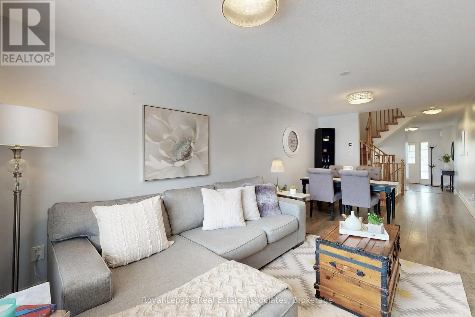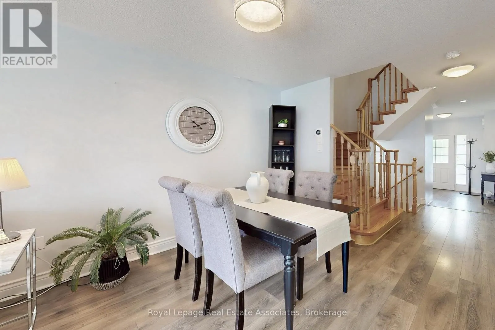 Harmony Rd N & Coldstream Dr Welcome to this beautiful 2-storey townhouse featuring a bright open-concept design and plenty of natural light throughout. The spacious living area is warm and welcoming, with an integrated open-concept layout that flows seamlessly into the dining and kitchen spaces - perfect for both everyday living and entertaining. The modern, renovated kitchen boasts granite countertops, a stylish backsplash, stainless steel appliances, and a spacious breakfast area with a walkout to a large, fully fenced backyard - perfect for family gatherings or outdoor entertaining. Upstairs, the primary bedroom offers a generous layout with a large walk-in closet, a stunning renovated bathroom with a double sink and its own storage closet. The two additional bedrooms are also great in size with excellent closet space. The basement offers incredible potential and includes a finished space ideal for a home office. Ideally located near shopping, schools, and transit, this home combines comfort, style, and convenience in one perfect package. (id:27476)