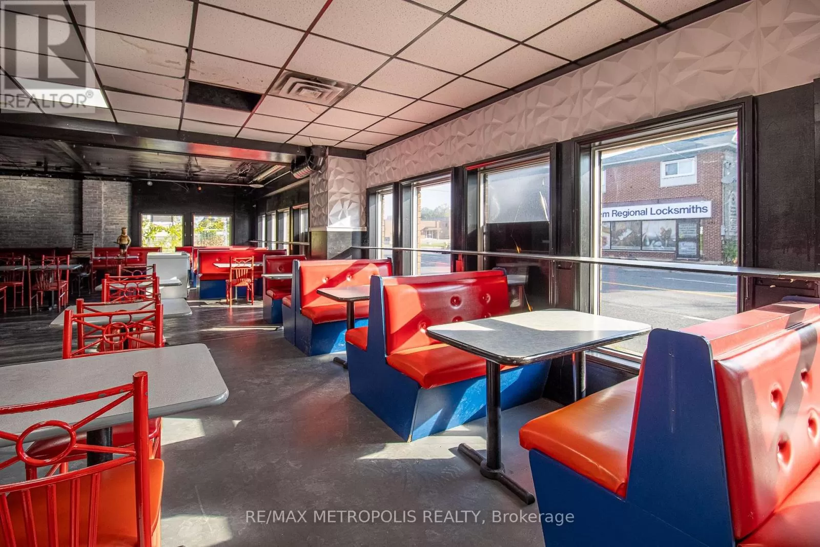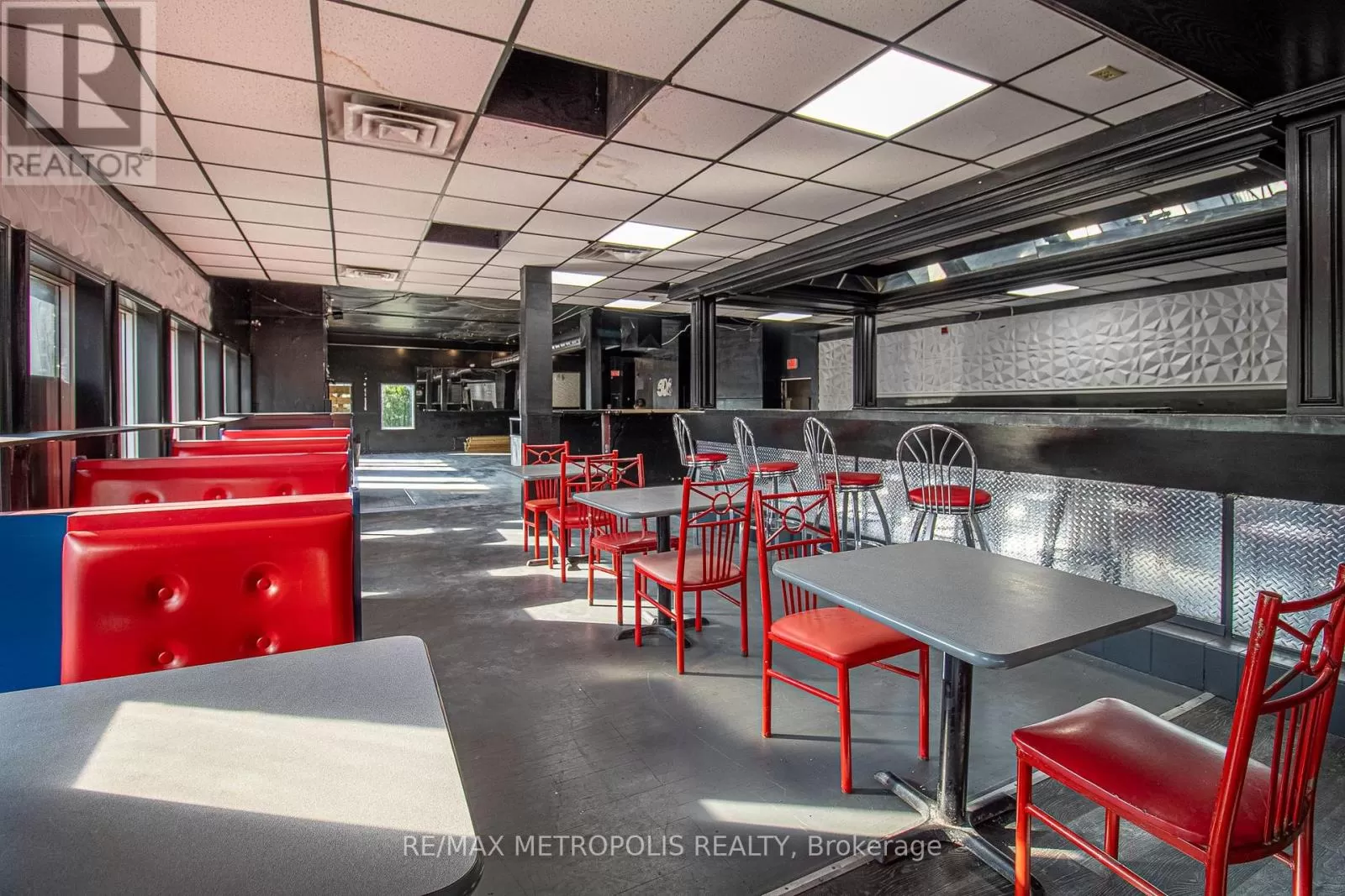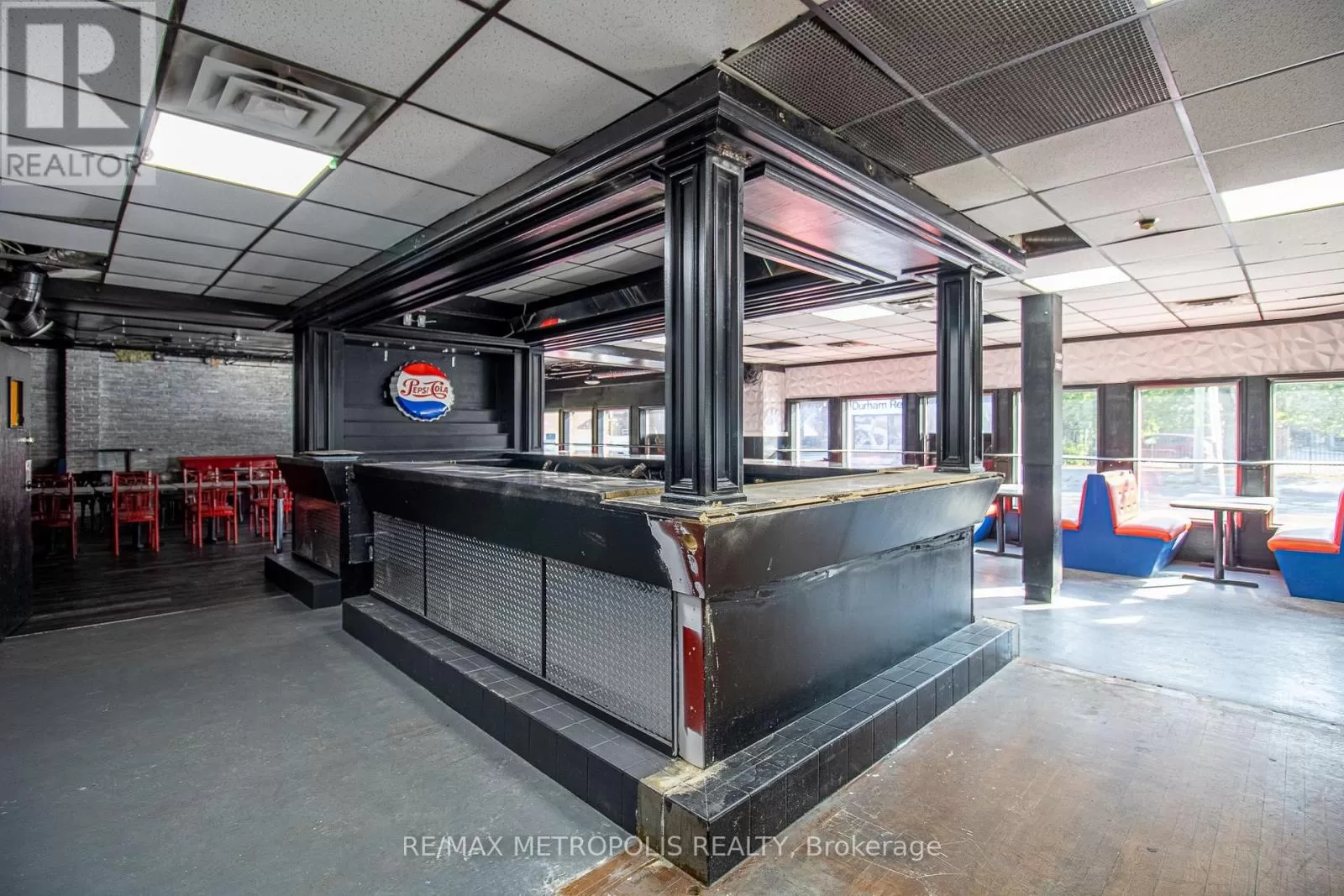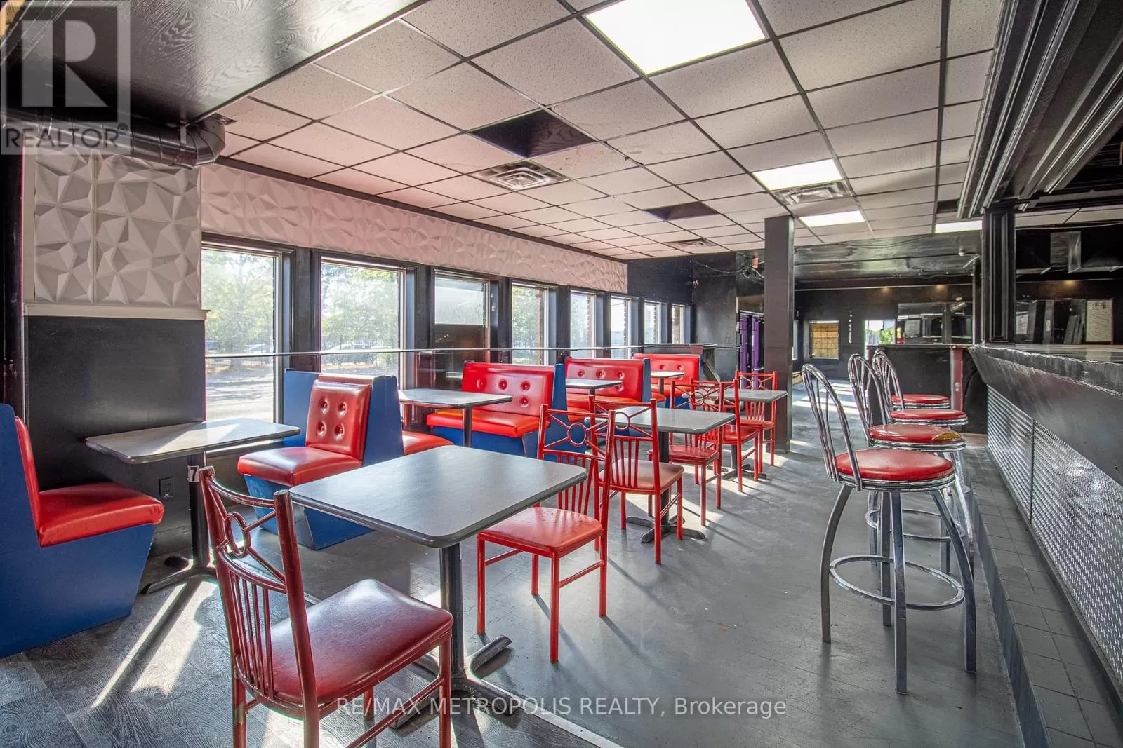 SIMCOE ST S/BLOOR ST W Discover a rare turnkey restaurant/bar opportunity at 504 Simcoe St S, offering approximately 5,000 sq. ft. of indoor space plus an unfinished 300 sq. ft. patio perfect for established restaurants looking to expand or launch a new concept. Strategically positioned just off Highway 401 with 8,000-12,000 cars passing by daily, this high-visibility location is one of the few full-service sit-down restaurants in the area. Ideally suited for a restaurant, bar, or sports bar, it comes with a transferable liquor license valid until June 12, 2026. The spacious interior features seating for around 250 guests, while the patio has room for about 50 more once completed. Included are 100 chairs, a fully equipped kitchen with three sinks, industrial fridge, and freezer, and generous basement/storage space. Patrons will appreciate the convenience of 17 on-site parking spots plus additional plaza parking across the street, while operations are supported by multiple washrooms two mens and two womens on each side of the restaurant, plus two employee washrooms. With its size, equipment, parking, licensing, and unmatched exposure, 504 Simcoe St S offers an outstanding chance to step into a prime, ready-to-go hospitality space in a growing area. (id:27476)