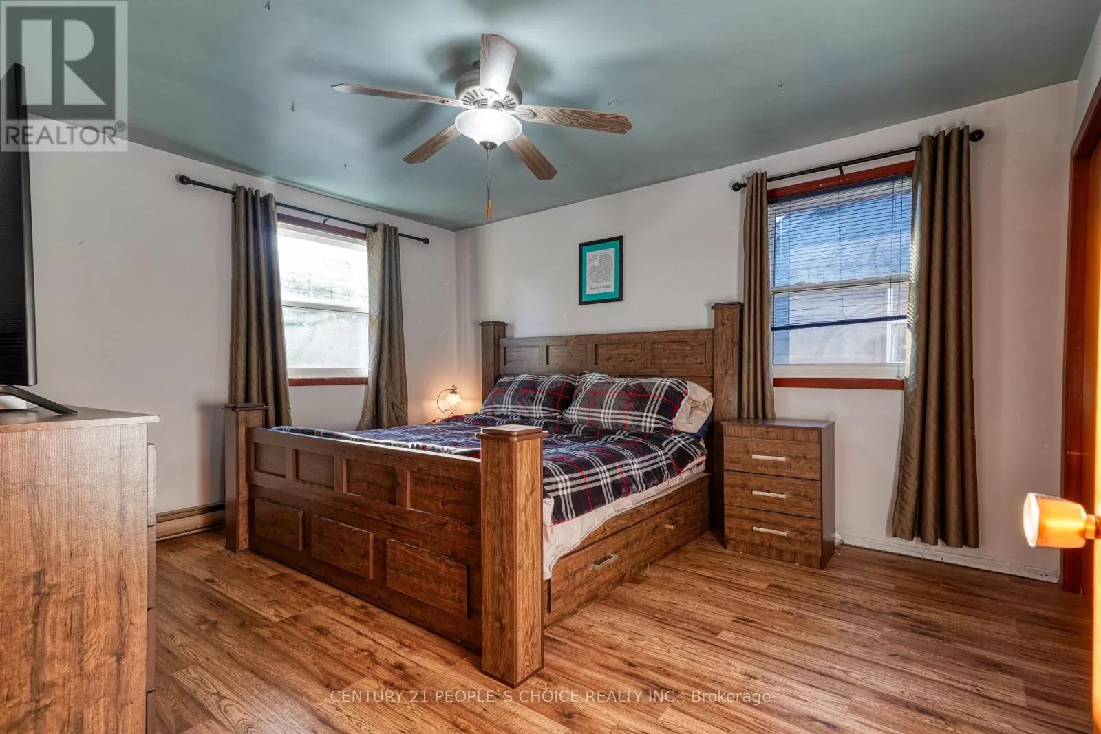 Marry St N & Rosedale Ave Welcome to this 4+1 bedroom, 2-bath home in the desirable Connaught Park neighborhood, just steps from the park, schools, and Costco Shopping Centre. Full of charm, it features original hardwood flooring, trim, high baseboards, and leaded glass windows. The main floor includes a versatile bedroom or office, full bath, and kitchen with walkout to a mature fenced yard. A former bedroom has been converted into a large pantry, while the upper-level addition offers three generous bedrooms and a 4-piece bath. Recent upgrades add comfort and value, including a new gas furnace (2023), main-floor air conditioner (2023), washer, updated upstairs flooring, replaced cement patio, and an additional patio area.The home is equipped with 200-amp service. With parking for three vehicles, outdoor storage, and a private yard, this well-maintained property is move-in ready and ideally located for both family living and convenience. (id:27476)