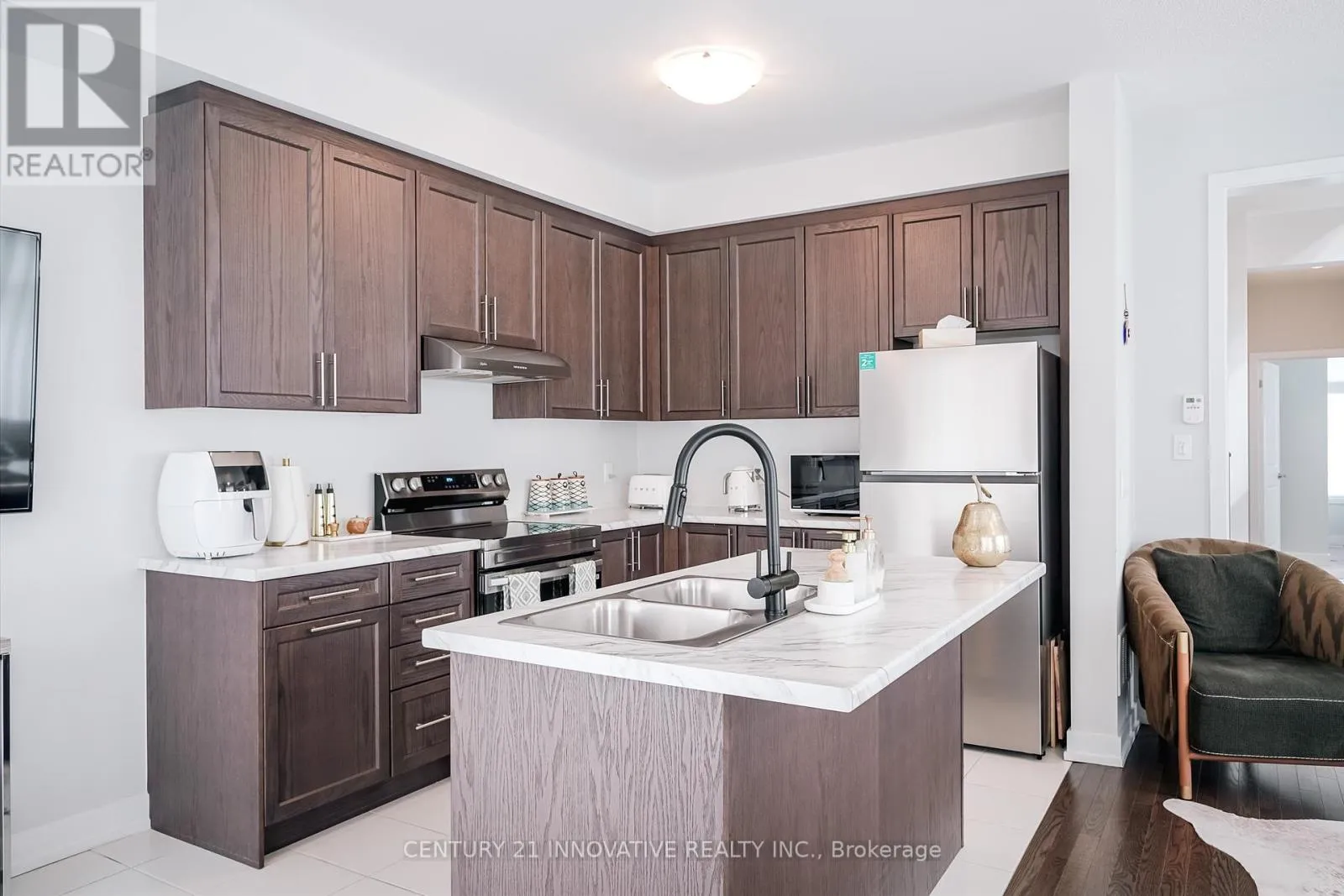 Harmony & Conlin Welcome to this stunning corner townhouse in Oshawa's newly developed Kedron community by Minto. Built just 1 year ago and offering 2,261 sq ft of thoughtfully designed living space, this home blends modern finishes with family functionality. The main floor features a guest suite with a full bathroom, perfect for in-laws or visitors. Smooth 9 ft ceilings and large windows create a bright, airy atmosphere, while the open-concept living, dining, and kitchen/breakfast area makes entertaining seamless. The kitchen boasts stainless steel appliances, ample cabinetry, and plenty of counter space. Rich hardwood flooring flows through the main level, with cozy carpeting in bedrooms and basement. Upstairs, you'll find three spacious bedrooms and two full bathrooms, including a huge primary retreat with a walk-in closet and spa-inspired ensuite. One of the bedrooms even features a charming Juliet balcony. For convenience, the laundry room is located on the second floor. The professionally finished basement by the builder offers an additional level of living space with 8 ft ceilings, ideal as a recreation room, office, or gym. As a corner unit, this townhouse enjoys an abundance of natural light and extra privacy, making it feel more like a detached home. With its generous layout, its perfectly suited for a young family or multi-generational living. Nestled in Kedron, one of Oshawa's most desirable new communities, you'll enjoy proximity to parks, schools, shops, and easy access to major highways. This is not just a home its a lifestyle opportunity in one of Durham's fastest-growing neighborhoods. (id:27476)