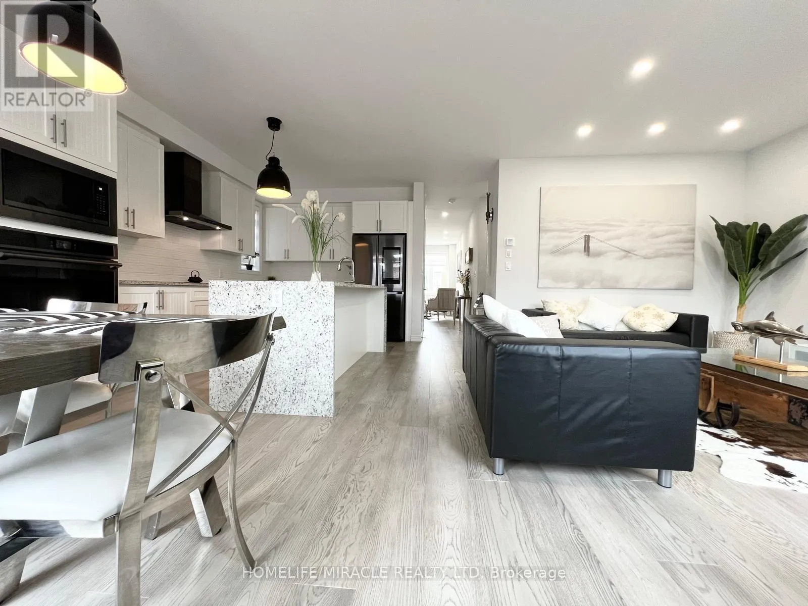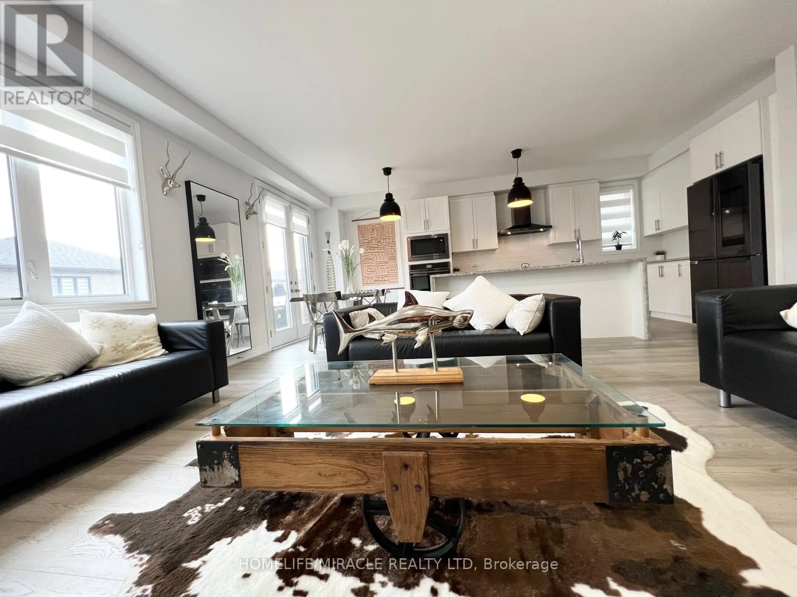 Harmony and Colin Welcome to the 2.5 years, fabulous detached home, in highly sort-after Kedron North Oshawa, Offers style, comfort and convenience. Ideally Located near schools, parks, bus stop, grocery stores and local market for families seeking modern living. This stunning home is the epitome of form and function in living spaces! packed with over $100,000 in builders upgrade. The 4+2 bedrooms and 3+1 bathrooms offers form and function. The main floor is designed for entertaining, with a functional yet thoughtful and bright layout, 9' Smooth Ceiling, 8' extended height doors, a premium engineered hardwood flooring, flows seamlessly into dining and kitchen area (no tiles in kitchen), the kitchen that's heart of the home, equipped with, extended cabinetry, granite countertops, a dramatic granite waterfall island, built-in cooktop, oven and microwave and a Samsung 4-door smart fridge with LED display, 8' French door from dining, leads to the deck, enhances open feel, perfect for barbecue and outdoor gathering, a smart home package w/video doorbell, programmable thermostat, water leak sensor and central vacuum. Upgraded stair case with iron pickets, upstairs includes spacious bedrooms with upgraded carpet and premium engineered hard wood hallway, while bathrooms features upgraded tiles, granite countertops, undermount sinks and frameless glass standing shower. An extended driveway (no sidewalk) fits 5 cars and fenced backyard adds privacy. A stone and rest-all-brick exterior boosts curb appeal. Close to Bus Stop, Walmart, Home Depot, banks, Cineplex, Restaurants, parks, Durham College, Ontario Tech University, top-rated schools, Costco, Lakeridge Hospital and Hwy 407/7 (id:27476)