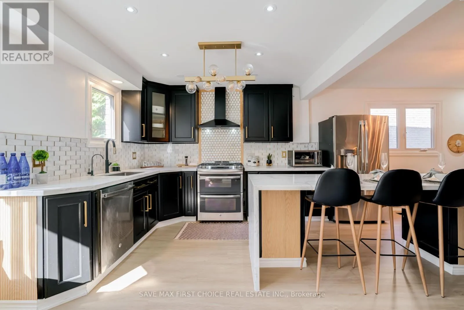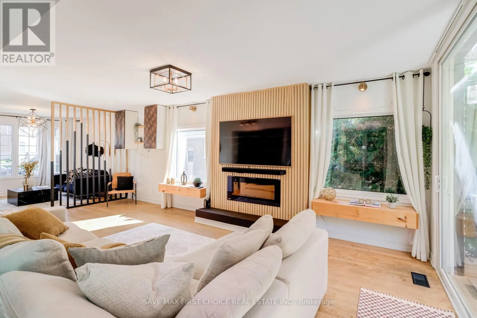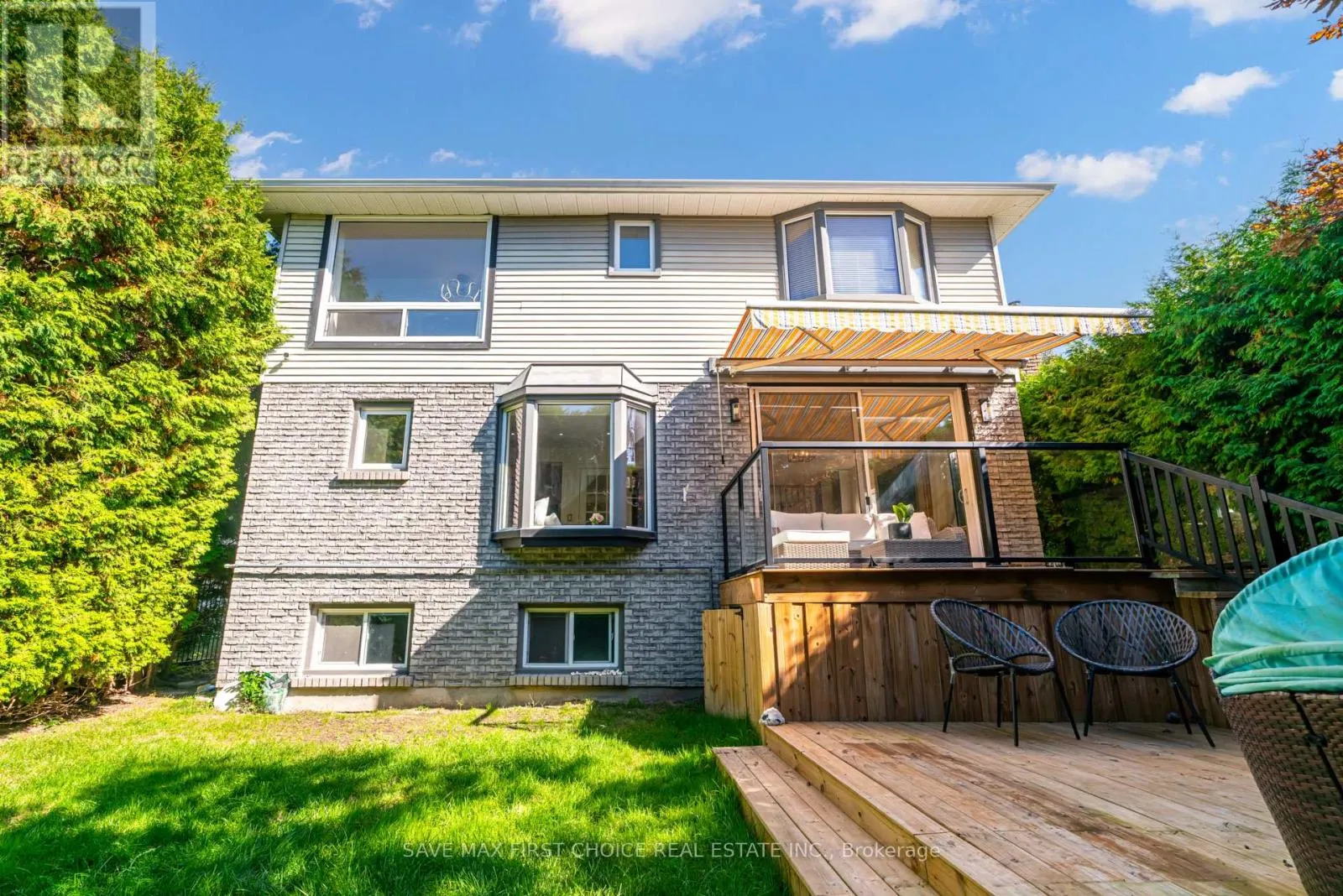 Copperfield/Harmony Introducing an exquisite 3+2 bedroom, 4 bathroom modern masterpiece in Oshawa, where luxury, design, and function converge to create an exceptional living experience. Nestled in a family-friendly neighborhood, this home has been freshly painted and meticulously renovated with premium finishes, offering both comfort and elegance for growing families and those who love to entertain. The heart of the home is the open-concept main floor, anchored by a chef-inspired kitchen with a bold custom waterfall island featuring sleek black accents, high-end appliances, and an extended dining space that flows seamlessly into bright, inviting family and living areas. A grand floating staircase with striking floor-to-ceiling spindles and upgraded glass railings on both the main and second levels adds a dramatic architectural touch, while a designer foyer with rustic concrete and hexagon tiles sets a tone of upscale sophistication. Upstairs, the luxurious primary suite awaits, boasting dual walk-in closets and a beautifully renovated en-suite bathroom with a glass-enclosed rain shower, while the additional bedrooms provide spacious retreats filled with natural light. The fully finished basement offers a versatile media room designed for relaxation and entertainment, perfect for movie nights, game day gatherings, or hosting overnight guests. Step outside through expansive patio doors to discover a private backyard oasis, complete with a custom-built two-level wooden deck enhanced with sleek glass railings. The upper deck is ideal for lounging with a morning coffee or evening drink, while the lower level offers ample room for dining, barbecues, or a firepit to enjoy cozy evenings under the stars. Surrounded by mature trees and privacy fencing, this backyard retreat provides the tranquility of a cottage escape without leaving the city. This rare find combines modern elegance, thoughtful upgrades, and functional design, delivering the ultimate dream home in Oshawa. (id:27476)
