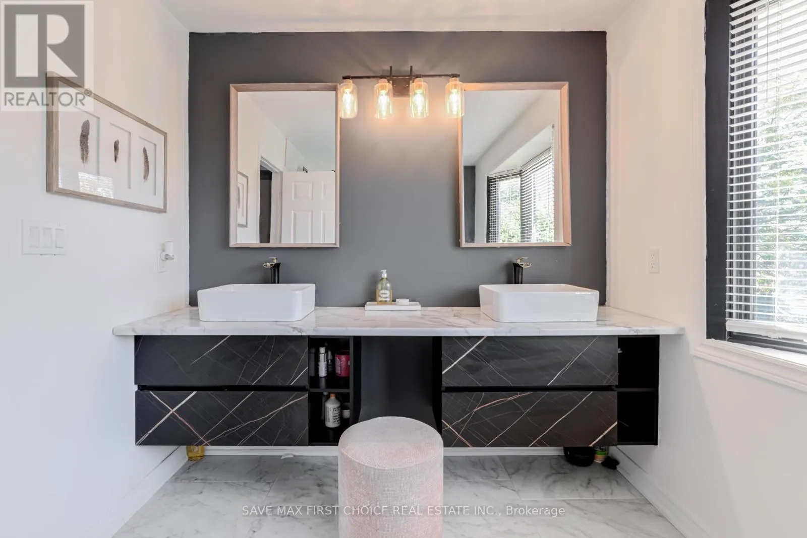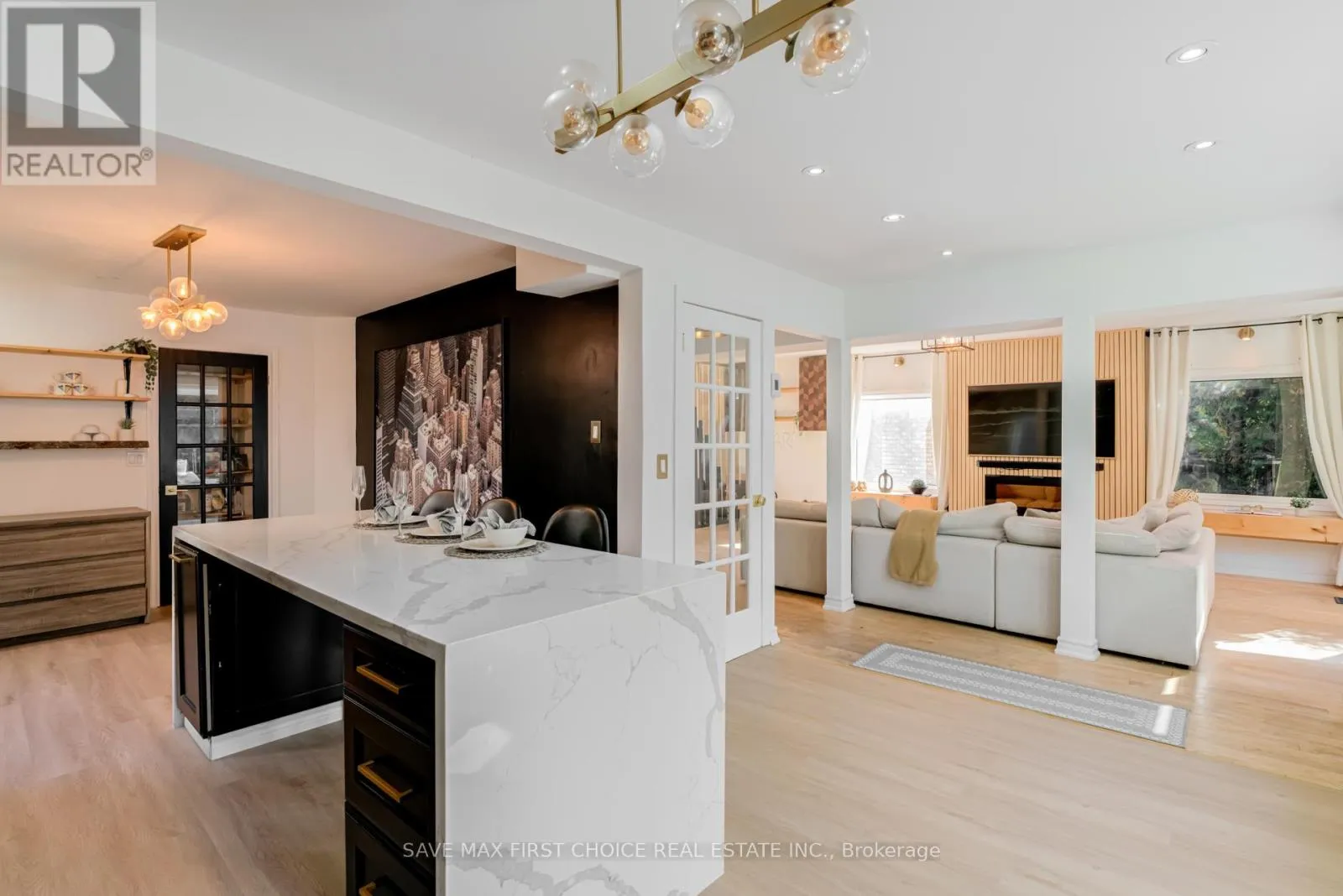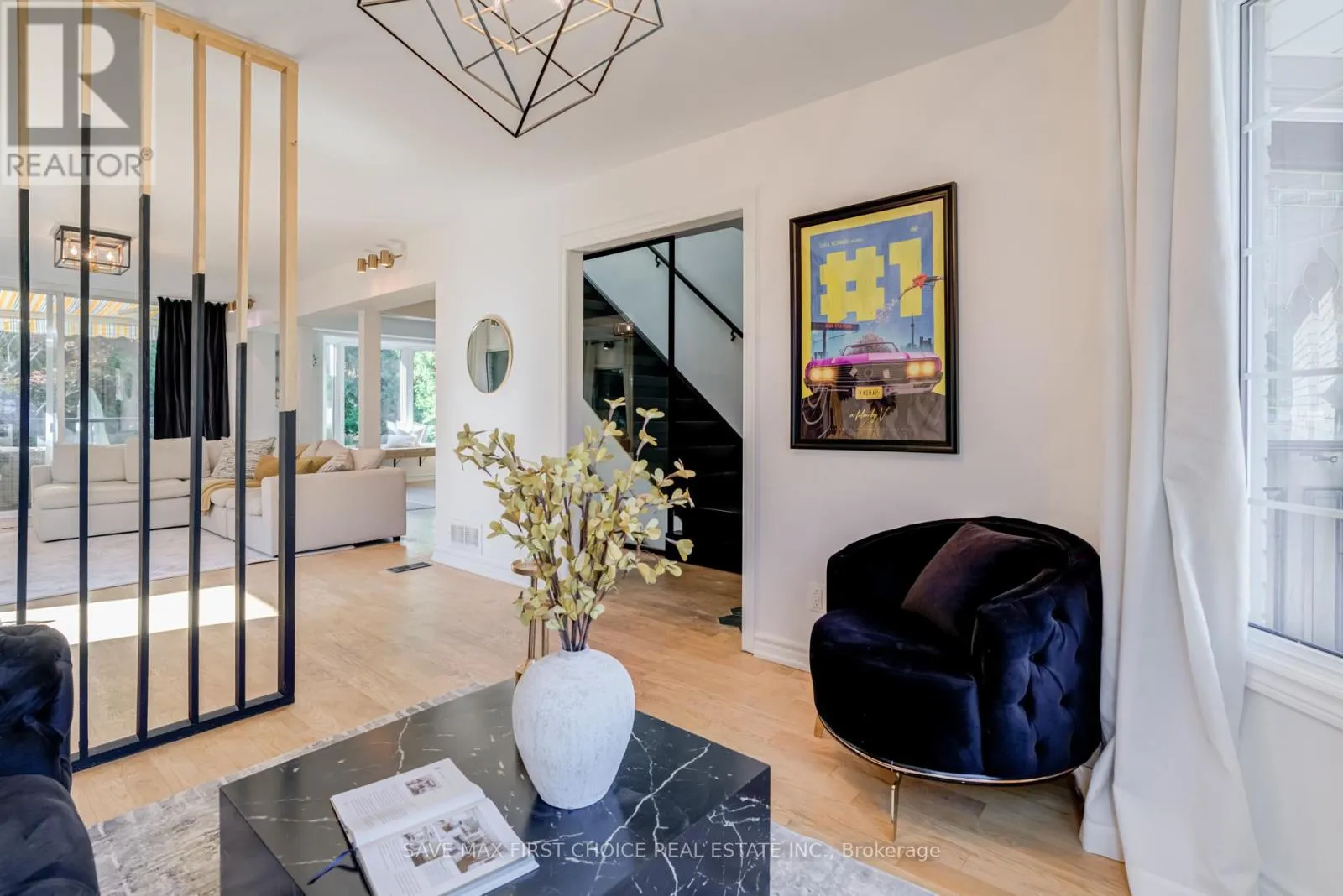 Copperfield/Harmony Introducing an exquisite 3+2 bedroom, 4 bathroom modern masterpiece in Oshawa, where luxury, design, and function converge to create an exceptional living experience. Nestled in a family-friendly neighborhood, this home has been freshly painted and meticulously renovated with premium finishes, offering both comfort and elegance for growing families and those who love to entertain. The heart of the home is the open-concept main floor, anchored by a chef-inspired kitchen with a bold custom waterfall island featuring sleek black accents, high-end appliances, and an extended dining space that flows seamlessly into bright, inviting family and living areas. A grand floating staircase with striking floor-to-ceiling spindles and upgraded glass railings on both the main and second levels adds a dramatic architectural touch, while a designer foyer with rustic concrete and hexagon tiles sets a tone of upscale sophistication. Upstairs, the luxurious primary suite awaits, boasting dual walk-in closets and a beautifully renovated en-suite bathroom with a glass-enclosed rain shower, while the additional bedrooms provide spacious retreats filled with natural light. The fully finished basement offers a versatile media room designed for relaxation and entertainment, perfect for movie nights, game day gatherings, or hosting overnight guests. Step outside through expansive patio doors to discover a private backyard oasis, complete with a custom-built two-level wooden deck enhanced with sleek glass railings. The upper deck is ideal for lounging with a morning coffee or evening drink, while the lower level offers ample room for dining, barbecues, or a firepit to enjoy cozy evenings under the stars. Surrounded by mature trees and privacy fencing, this backyard retreat provides the tranquility of a cottage escape without leaving the city. This rare find combines modern elegance, thoughtful upgrades, and functional design, delivering the ultimate dream home in Oshawa. (id:27476)