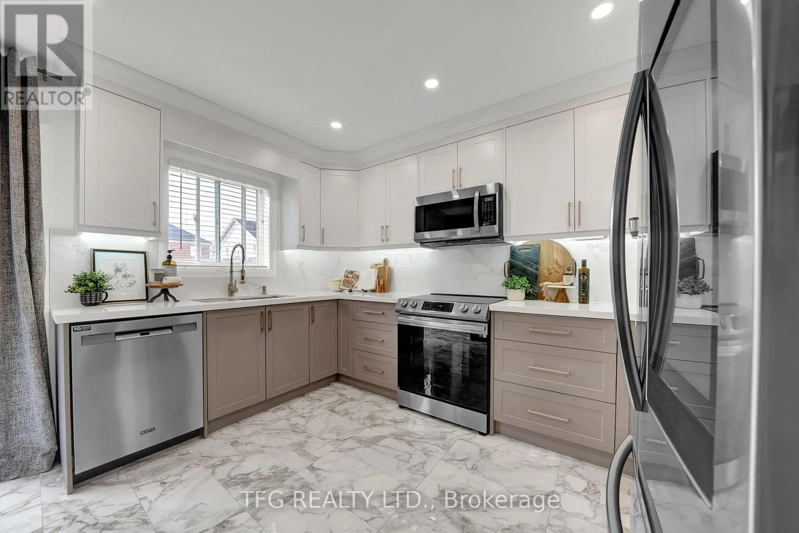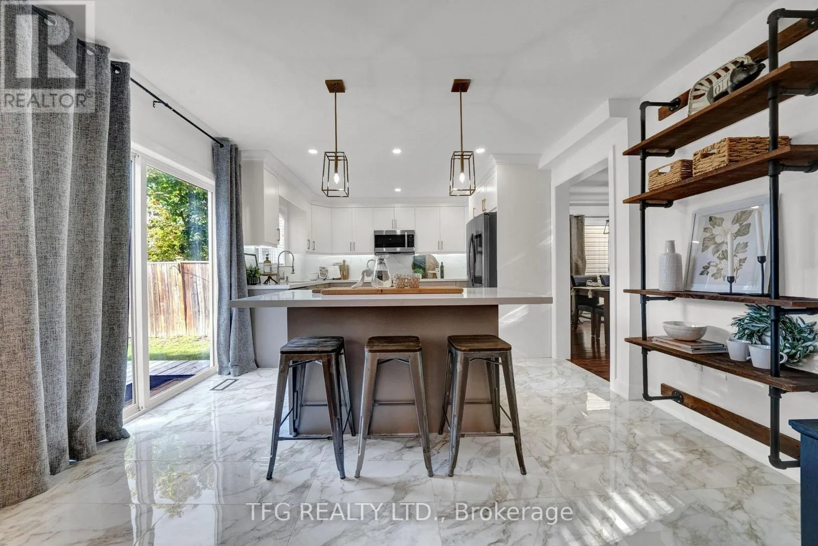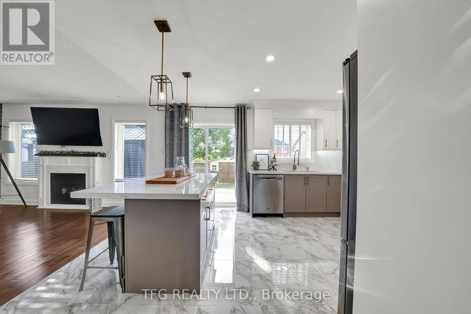Cross Streets: Taunton & Grandview. ** Directions: N on Grandview to Park Ridge Dr to Bridgeport St, south on Bridgeport St. Welcome to this exceptional fully detached residence, offering nearly 2,000 sq. ft. of elegant living space above grade plus a professionally finished basement. With 4+1 spacious bedrooms and 3 beautifully appointed bathrooms, this home blends timeless sophistication with modern comfort. Step into the gourmet chefs kitchen, showcasing sleek quartz countertops, custom cabinetry, premium stainless steel appliances, and a sun-filled eat-in breakfast area. The layout flows effortlessly into the open-to-above family room, where soaring ceilings, expansive windows, and a cozy gas fireplace create the perfect setting for gatherings. Every detail has been carefully curated from the hardwood floors to the pot lights and freshly painted interiors. Bathrooms have been fully updated with spa-inspired finishes, ensuring a true retreat at home. The lower level adds even more space with a finished basement, with an additional bedroom, home office, gym, or media lounge. Perfectly situated in a prestigious, family-friendly community, this home is surrounded by top-ranked schools, lush parks, shopping, dining, and easy access to major amenities and 407.A rare opportunity to own a move-in ready home that truly checks every box. Don't miss it! (id:27476)