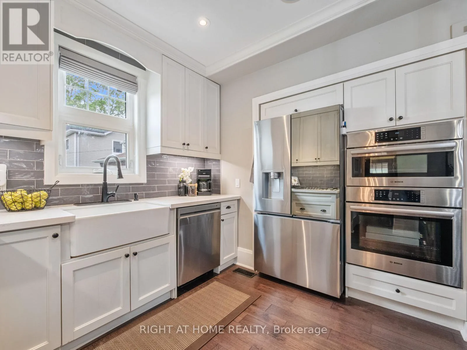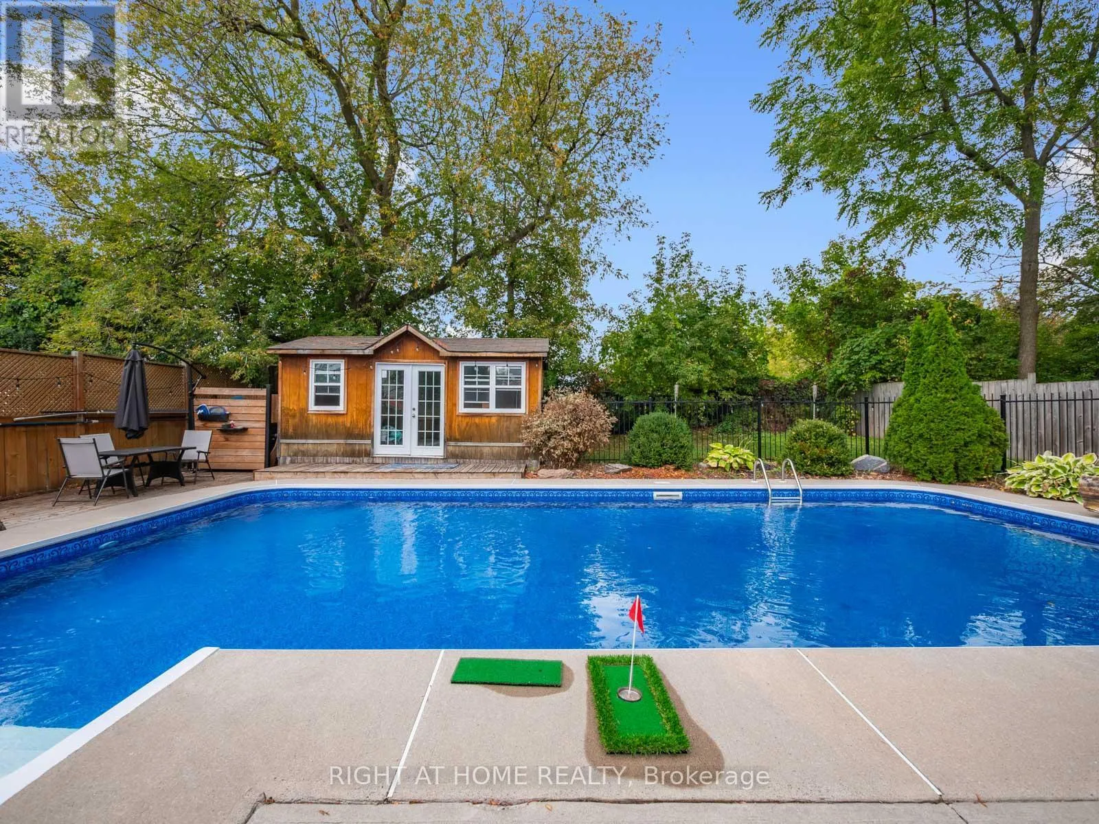 Ritson Rd N & William St E Welcome home to this stunning detached 3+1 bedroom, 3 bath home in the highly sought-after O'Neill neighbourhood - a perfect blend of charm, comfort, and lifestyle. Step outside and discover your very own backyard paradise: a resort-like retreat with a sparkling pool (fenced for safety), a cabana with hydro, spacious decking, and a cozy fire pitperfect for making the most of warm summer nights. With a 216 ft deep lot (59 ft at the rear!), you'll have all the space you could ever want for entertaining or relaxing. Inside, the main floor impresses with updated hardwood floors, a luxurious custom kitchen with quartz counters, high-end appliances, and a large walk-in pantry. The open dining area flows seamlessly to the patio, while the living room offers a warm and inviting vibe with its beautiful wood-burning fireplace and custom built-ins. Upstairs, you'll find 2 bedrooms, a bright office, and a stylish 3-pc bath. The top floor is a true retreat, featuring a spacious primary bedroom with a walk-in closet and a private 4-pc ensuite. The finished basement includes an additional bedroom, 3-pc bath, a wet bar, and a separate entrance, ideal for guests, in-laws, or potential rental income. All this in a prime location close to Costco, shopping, transit, community centres, restaurants, and top-rated schools. Bonus: drawings for a new two-car tandem garage are available! This is more than just a home. It's a lifestyle upgrade waiting for you. (id:27476)