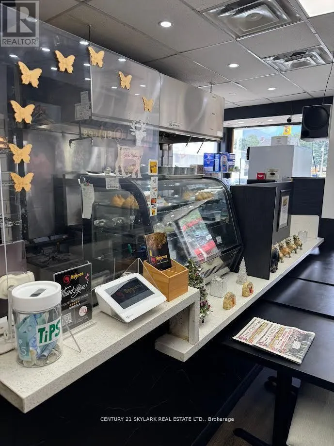 Simcoe St N/Bond St W Remarkable Restaurant Business, currently operated as 9 Spices Indian Roti cuisine FOR SALE. 16 seats, good lease, low rent. Good review, low overhead running business. Business can be converted to a different business on landlord's approval. Base rent of only $1969.96/Month. One parking spot available for tenant. Lease till July 2028 Plus renewal option for 5 years. (id:27476)
