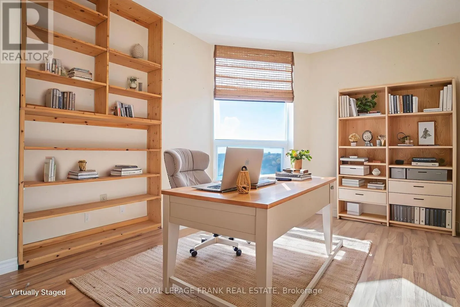 Wilson and Rossland Welcome to one of Oshawa's premier luxury condos! This exceptional residence offers over 1,700 sq. ft. of thoughtfully designed living space with breathtaking views of the city and Lake Ontario from your private balcony. The expansive windows fill the home with natural light, creating a warm and inviting atmosphere-perfect for entertaining guests or relaxing with family. Enjoy three walkouts to the balcony, ideal for taking in the scenery. Recent upgrades include new exterior windows and refreshed hallways throughout the building. Residents enjoy an array of first-class amenities: a workshop, library, sauna, indoor swimming pool, party room, exercise/weight room, craft room, car wash, and BBQ patio. Includes underground parking and locker. Conveniently located close to parks, transit, and shopping. Some Photos Are Virtually Staged. (id:27476)