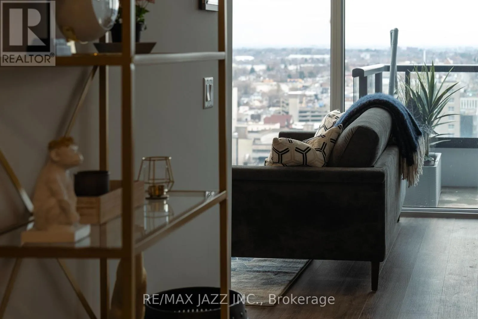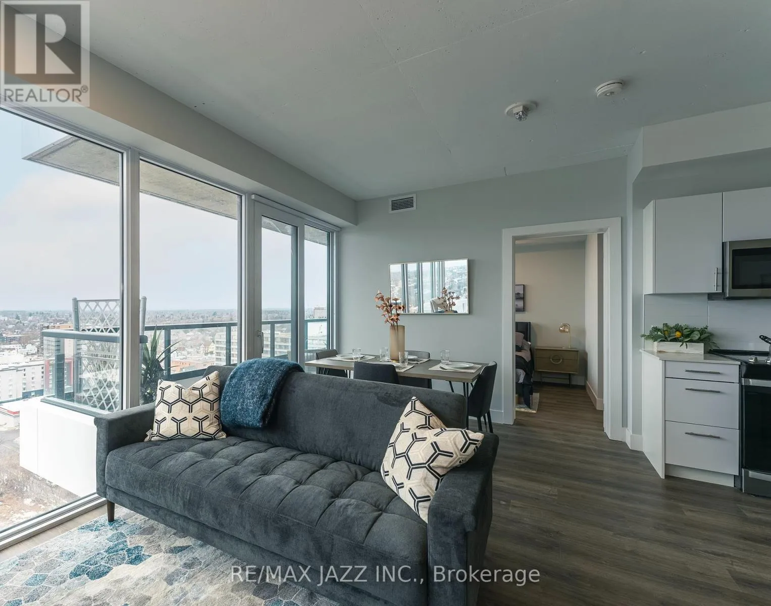 Cross Streets: Bond and Mary. ** Directions: Bond Street to Mary. Meet the New Bond. 80 Bond is a new luxury accessible building in downtown Oshawa. Unit 1612 is an incredibly finished Two Bedroom plus Den/Office space with Western Exposure and W/O to Balcony, Open Concept, Great Space. Your suite will have it all: smart floor-to-ceiling windows, individually controlled HVAC system, hi-speed internet ($50 per month), stainless steel appliances (including dishwasher and microwave), in-suite washer and dryer, 9 feet ceiling, 24-hour security, underground parking ($150 per month), lockers ($60 per month), and onsite Property Management Team. Amenities include Gym with showers, Party Room, Terrace, Dog Wash and Business center. Pet friendly. 80 Bond features a spacious double height lobby enclosed in glass offering that creates an impressive entrance with security desk and ample seating, as well as a lobby lounge separated by a double-sided fireplace that is ideal for informal gatherings and a great place to hang out with your favourite book. Do it all in 80 Bonds 3,100 sq.ft. ground floor Gym featuring state-of-the-art facilities and equipment, an expansive mirror wall, fantastic street view, televisions to keep you entertained and more. Events big or small fit in nicely in this beautiful double height space featuring a double-sided fireplace, kitchen/bar area and plenty of room for all your friends and family. The Lounge is also a great place to enjoy a little quiet time while cozying up to the fireplace. Just off the Lounge & Party Room, laze in the sun, take in the view or fire up the bbq and cook up a meal on the 5th floor Terrace, a great place to entertain or relax solo or with friends; plenty of room, lots of seating options and 2 bbqs for convenience. And if Fido needs a bath! Conveniently located on the ground floor near the buildings secondary entrance, you can quickly clean up the pup before those muddy paws get anywhere near your front door. (Photos may not be of exact unit) (id:27476)