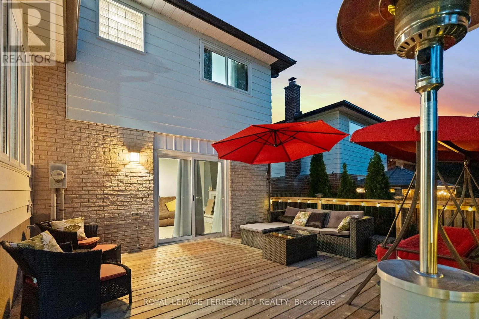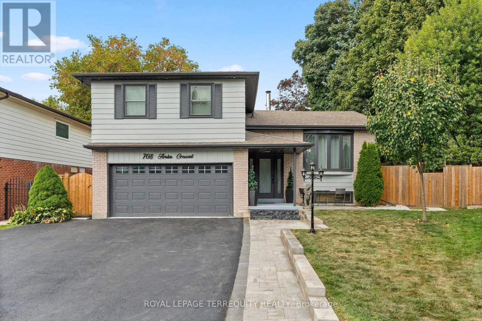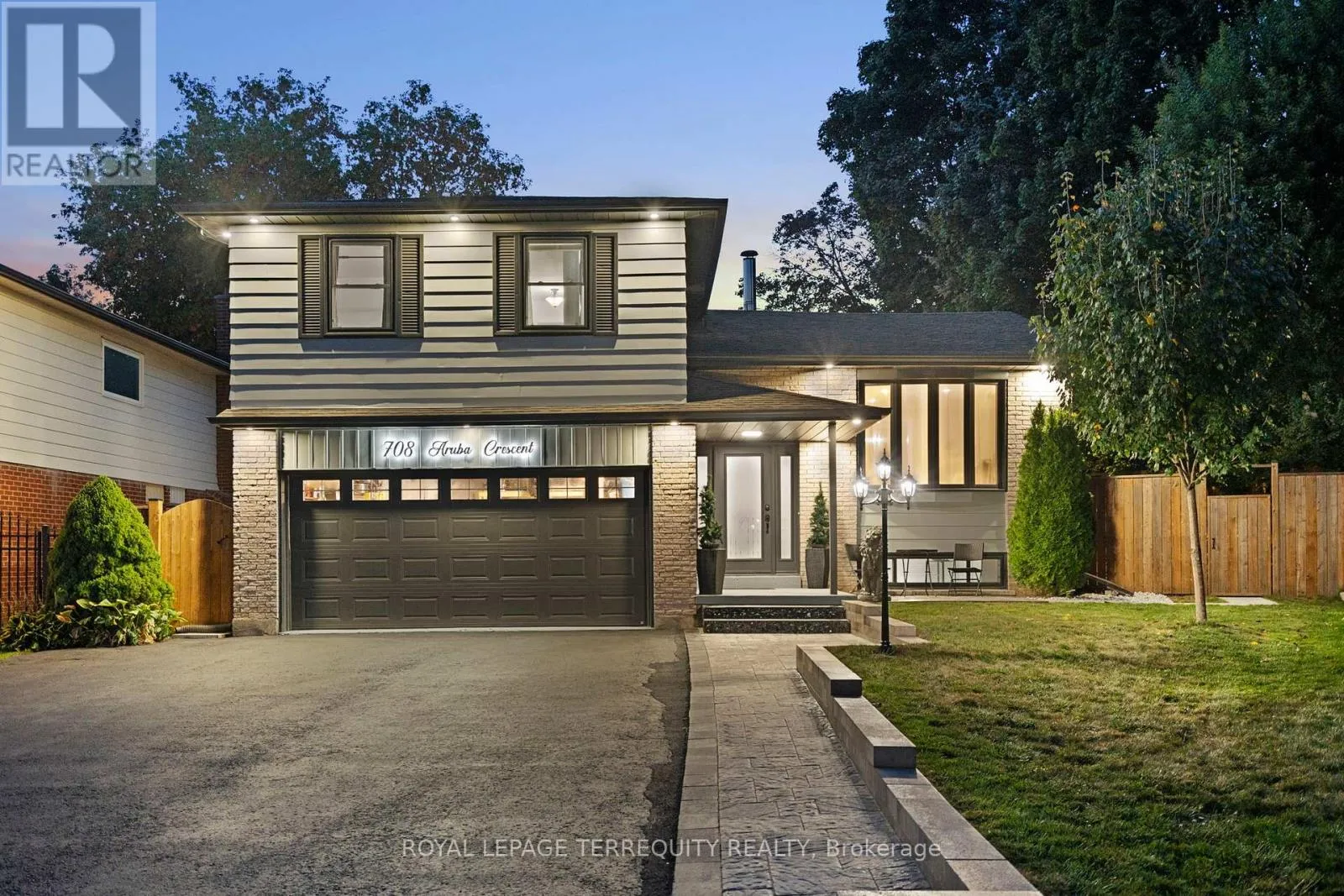 Cross Streets: Rossland Rd W & Thorton Rd N. ** Directions: East on Rossland Rd W, North on Waverly St. N, West on Aruba Cres. Welcome to 708 Aruba Crescent, nestled in Oshawas highly sought-after Northglen community! This beautifully updated 3+1 bedroom, 3 bathroom home is perfectly located just minutes to schools, parks, transit, and the Oshawa Centre. Step inside to find a bright and modern interior with engineered hardwood and vinyl flooring throughout no carpet! The home boasts updated light fixtures, renovated bathrooms, and an upgraded staircase that add a stylish touch. The open-concept kitchen features stainless steel appliances, quartz counters on the island, a breakfast bar, and an eat-in area with walkouts to your backyard oasis. Enjoy a large pie-shaped lot with mature trees, modern interlocking, a two-level deck, and no sidewalk perfect for entertaining or family fun. The driveway offers parking for up to 8 vehicles plus garage access. Upstairs, the primary bedroom retreat includes a feature accent wall, walk-in closet, and a spa-like 4-piece ensuite. The fully finished basement extends your living space with a rec room, wet bar, additional bedroom, and plenty of storage. With over 2,200 sq. ft. of total living space, 2 walkouts to the backyard, exterior pot lights, and numerous recent upgrades, this home truly has it all. Dont miss your chance to own this perfect family home in one of Oshawas most desirable neighborhoods! (id:27476)