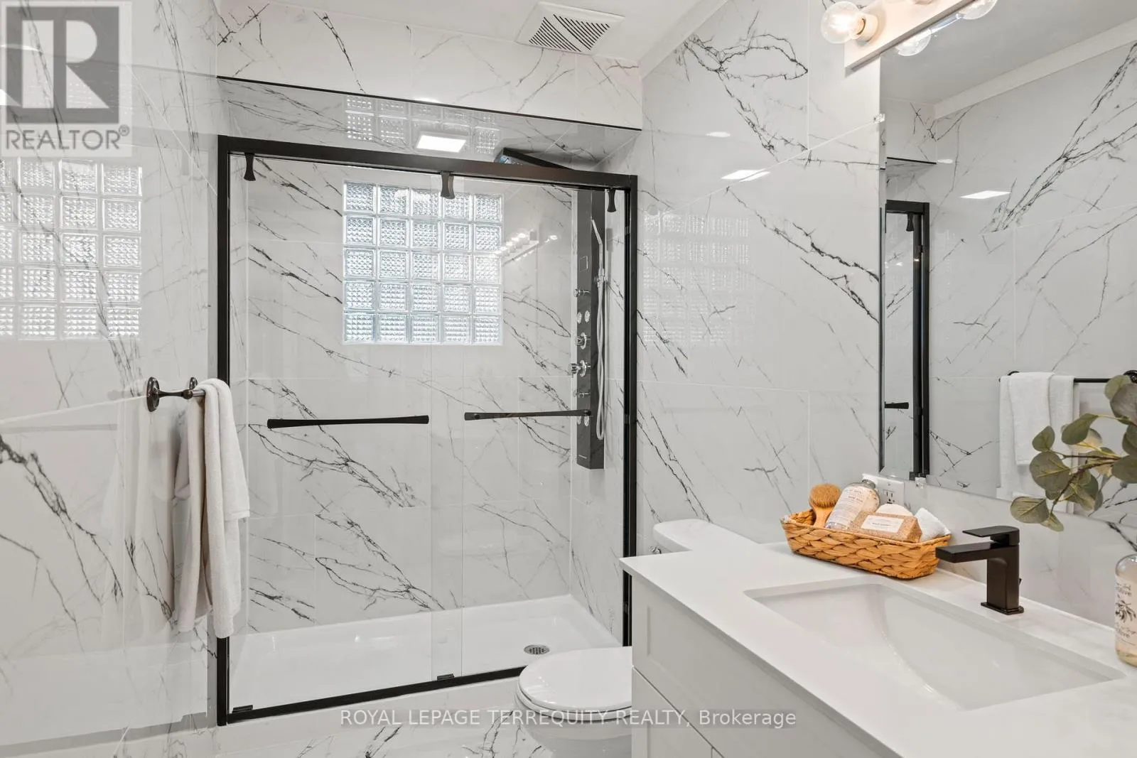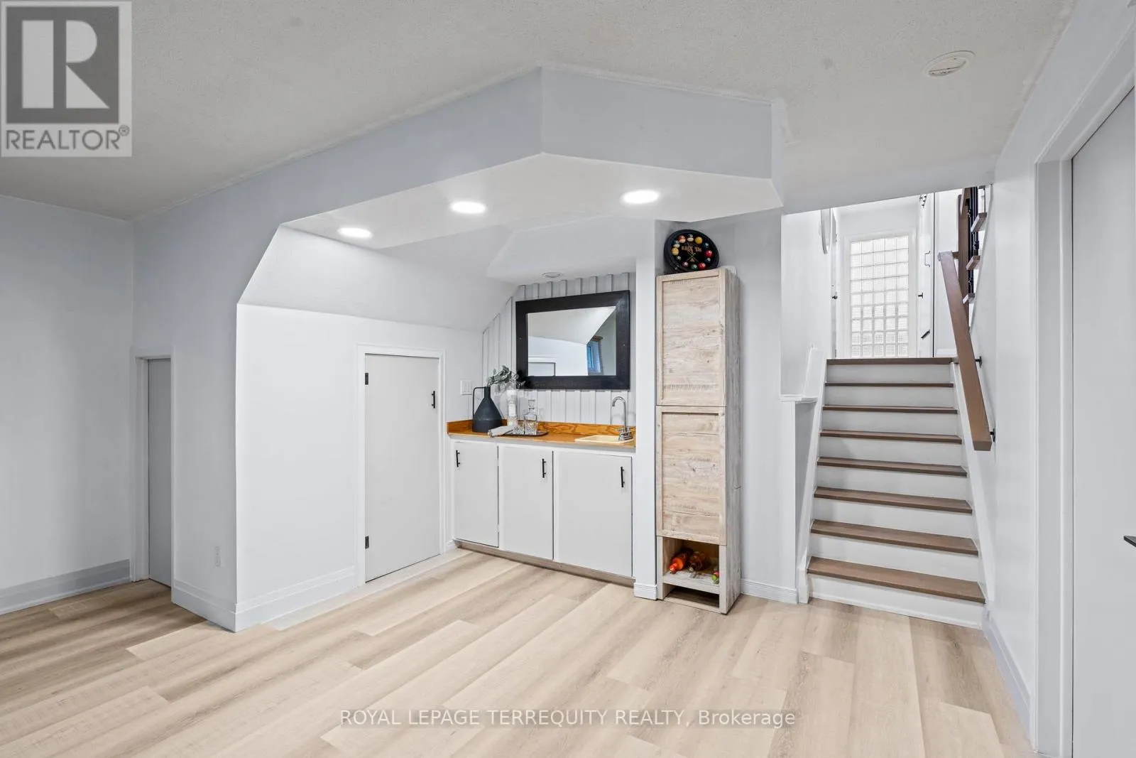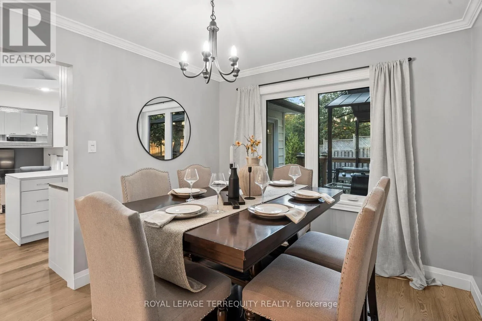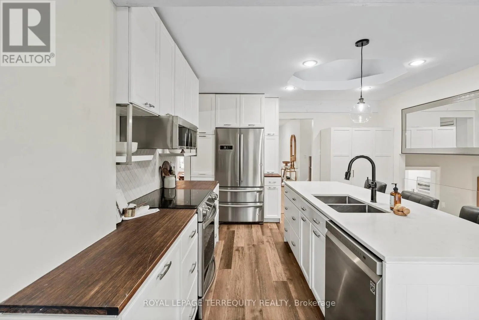 Cross Streets: Rossland Rd W & Thorton Rd N. ** Directions: East on Rossland Rd W, North on Waverly St. N, West on Aruba Cres. Welcome to 708 Aruba Crescent, nestled in Oshawas highly sought-after Northglen community! This beautifully updated 3+1 bedroom, 3 bathroom home is perfectly located just minutes to schools, parks, transit, and the Oshawa Centre. Step inside to find a bright and modern interior with engineered hardwood and vinyl flooring throughout no carpet! The home boasts updated light fixtures, renovated bathrooms, and an upgraded staircase that add a stylish touch. The open-concept kitchen features stainless steel appliances, quartz counters on the island, a breakfast bar, and an eat-in area with walkouts to your backyard oasis. Enjoy a large pie-shaped lot with mature trees, modern interlocking, a two-level deck, and no sidewalk perfect for entertaining or family fun. The driveway offers parking for up to 8 vehicles plus garage access. Upstairs, the primary bedroom retreat includes a feature accent wall, walk-in closet, and a spa-like 4-piece ensuite. The fully finished basement extends your living space with a rec room, wet bar, additional bedroom, and plenty of storage. With over 2,200 sq. ft. of total living space, 2 walkouts to the backyard, exterior pot lights, and numerous recent upgrades, this home truly has it all. Dont miss your chance to own this perfect family home in one of Oshawas most desirable neighborhoods! (id:27476)