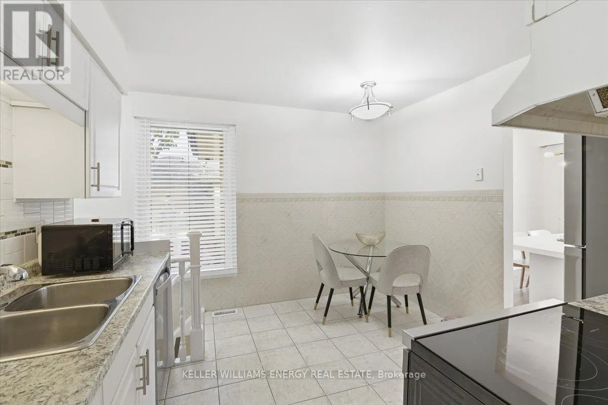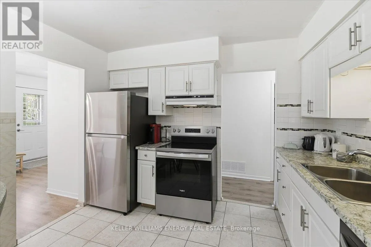 Wilson Rd & Rossland Rd Step into this bright and cheerful main floor bungalow, filled with natural light and central floor plan with separate dining room. Laminate flooring flows through the living, dining, and three bedrooms, fresh, modern, and gloriously easy to care for. The eat-in kitchen is ready for anything featuring stainless steel appliances, a sleek backsplash, and plenty of space to linger over a meal or host a spontaneous dinner. The four-piece bath is spotless and recently renovated. Private ensuite laundry is so convenient and means no sharing and no waiting. Garage with access to large driveway, on garage side for parking and storage. The side patio is ideal for BBQ, relaxing and entertaining. Utilities are set at 60%. The location seals the deal: right across from Rossland Square, where groceries, a drug store, and a cafe are continently located. Transit and schools are nearby too, making this home as practical as it is comfortable. (id:27476)